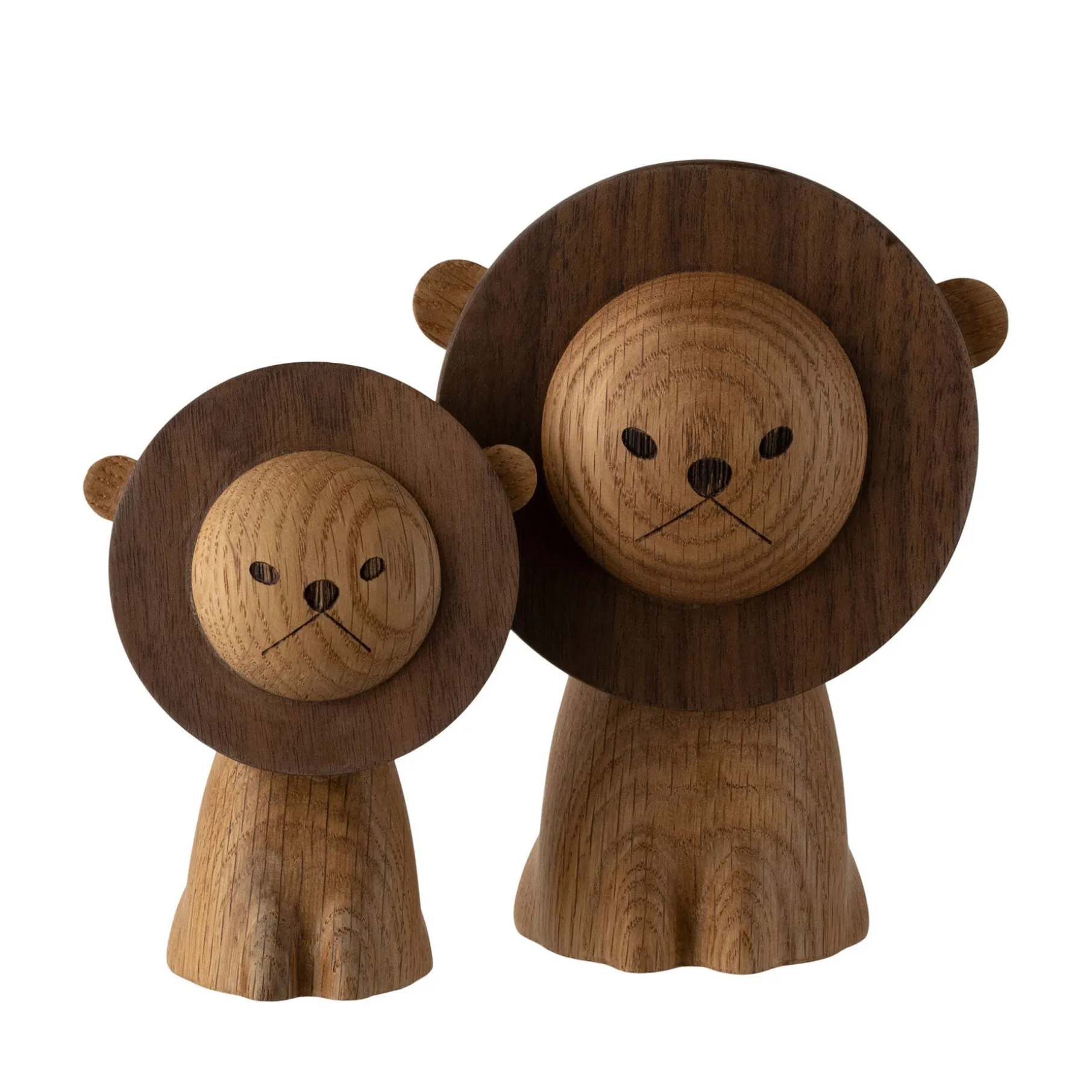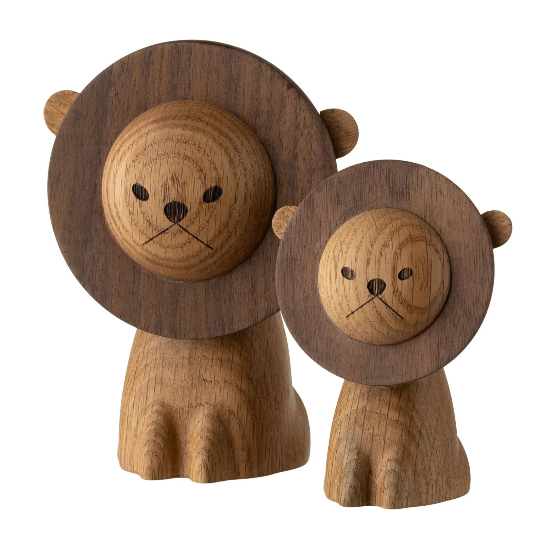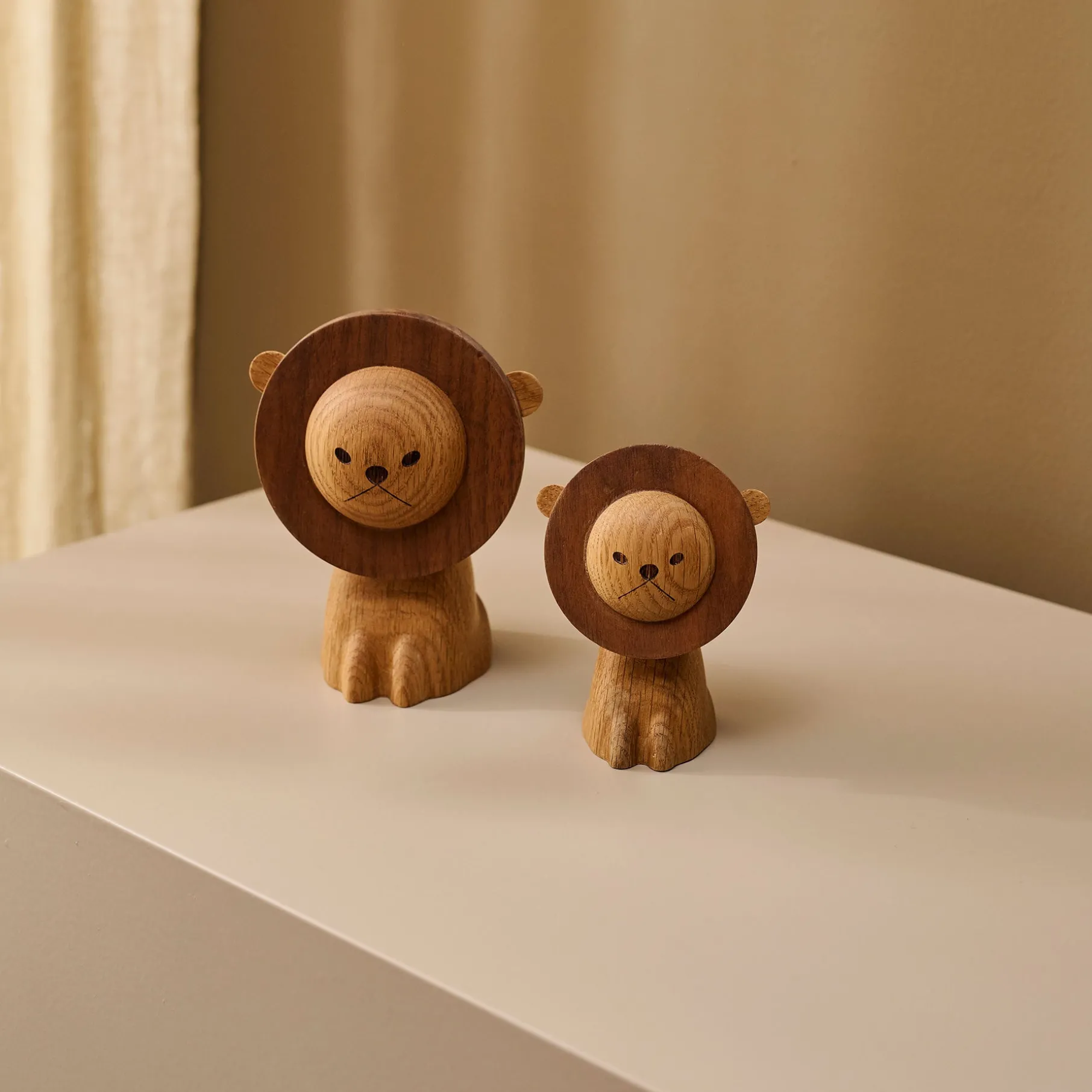 De fine organiske detaljer samt bløde former er et af kendetegnene for de nye trædyr. Lad løven stå alene på reolen eller i vindueskarmen, eller placer den på fødselsdagsbordet og med det samme er der skabt en stemning.