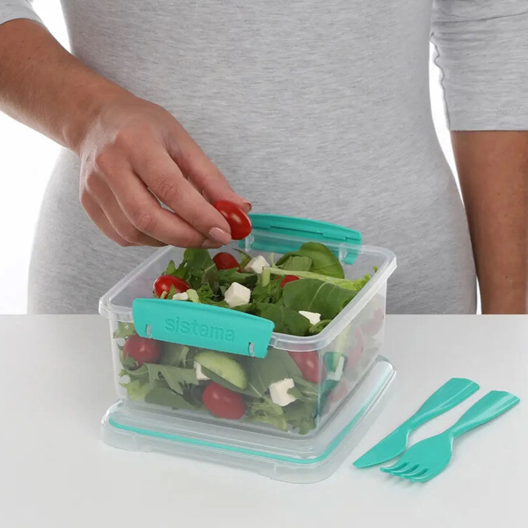 Beholderen består af flere rum, der gør det nemt at adskille forskellige fødevarer, og den leveres med en gaffel og en kniv, der er indbygget i låget. Lunch Plus To Go er lavet af holdbare og BPA-fri materialer, og den er nem at rengøre i opvaskemaskinen.