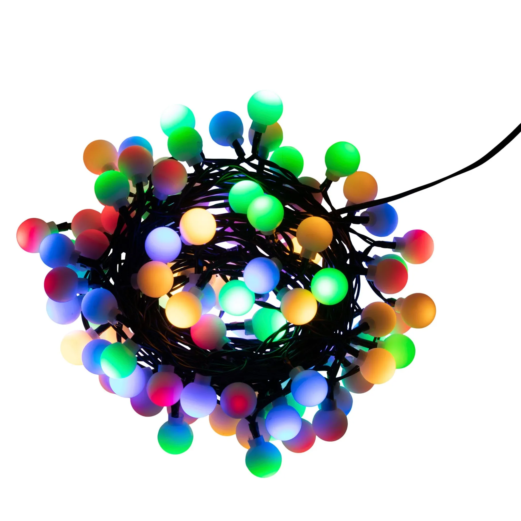 Multifarvet LED lyskæde. Den har 100 pærer i hård plast og 8 forskellige lysindstillinger. Med sin IP44 godkendelse, kan den bruges både indendørs og udendørs.