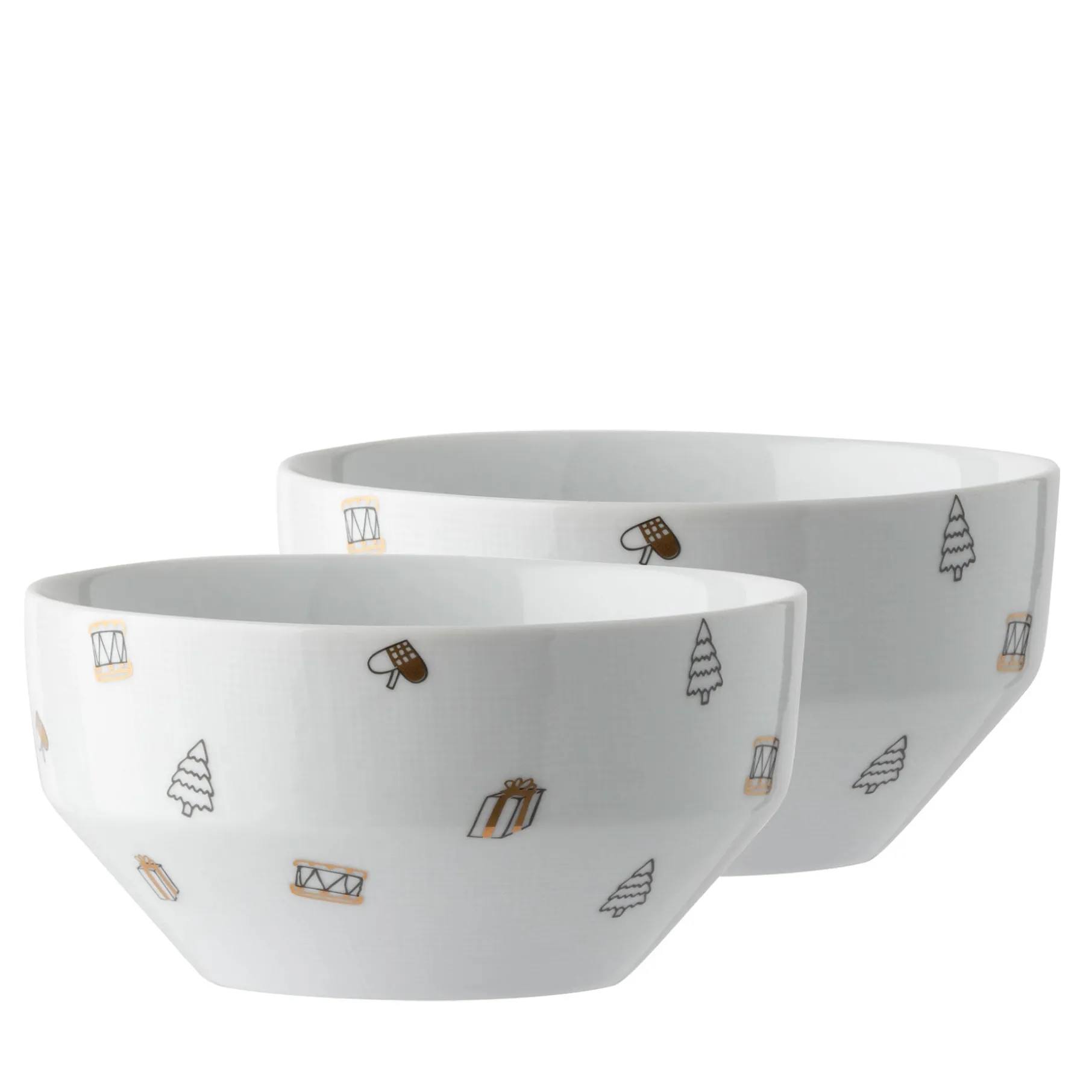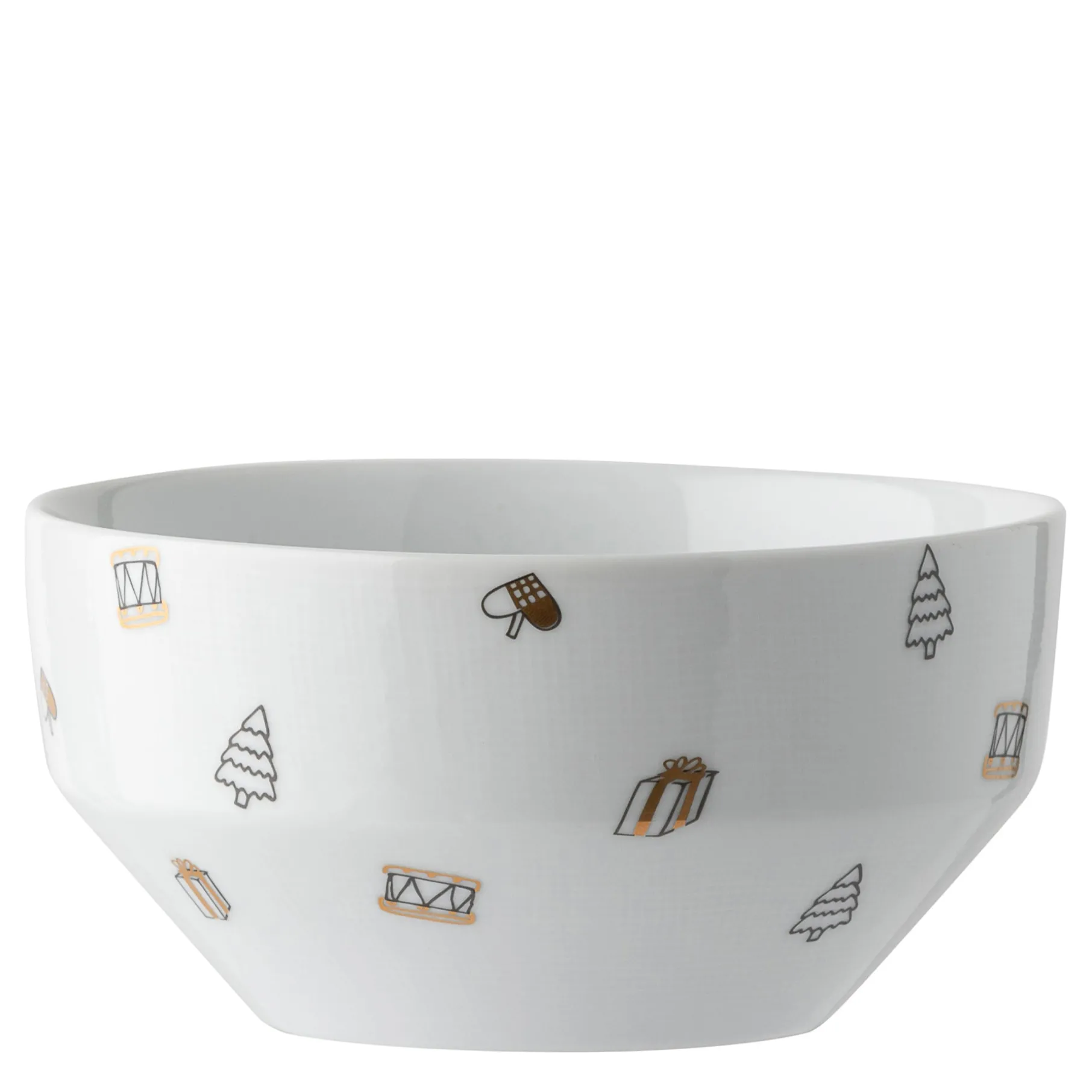Magic Christmas skål lavet i hvidt porcelæn. Skålen har et print med små gaver, juletræer, julehjerter mm.