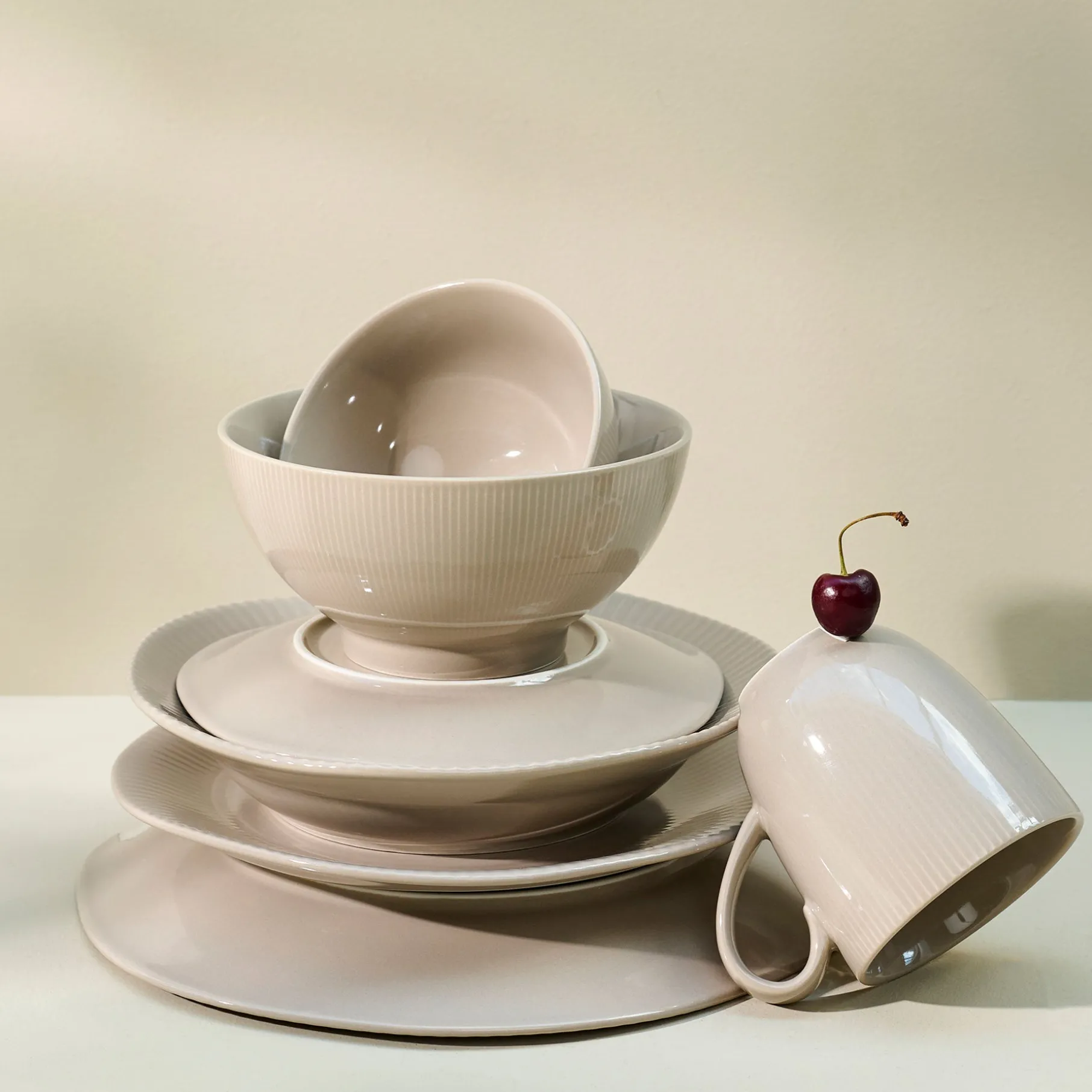 I serien er der tallerkener, skåle, krus og kopper. Fælles for hele Magic serien er at det er lavet i et stilrent riflet design.
