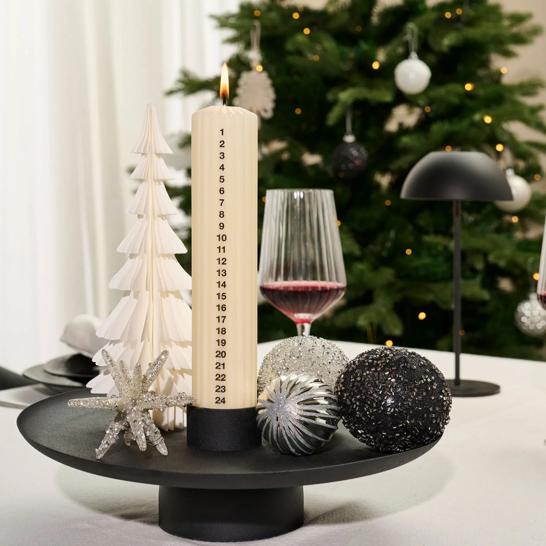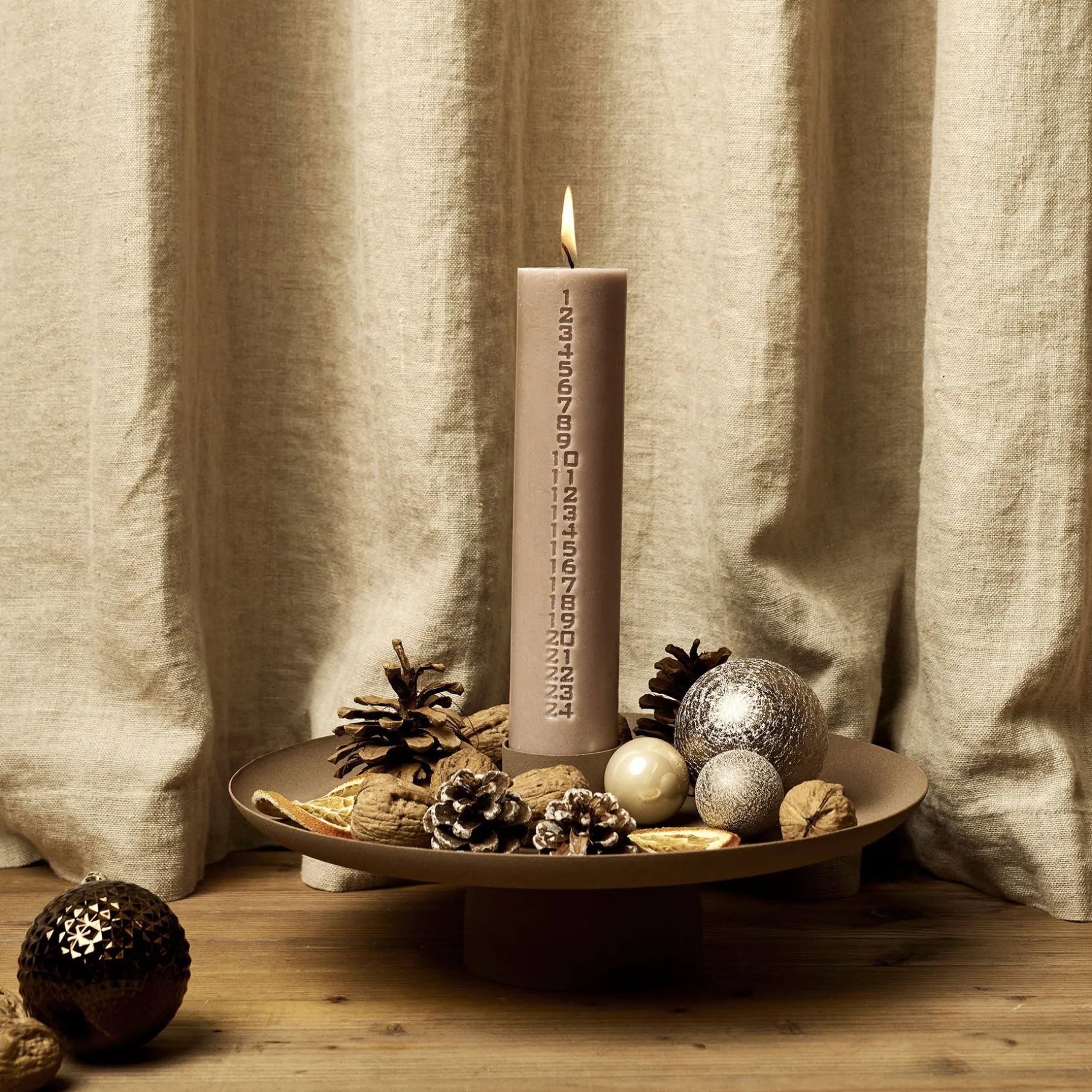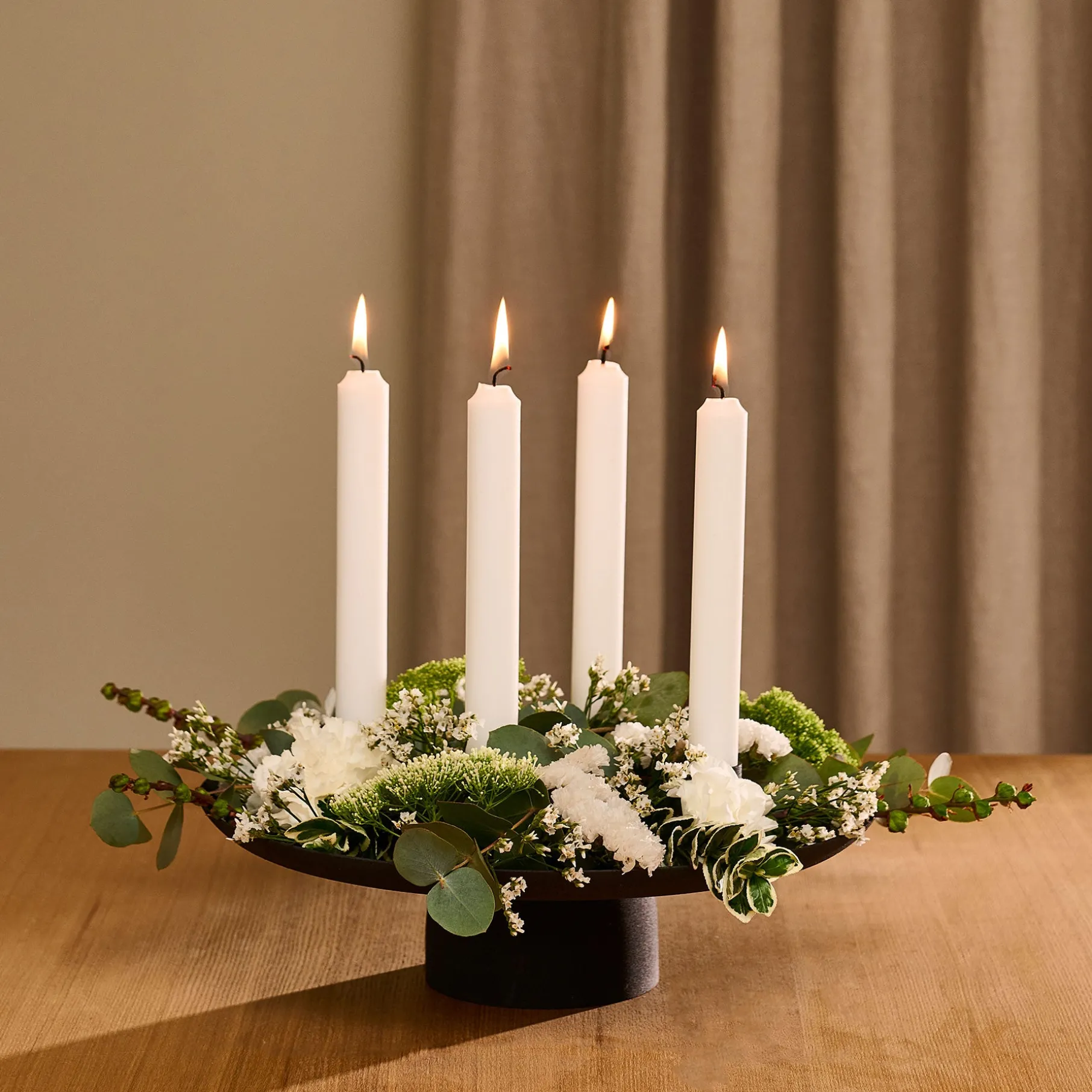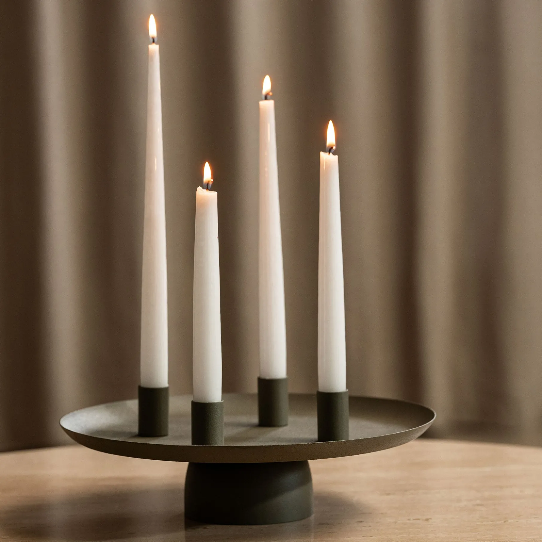 Denne lysestageopsats er lavet i et tyndt lag jern og sammen med den matte pulverlakering, har den en elegant og moderne fremtoning.