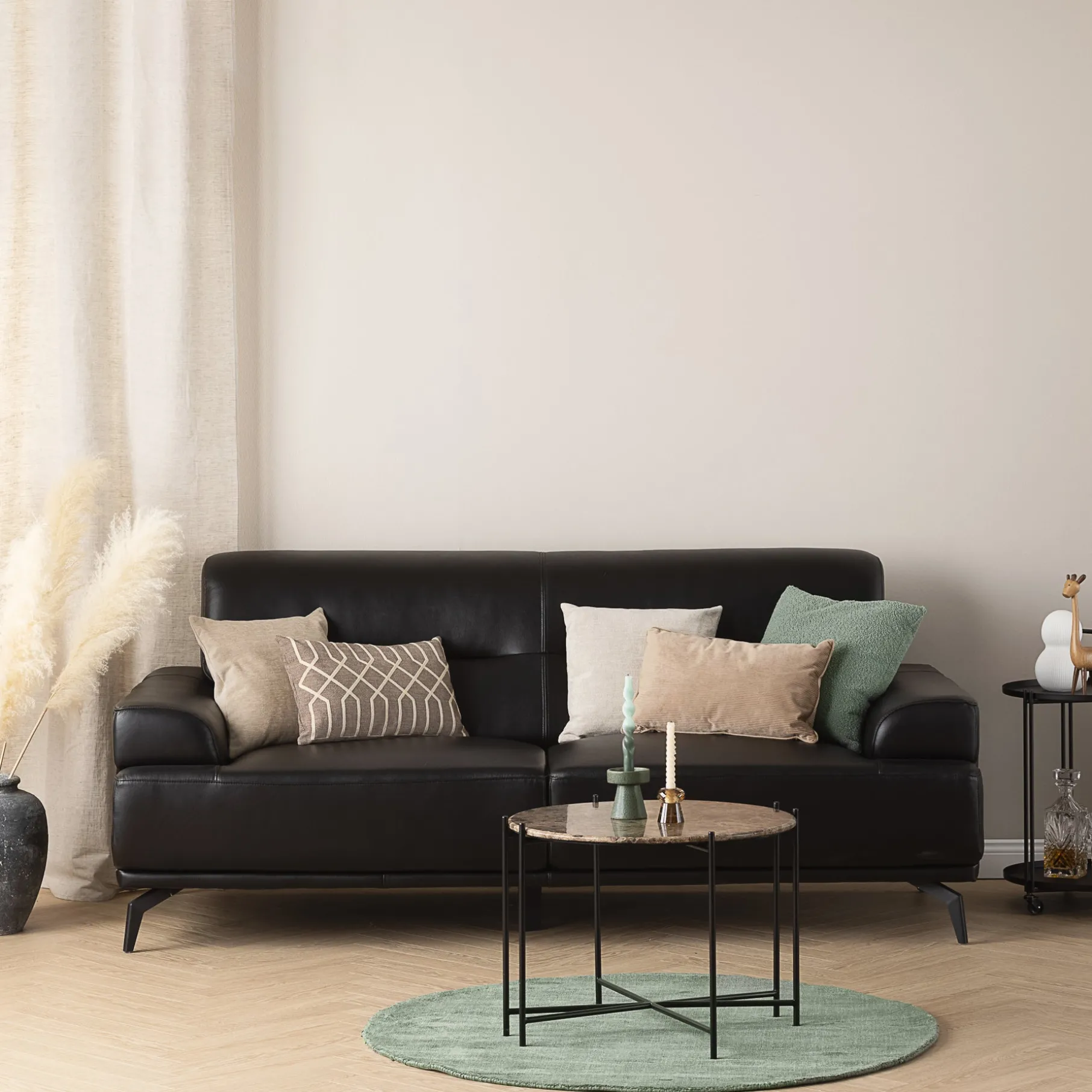 Fuldfør indretningen med pyntepuder i forskellige materialer. Bland fx velour med puder med struktur, eller bland en mønstret pude med puder i den samme nuance.