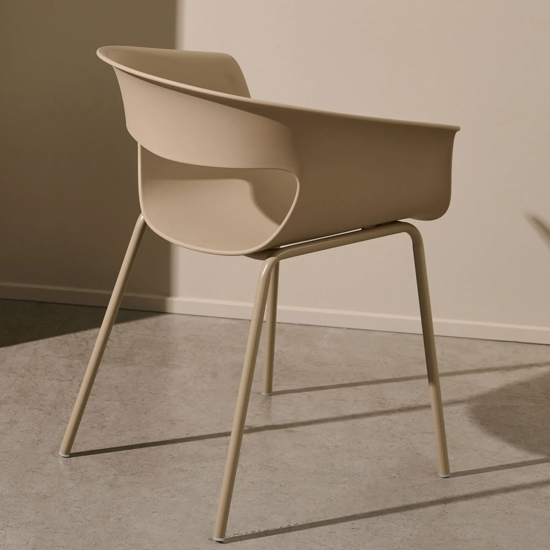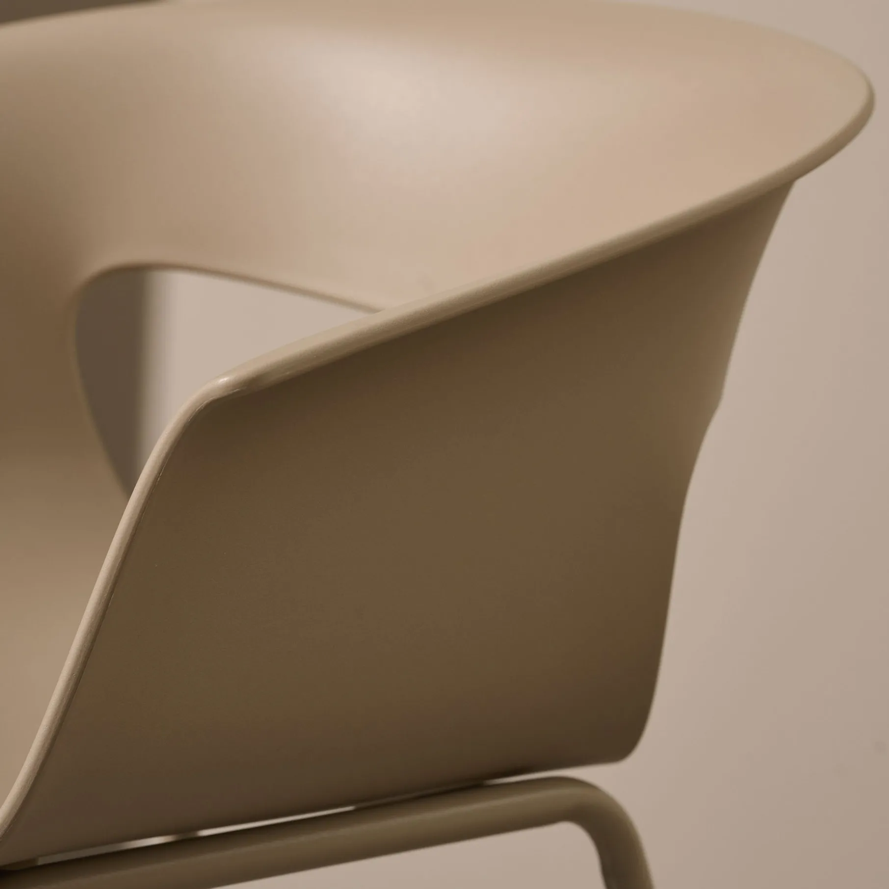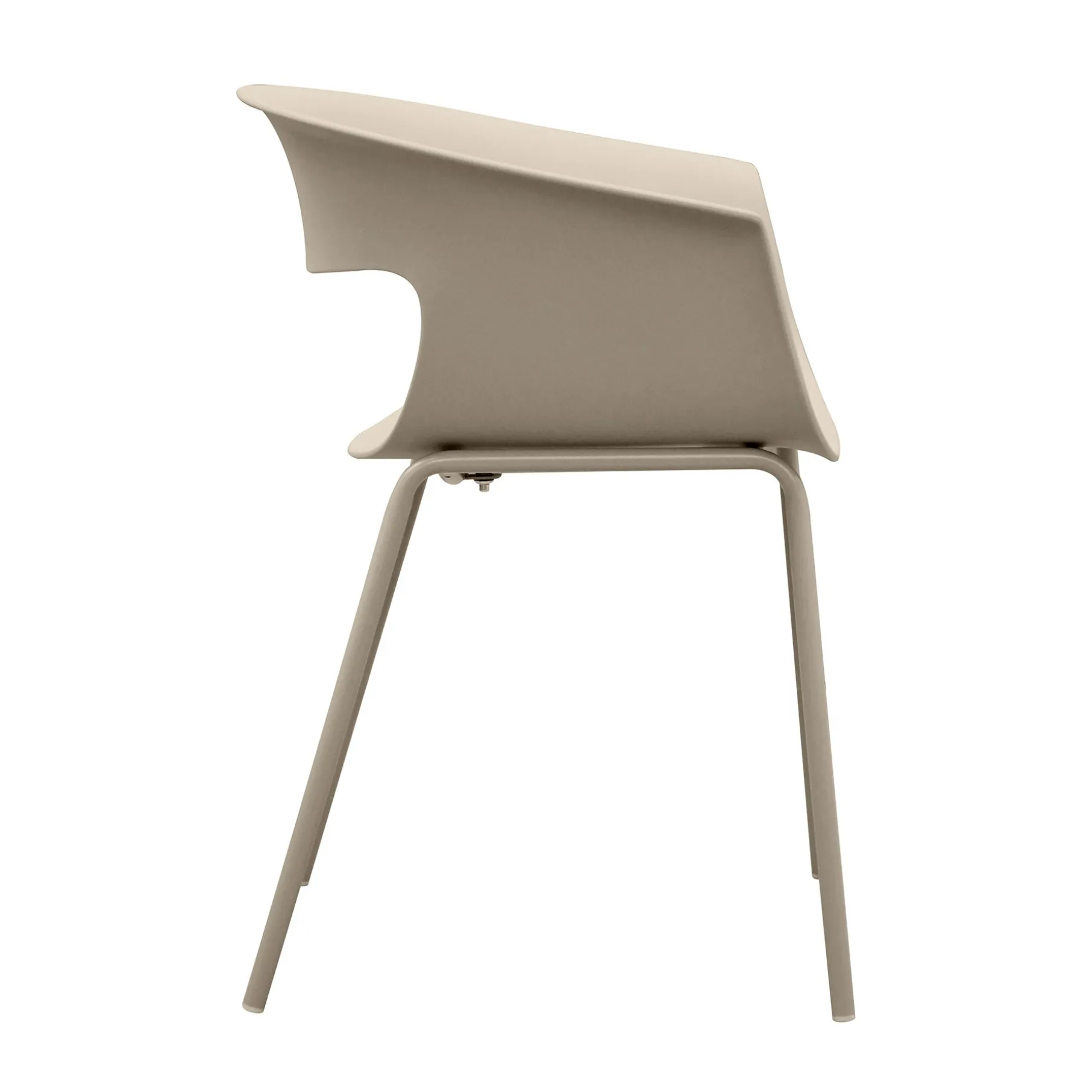 Spisebordsstol med et stilrent og enkelt design. Sædet er lavet i mat plast og benene er lavet i metal. Sæde og ben er lavet i samme tone i tone farve, hvilket giver stol og indretning et roligt udtryk. Messina stolen har en god siddekomfort og armlæn, så man kan hvile armene. Rengøringen kræver ikke andet end en opvredet fnugfri klud