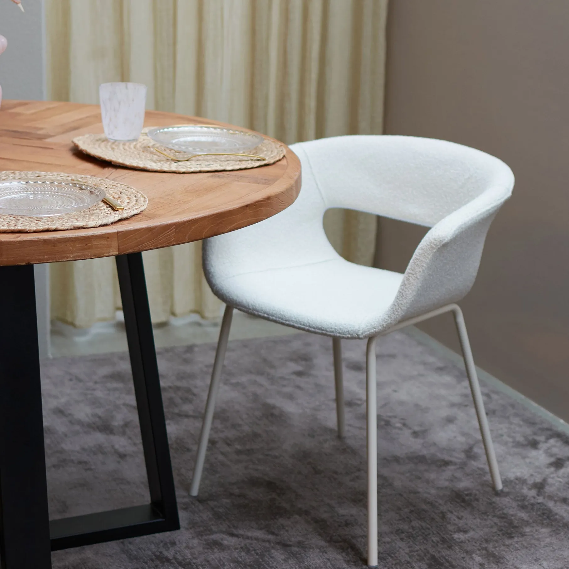 Spisebordsstol med et stilrent og enkelt design. Sædet er lavet i stof og benene er lavet i metal. Sæde og ben er lavet i samme tone i tone farve, hvilket giver stol og indretning et roligt udtryk. Messina stolen har en god siddekomfort og armlæn, så man kan hvile armene.