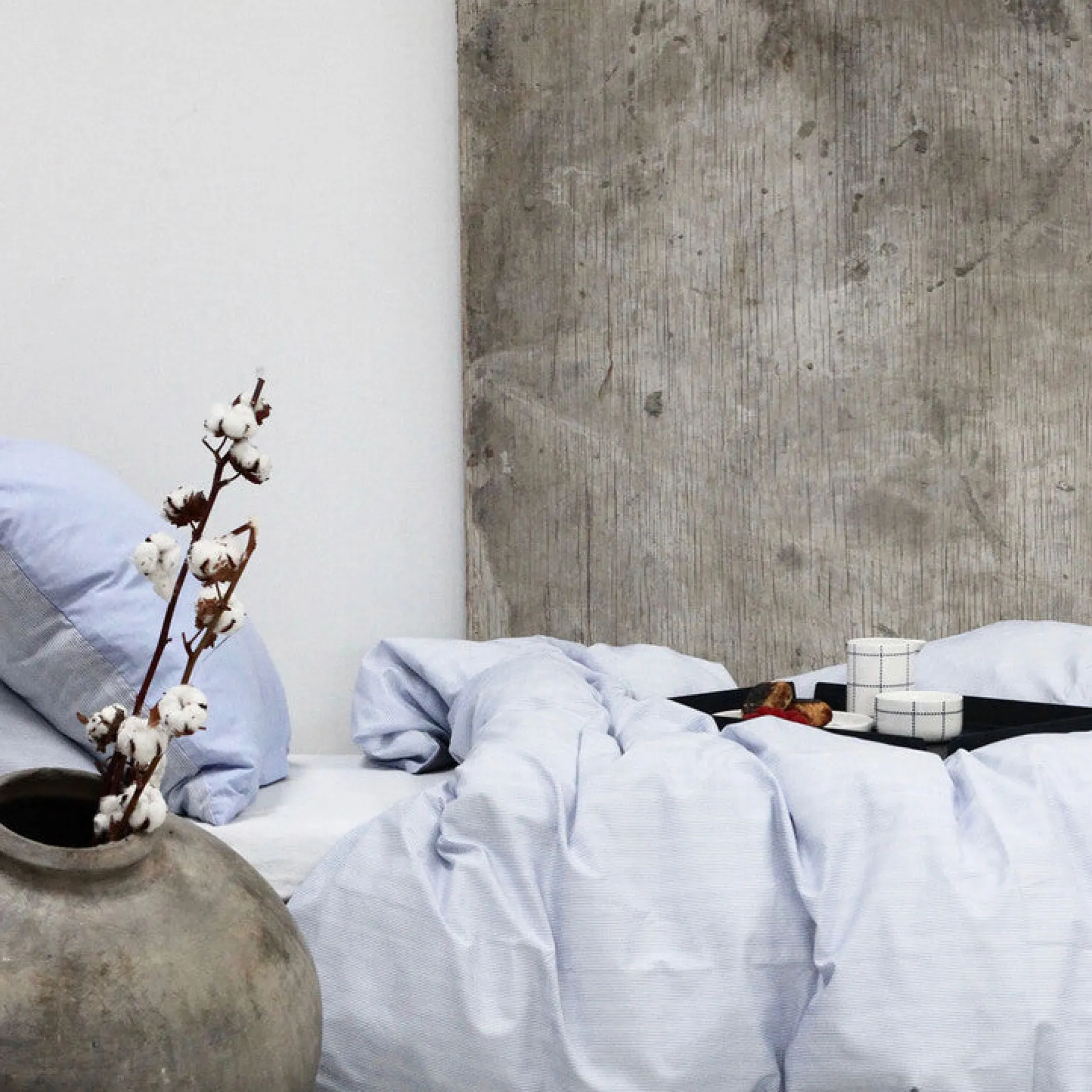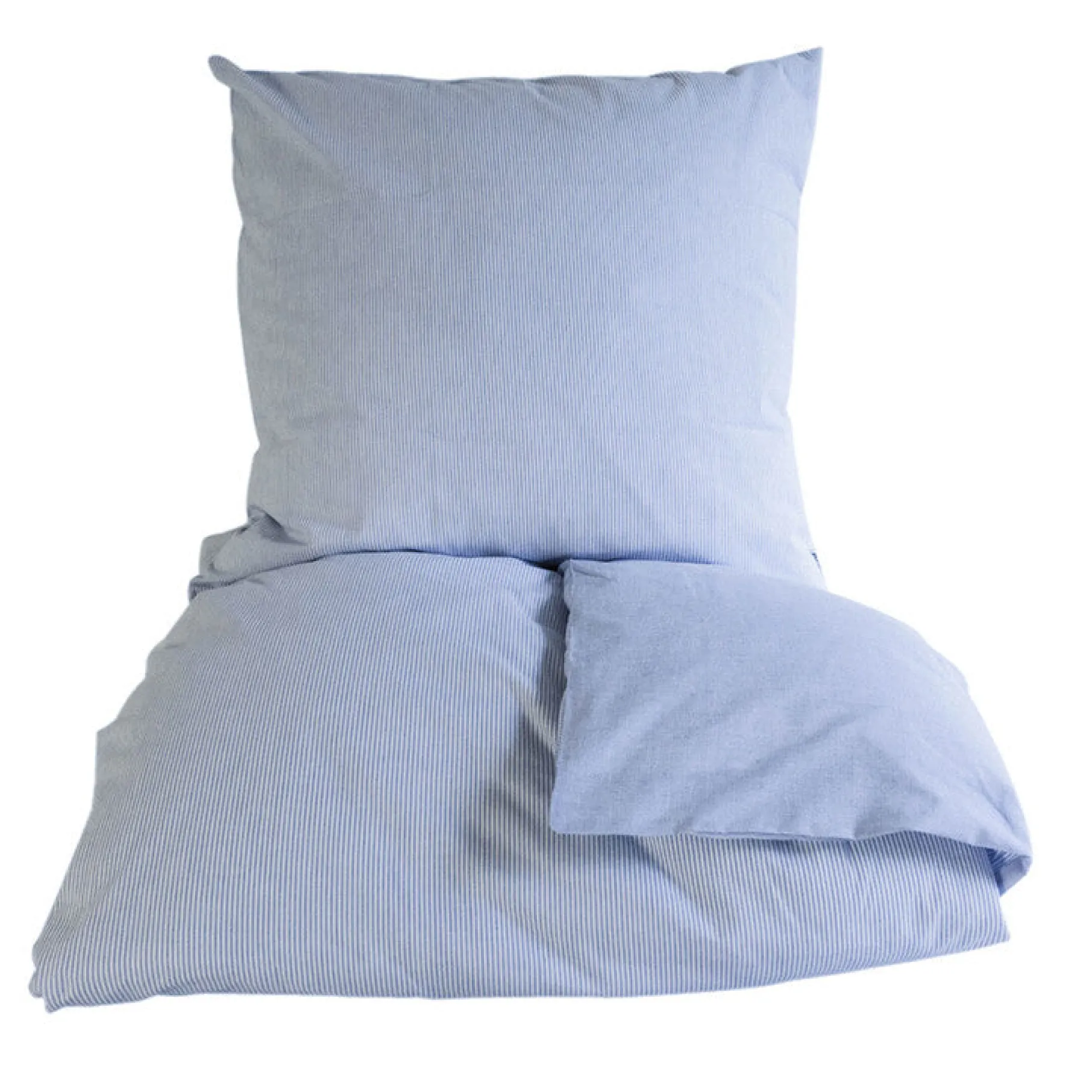 Lækkert sengetøj fra Omhu, der er fremstillet i en ekstra skøn renforcé lærredsvævning i 100% økologisk bomuld (lynlåse undtaget). Sengesættet er designet med den klassiske smalle strib på den ene side og meleret chambre på den anden, hvilket giver flere kombinationsmuligheder på en flot opredning.
