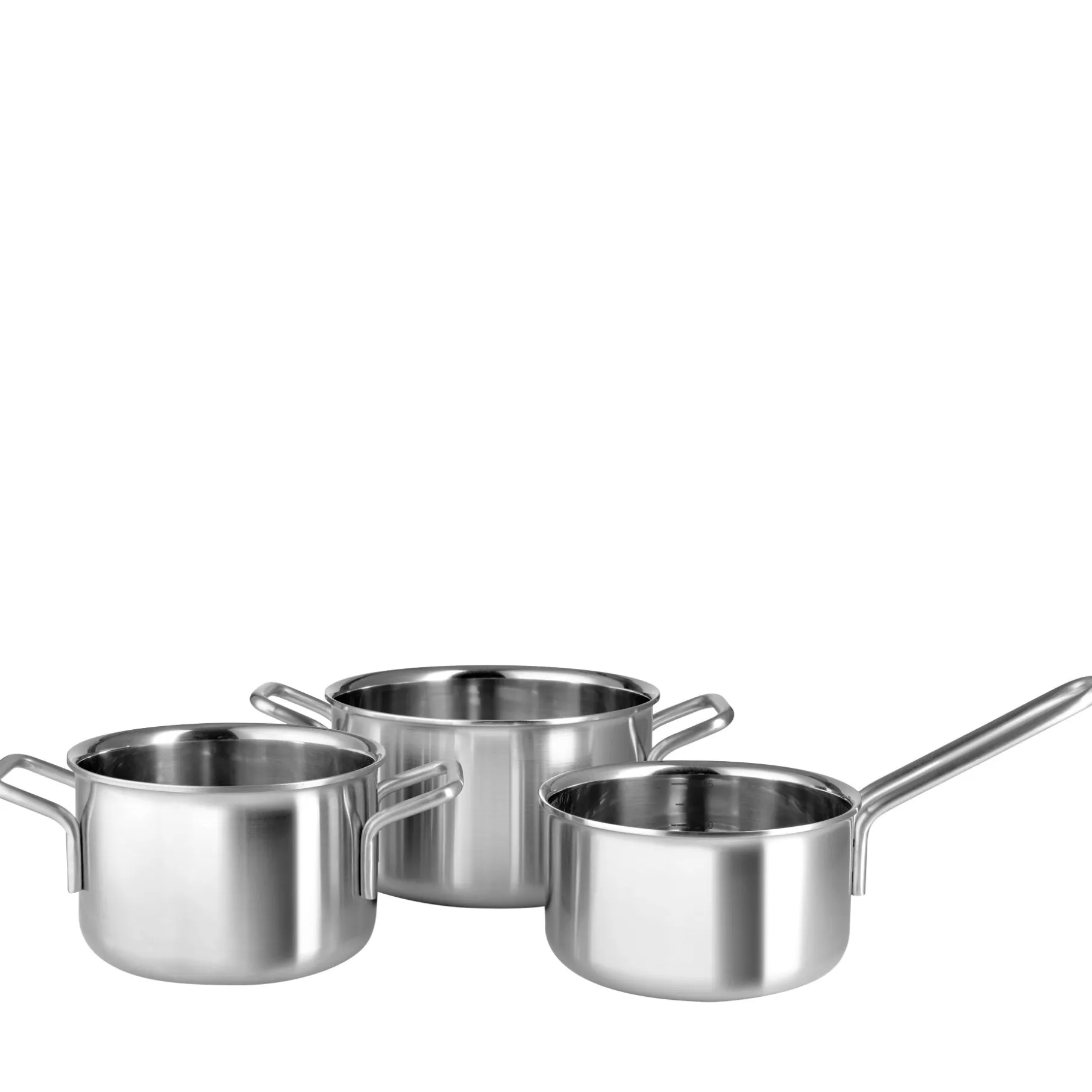 Eva Trio’s Multi-serie anvender den nyeste multi-lag teknologi for at forene rustfrit ståls holdbarhed med aluminiums fremragende varmeledning. Gryderne i dette sæt er konstrueret med tre lag: indersiden og ydersiden er lavet af rustfrit stål, mens kernen består af kraftig aluminium. Det rustfri stål giver en yderst slidstærk overflade, og aluminiums kernen sikrer optimal varmefordeling fra bunden og op langs siderne.