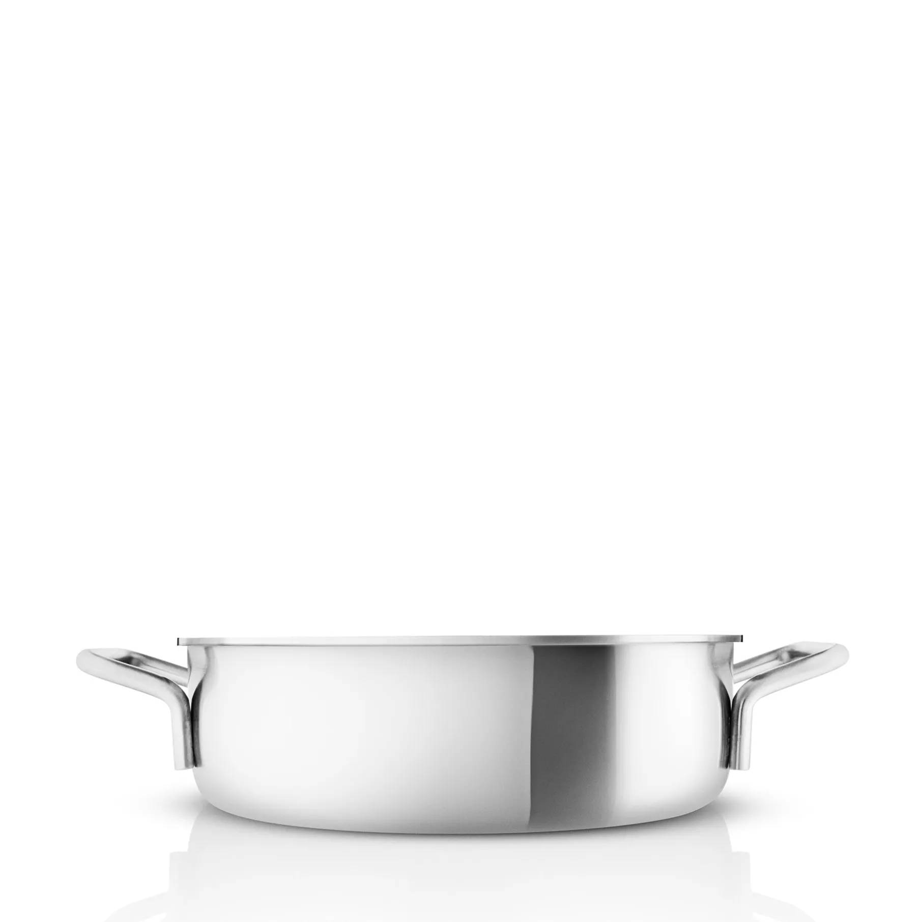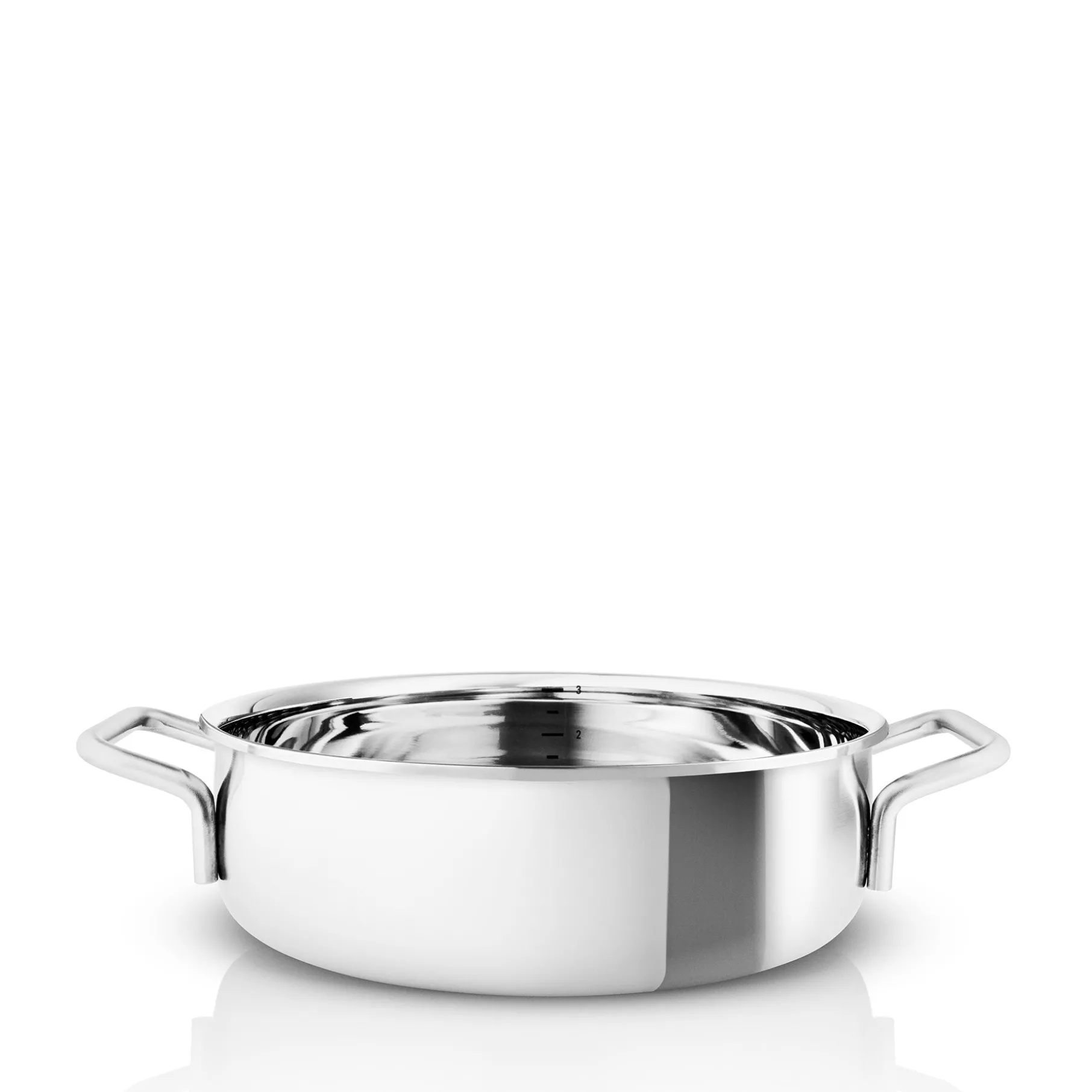 Eva Trio’s Multi-serie udnytter multi-layer teknologi til at forene rustfrit ståls slidstyrke med aluminiums effektive varmeledning. Tre-lags konstruktionen giver en ekstremt holdbar yderside og sikrer en jævn varmefordeling fra bunden op langs siderne. Med en rummelig stegeflade og høje kanter er sautergryden ideel til lynstegning og forhindrer, at ingredienser slipper ud. Overfladen er resistent over for madens syre, hvilket gør den nem at holde ren og skinnende.
