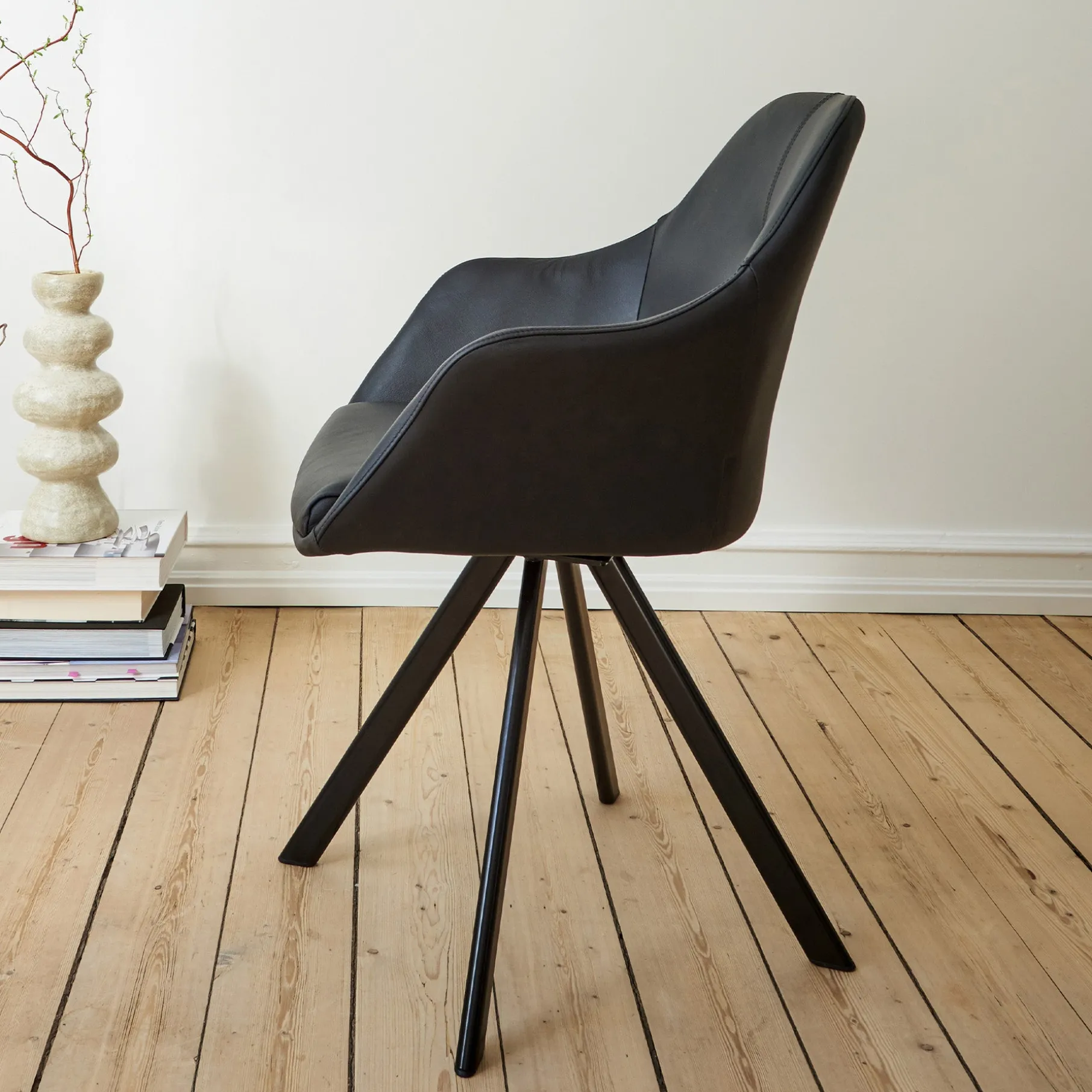 Sortlakerede metalben med drejefunktion giver både et moderne udtryk og en praktisk fleksibilitet, så du ubesværet kan dreje stolen uden at flytte den.