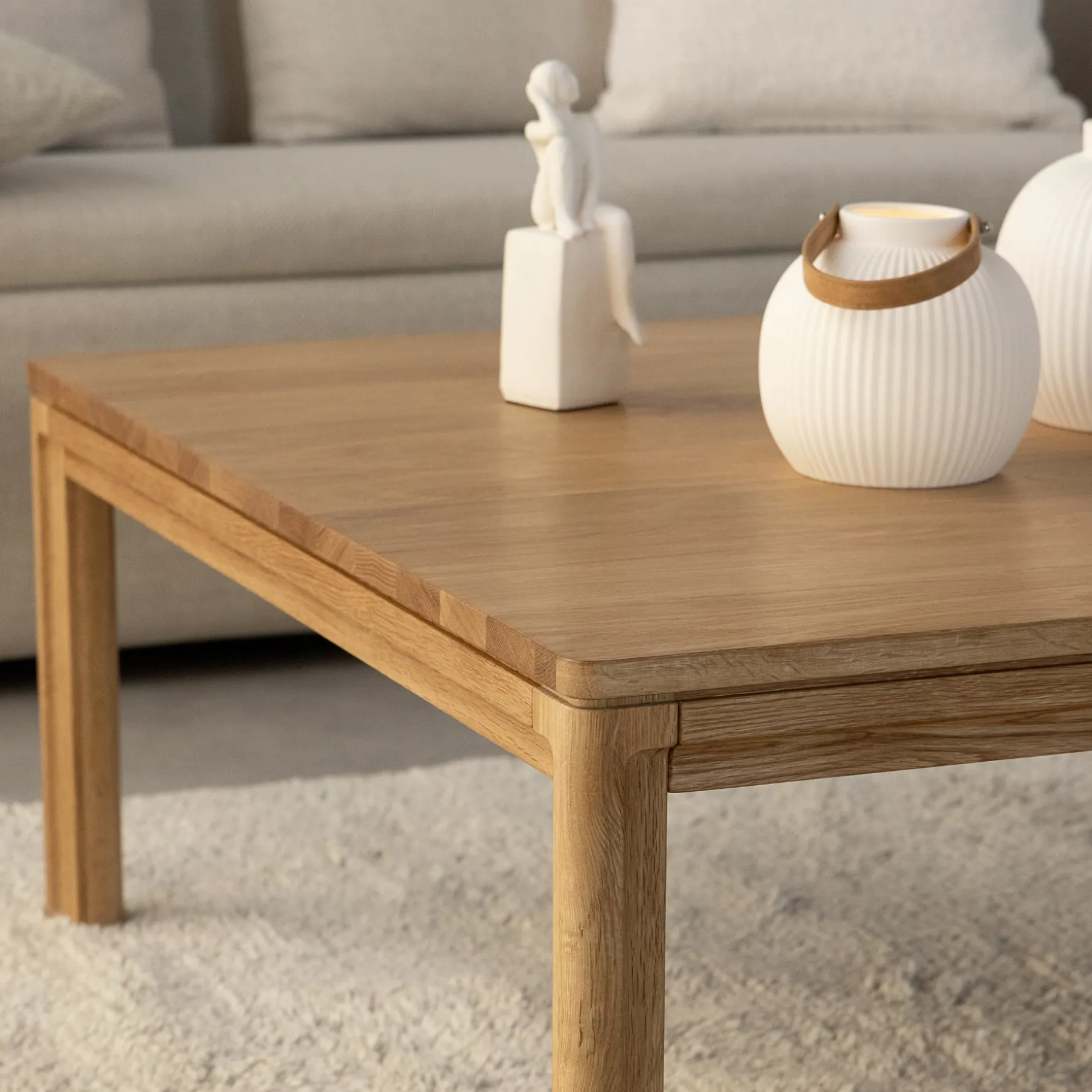 ‘Nautral’: Bordplade: oliebehandlet egetræsfinér. Ben og sarg: Olieret egetræ