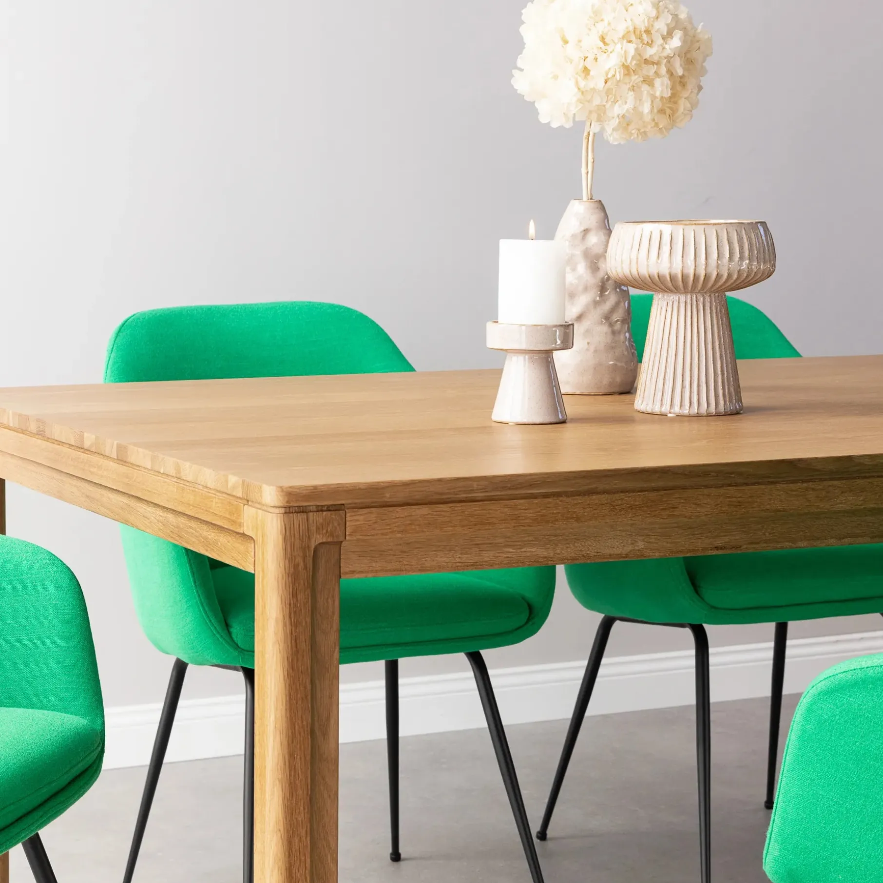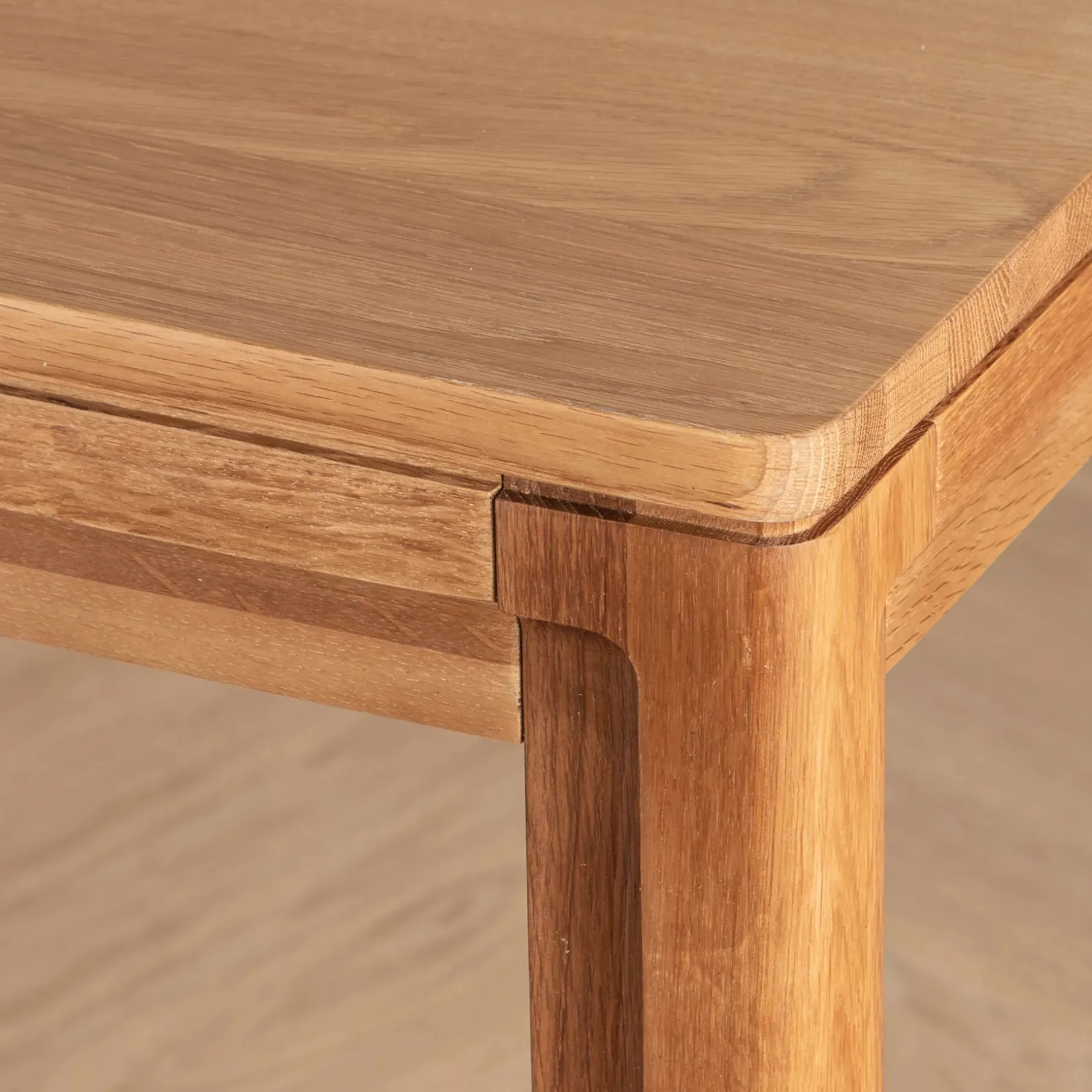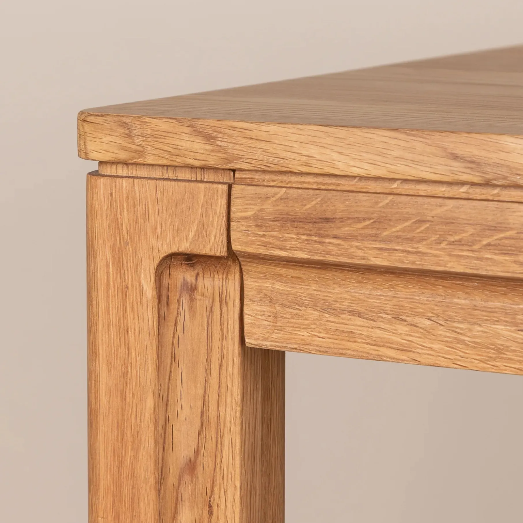 Bordplade: Natur oliebehandlet egetræsfinér. Ben og sarg: Olieret massiv egetræ