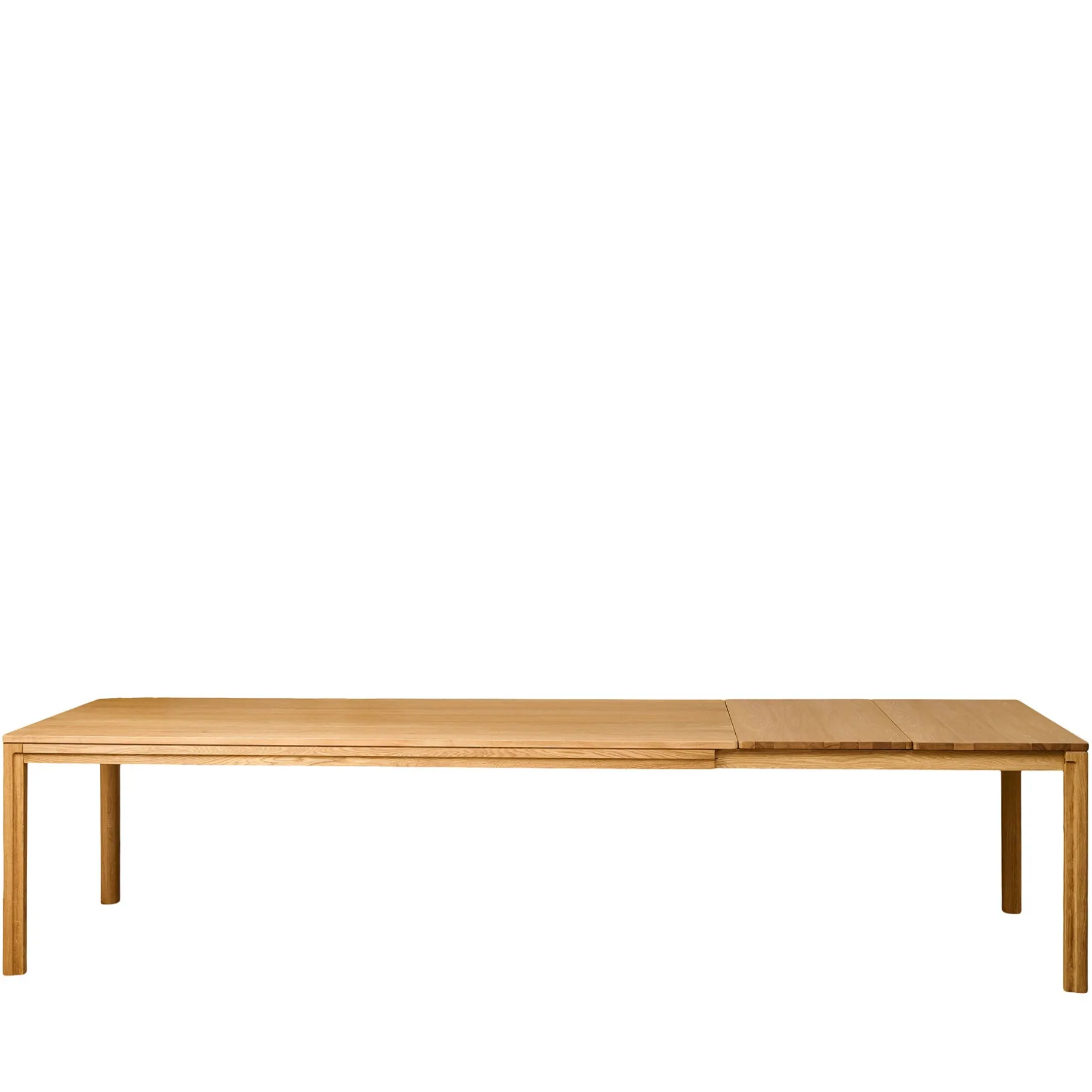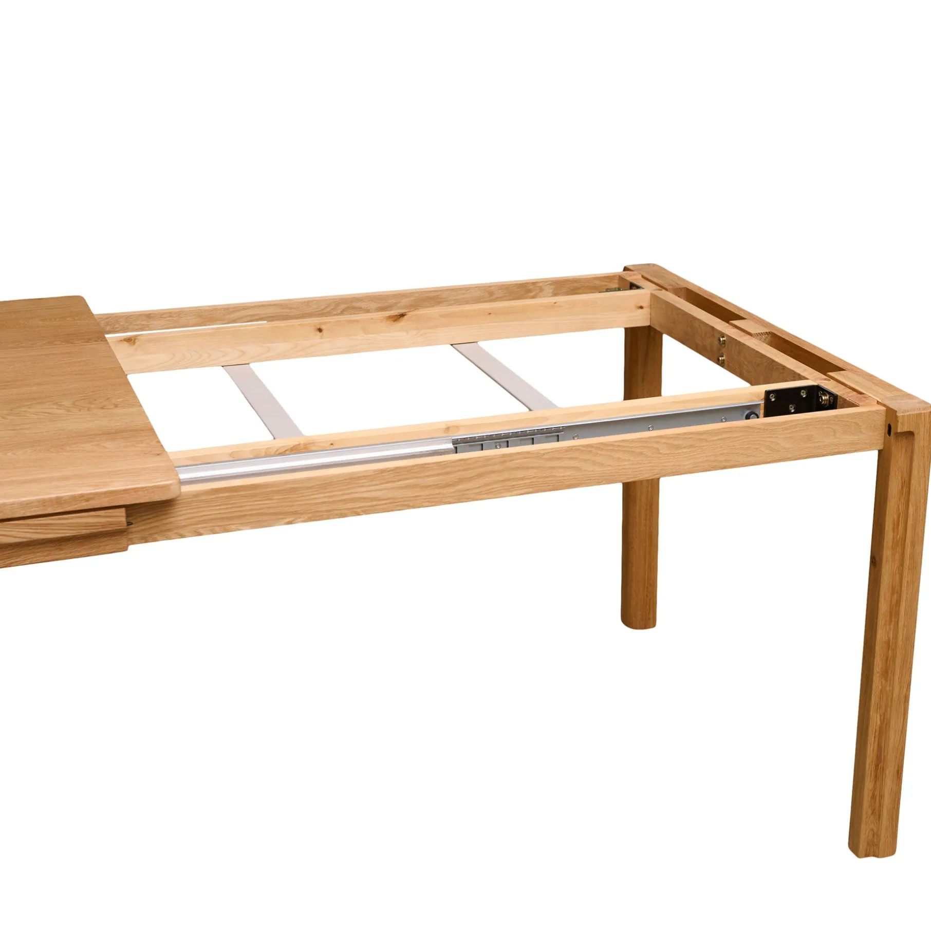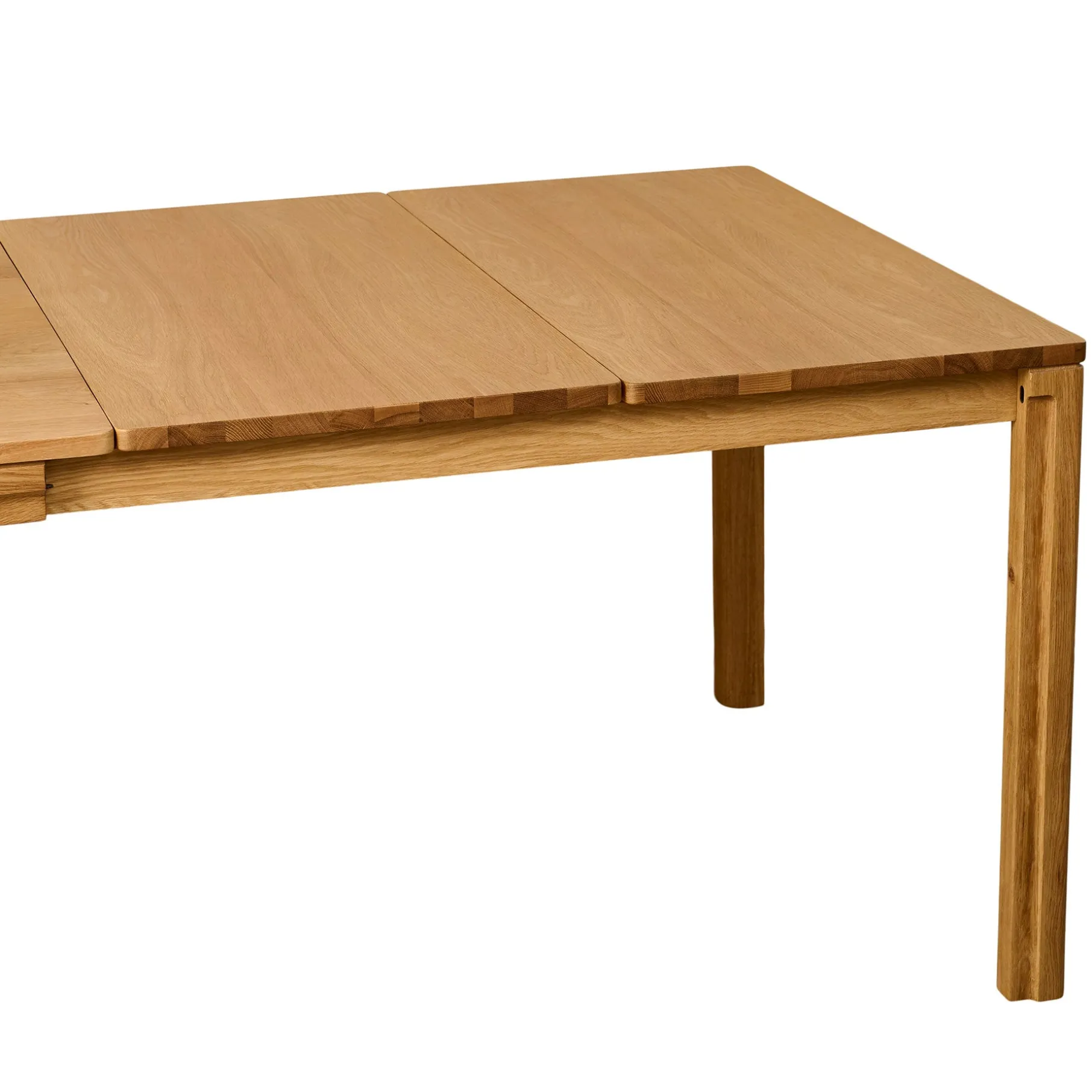 Elegant udtræks-spisebord med 2 tillægsplader, der er designet med en mekaniske, så tillægspladerne placeres i enden af bordet og dermed undgår du den trælse rille i midten af bordet, som ved andre typiske spiseborde med udtræk. Du kan frit vælge om du blot vil bruge en af tillægpladerne eller dem begge, alt efter hvor langt du ønsker bordet.