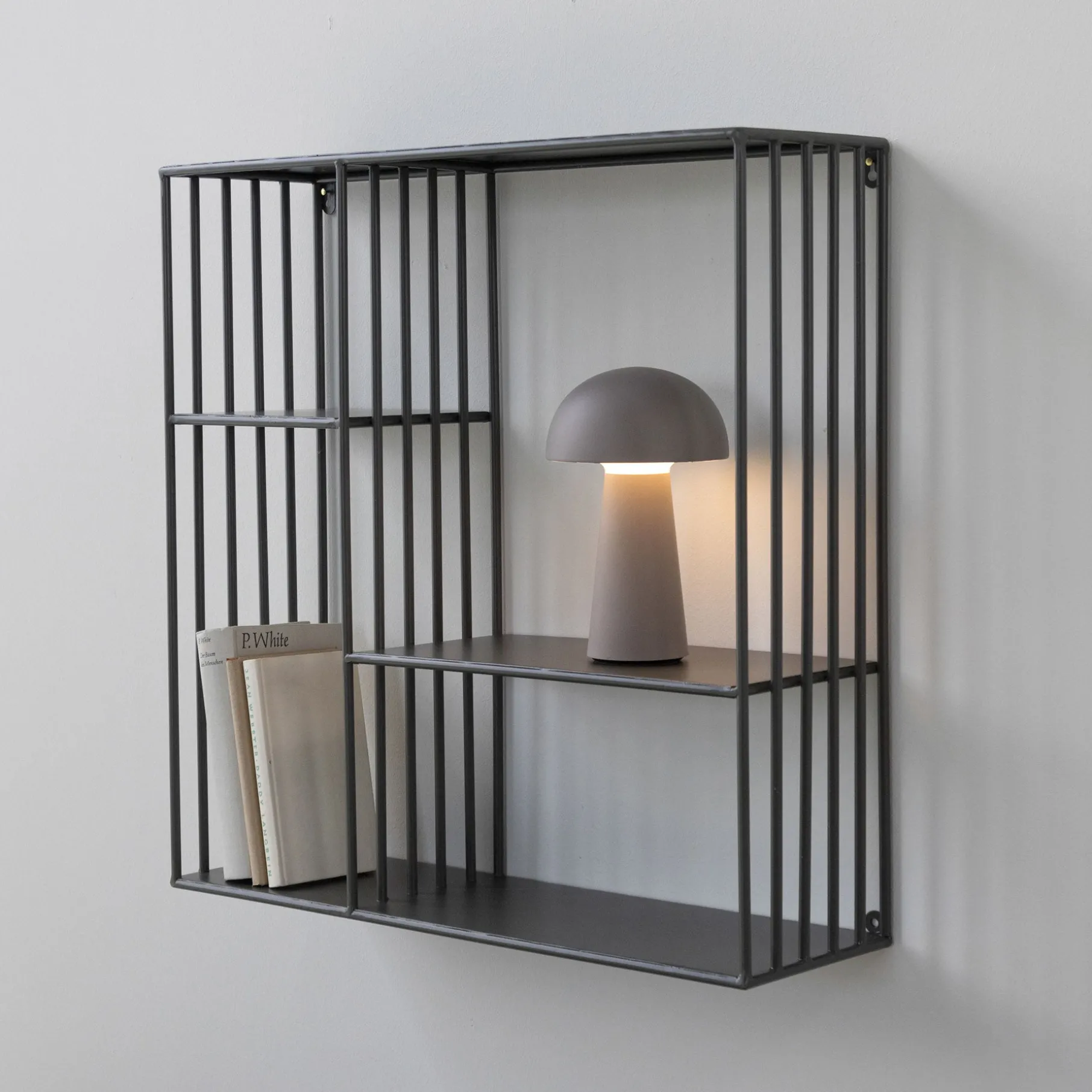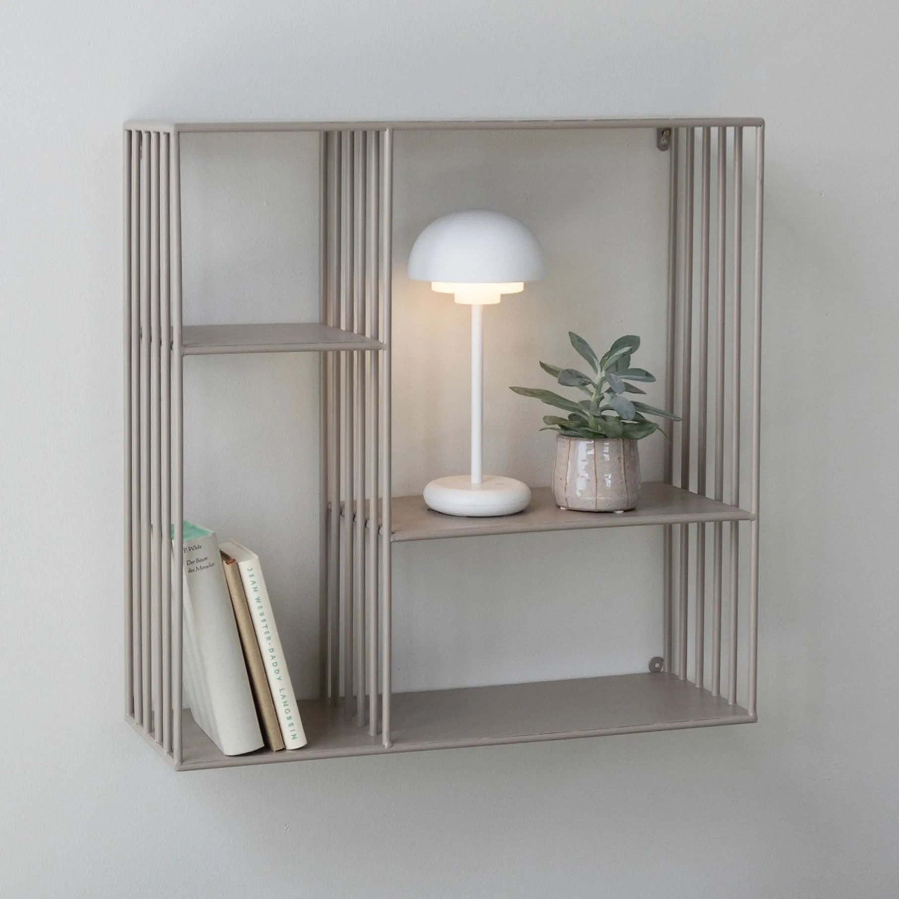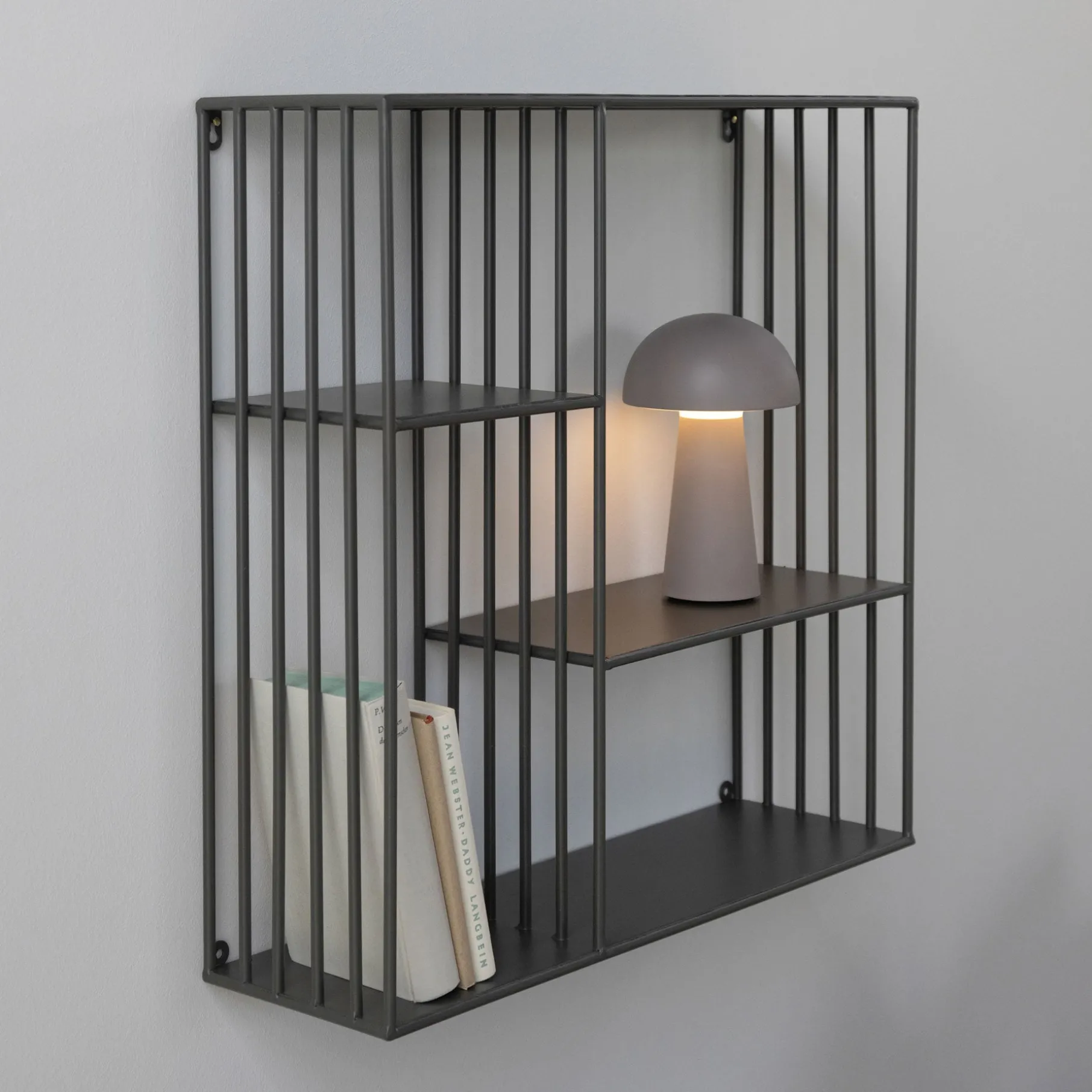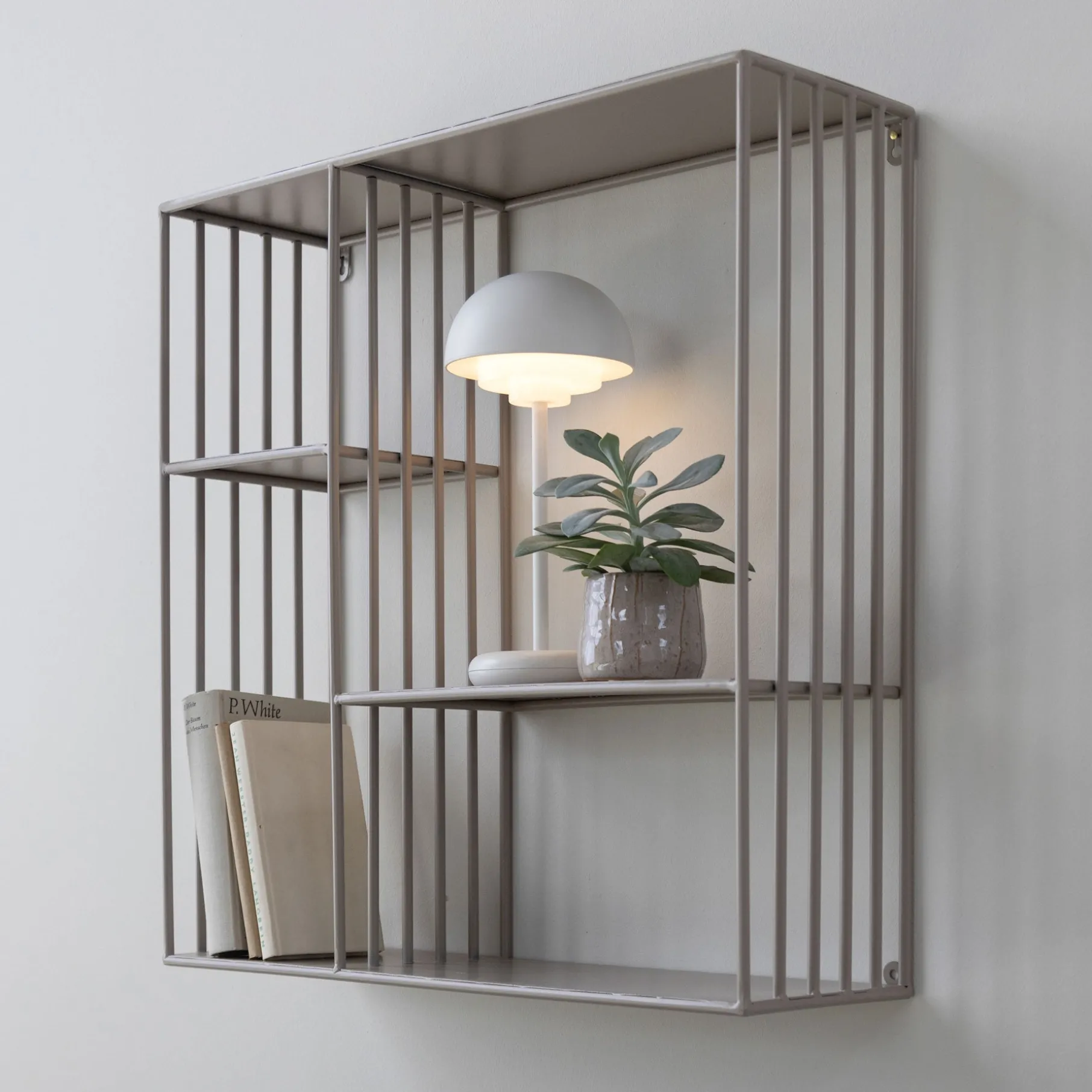 Elegant og stilren reol i pulverlakeret metal.