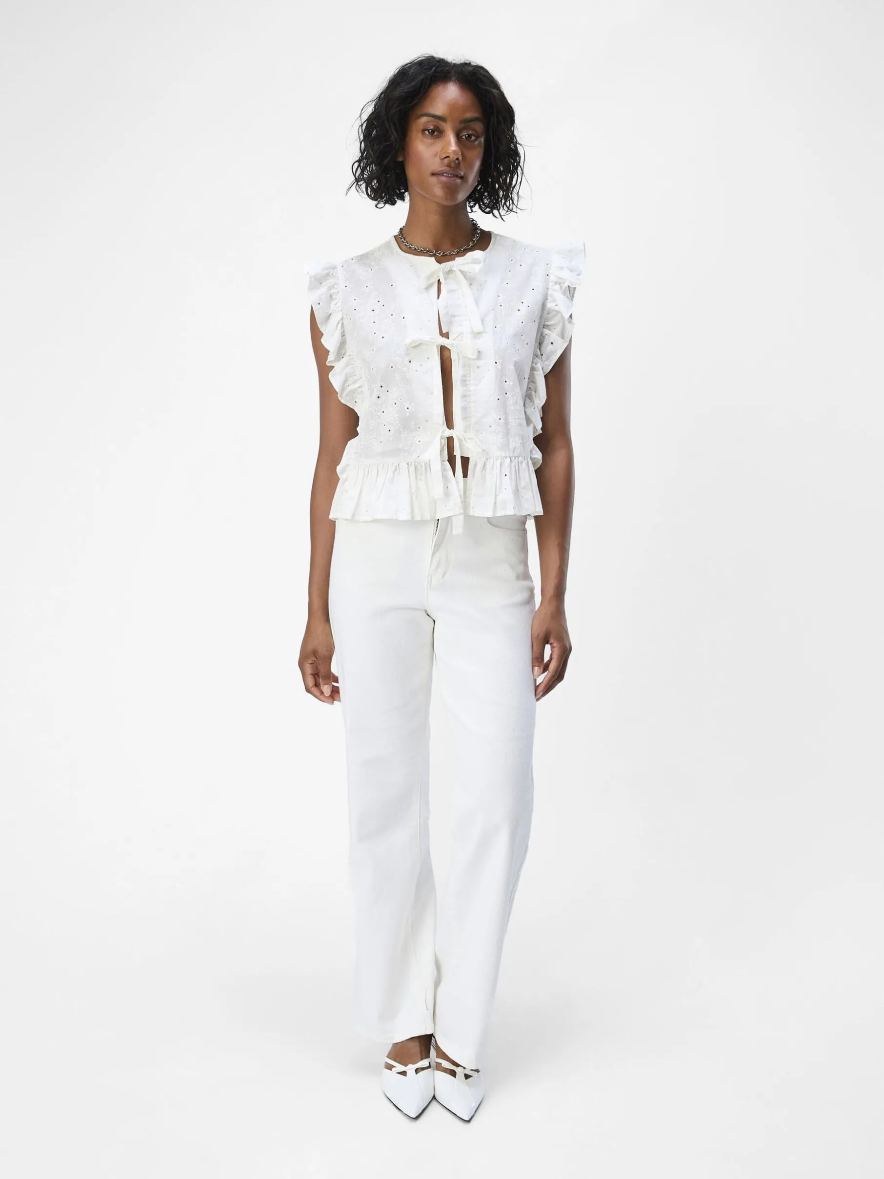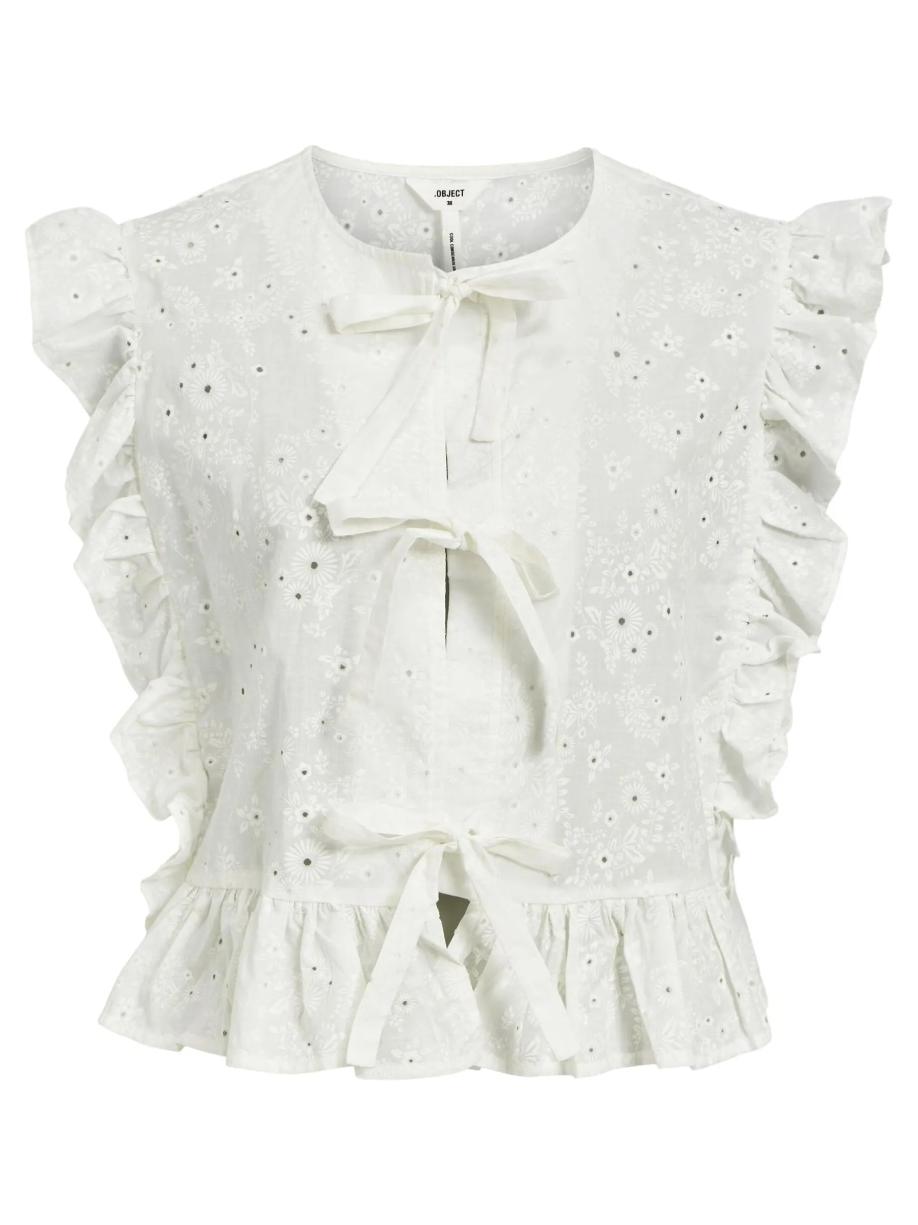 Peplumbomuldstop med broderie anglaise fra Object.