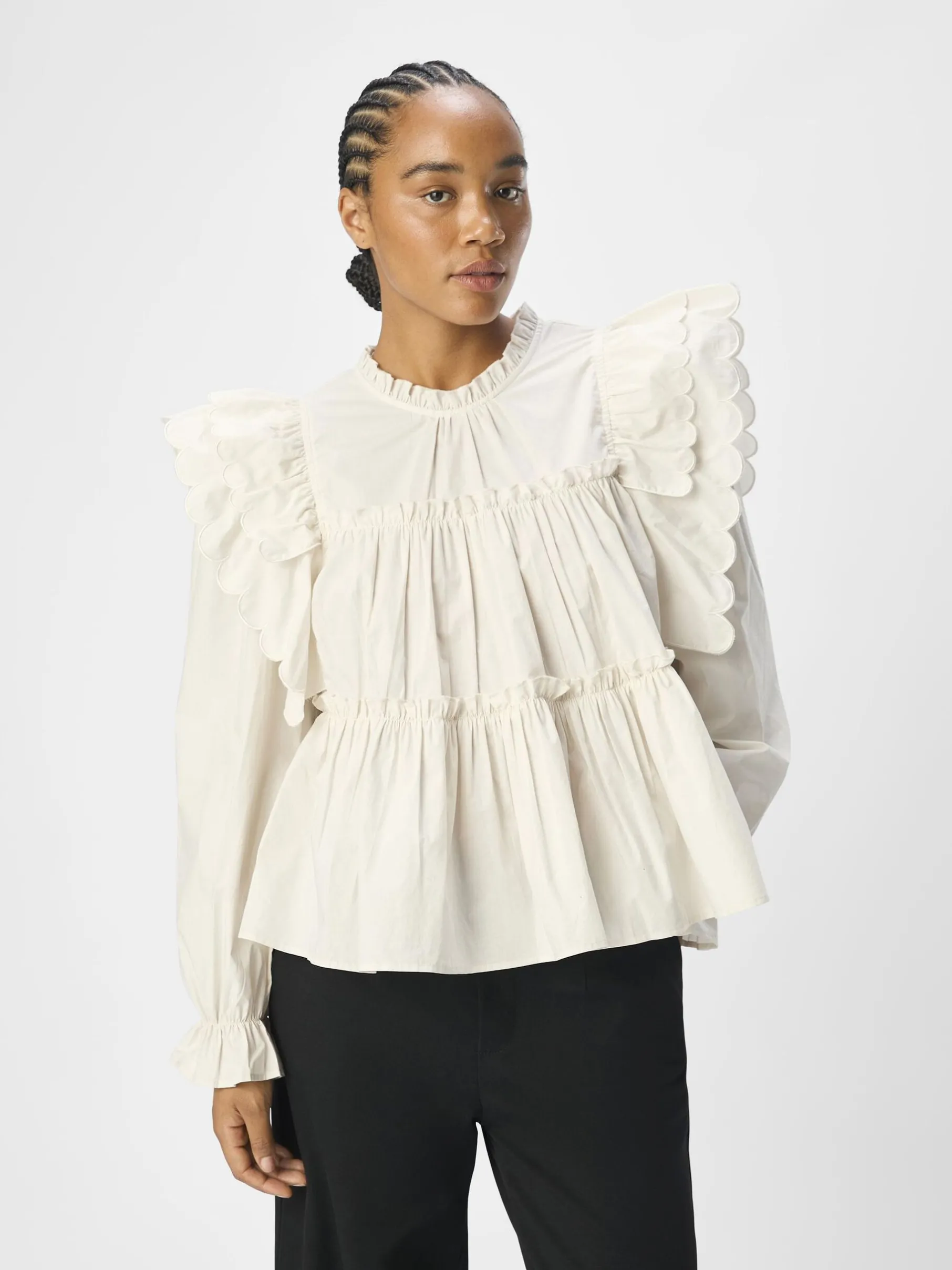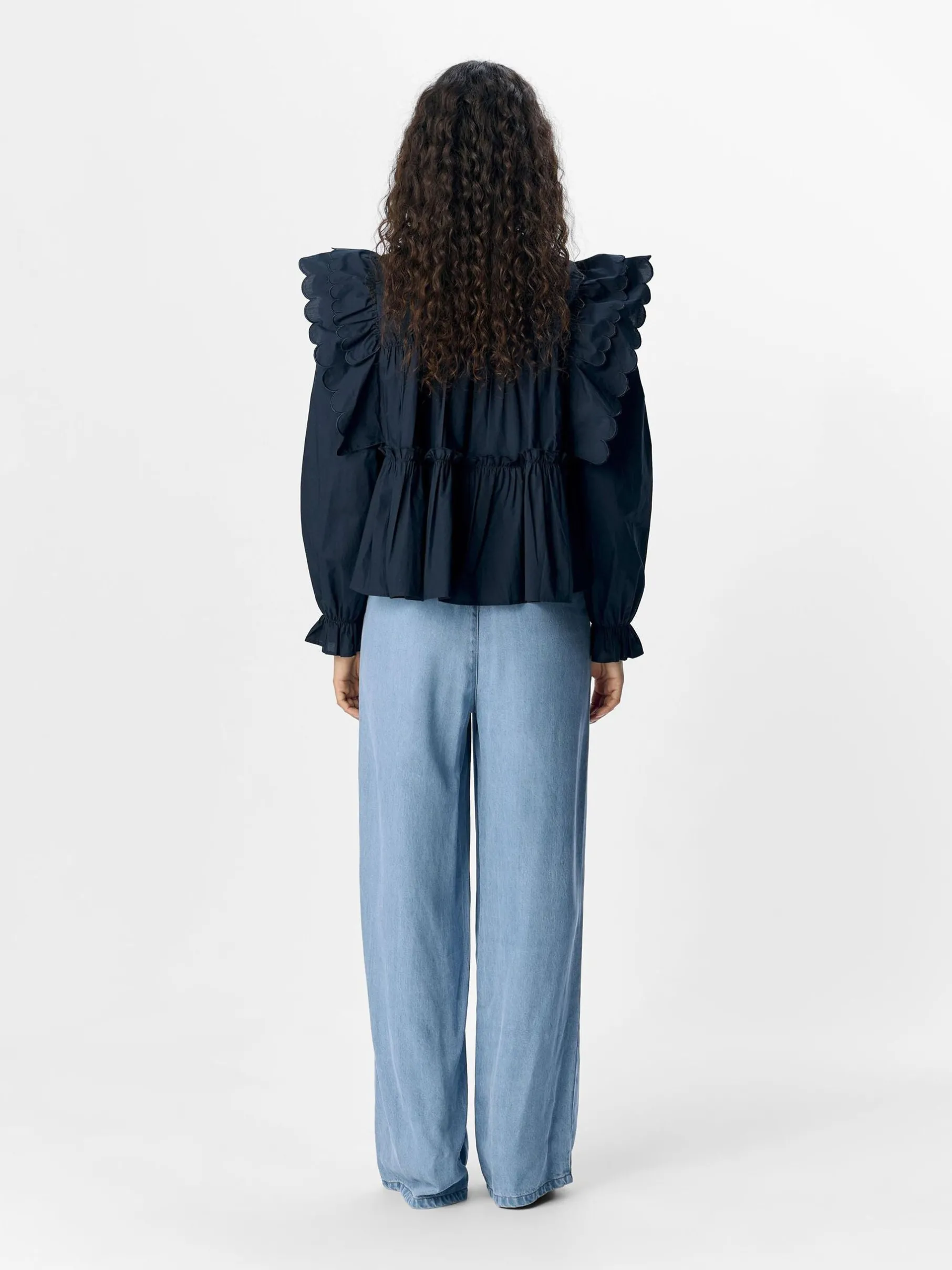 Langærmet ruflet top med flæsedetaljer fra Object.