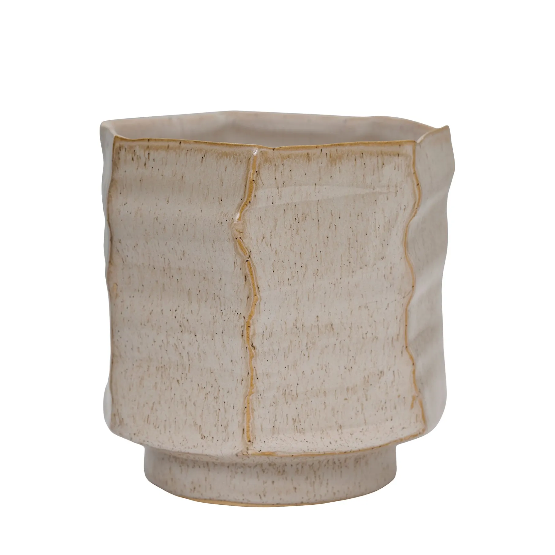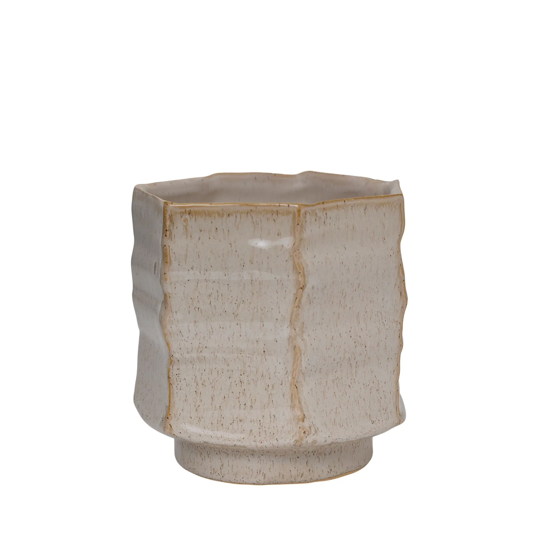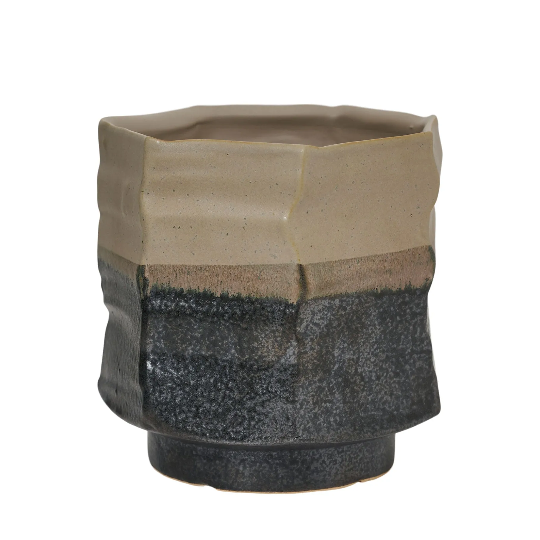 Den er lavet i keramik og er dyppet i en glasur, der giver overfladen flotte nuancer.