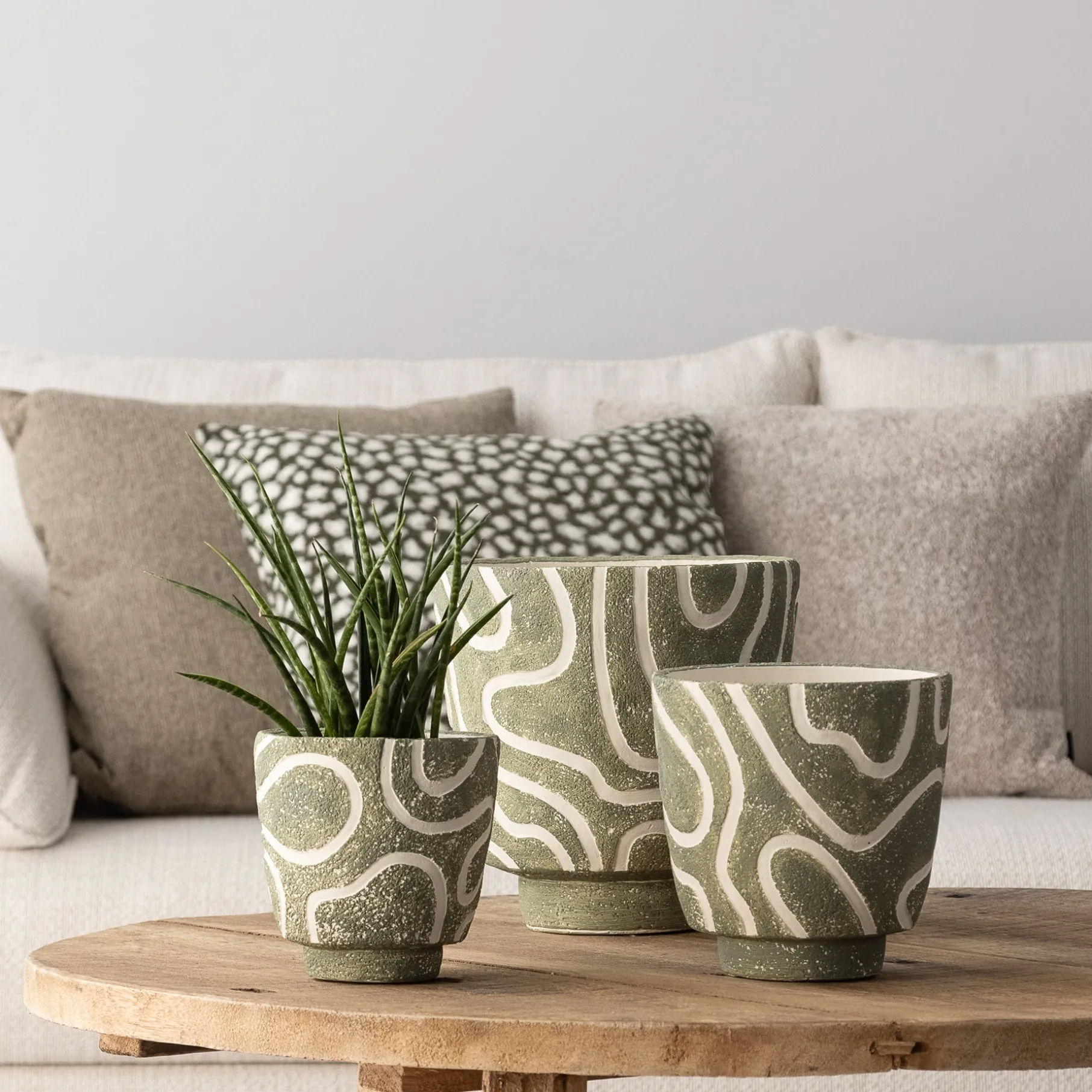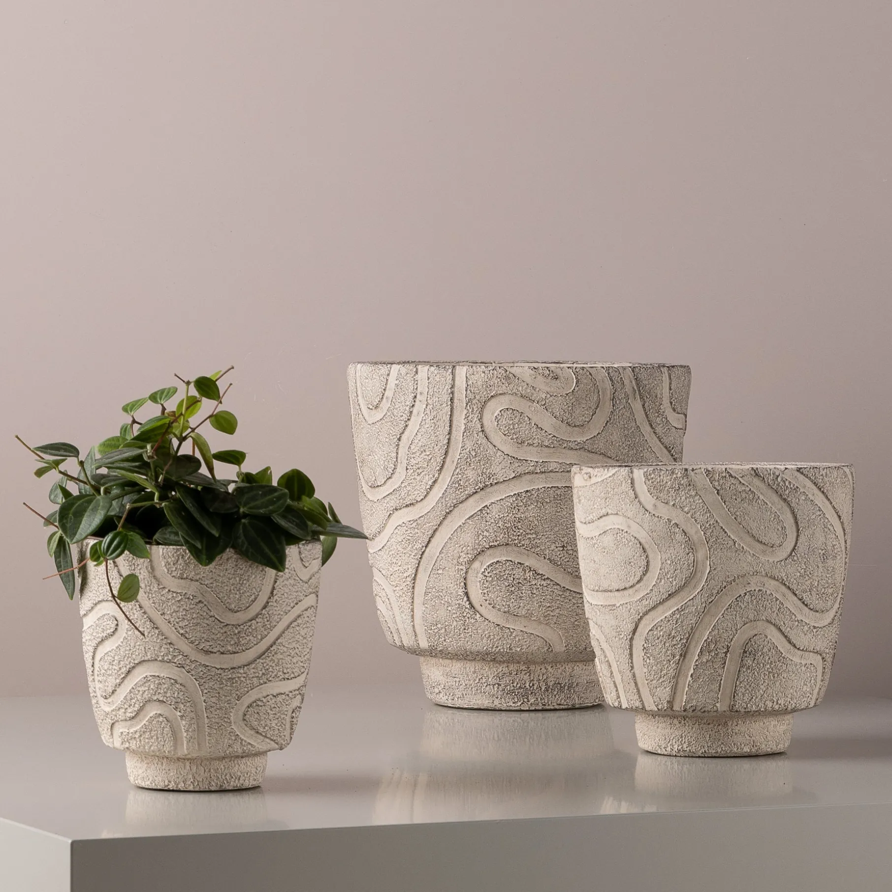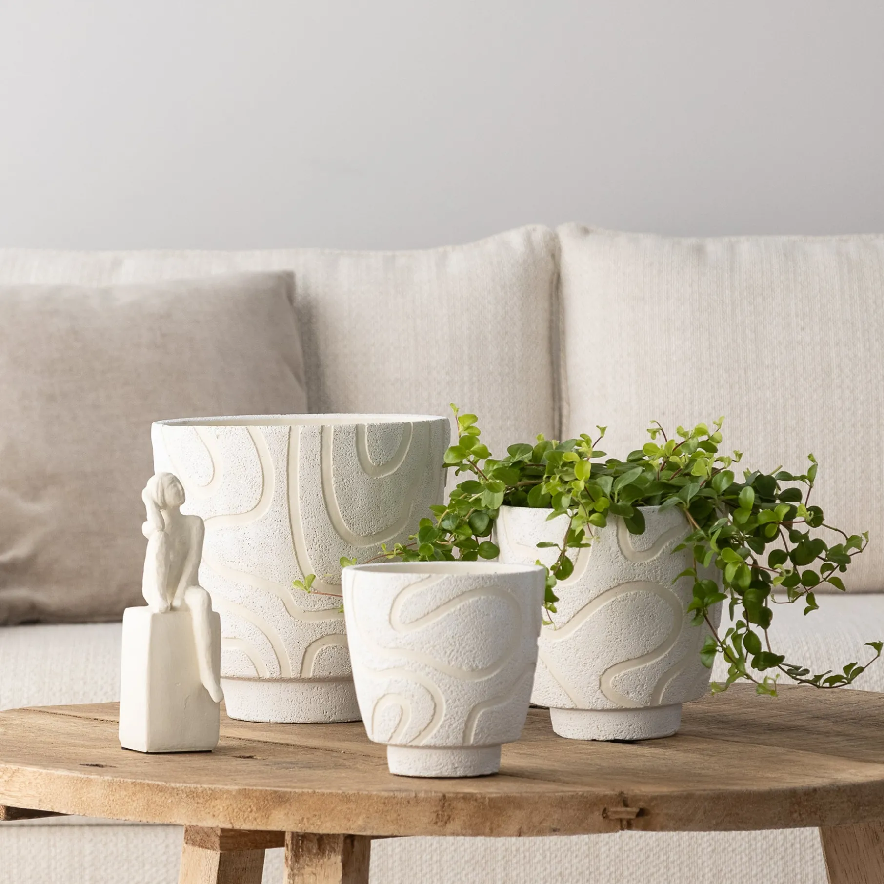 Urtepotte til indendørs brug, i mat beton med et flot grafisk mønster i 3D effekt