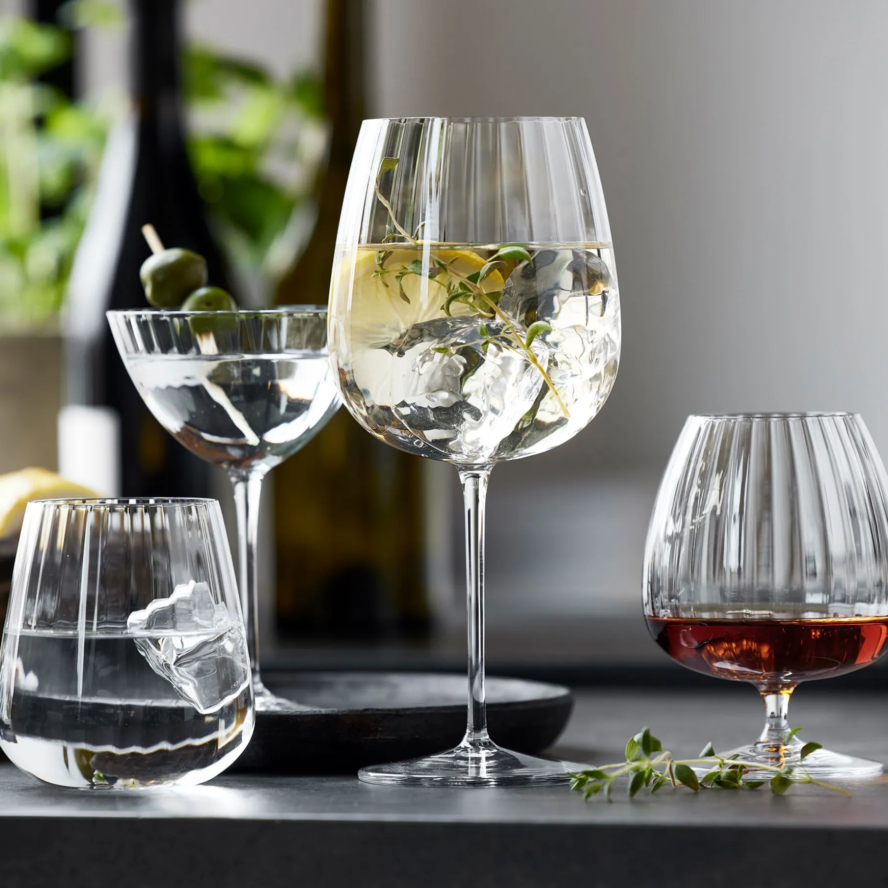 Optica-serien præsenterer en række glas fra Luigi Bormioli med et smukt plisseret design, der tilføjer en unik æstetik til dine bordarrangementer.