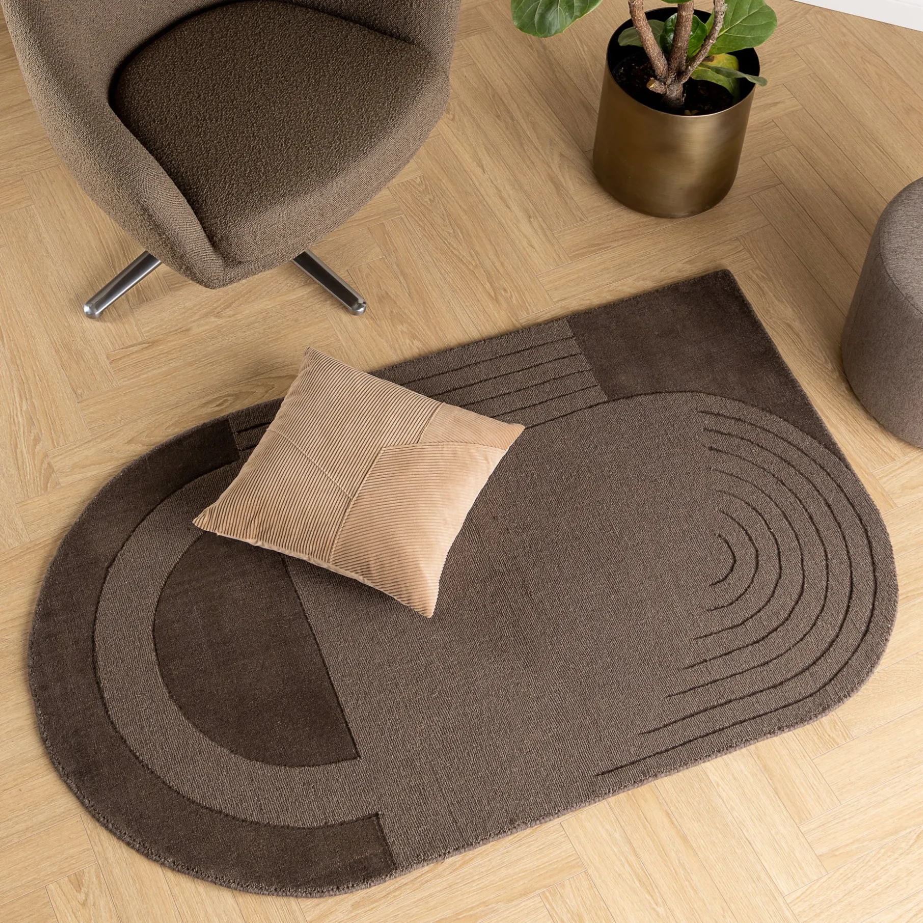 Et lækkert tætvævet gulvtæppe i en blød uld kvalitet. Tæppet har en moderne organisk form med et grafisk mønster, som giver indretningen en blød og hyggelig stemning.
