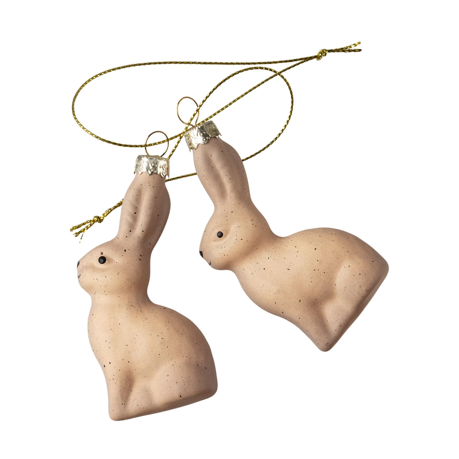 2 små søde påskeharer i glas og med en fin guldfarvet snor