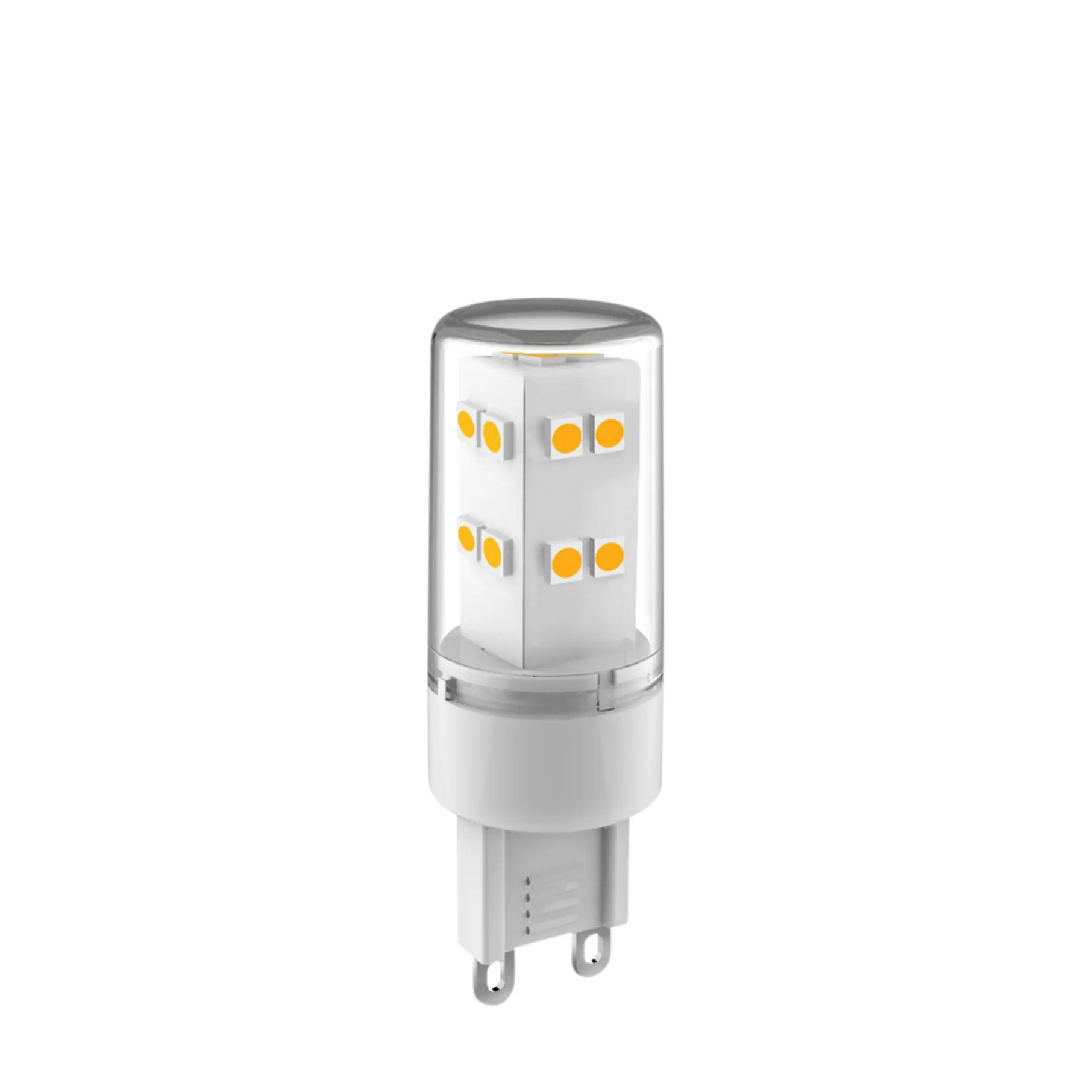 Pære med hvidt lys og G9 fatning.