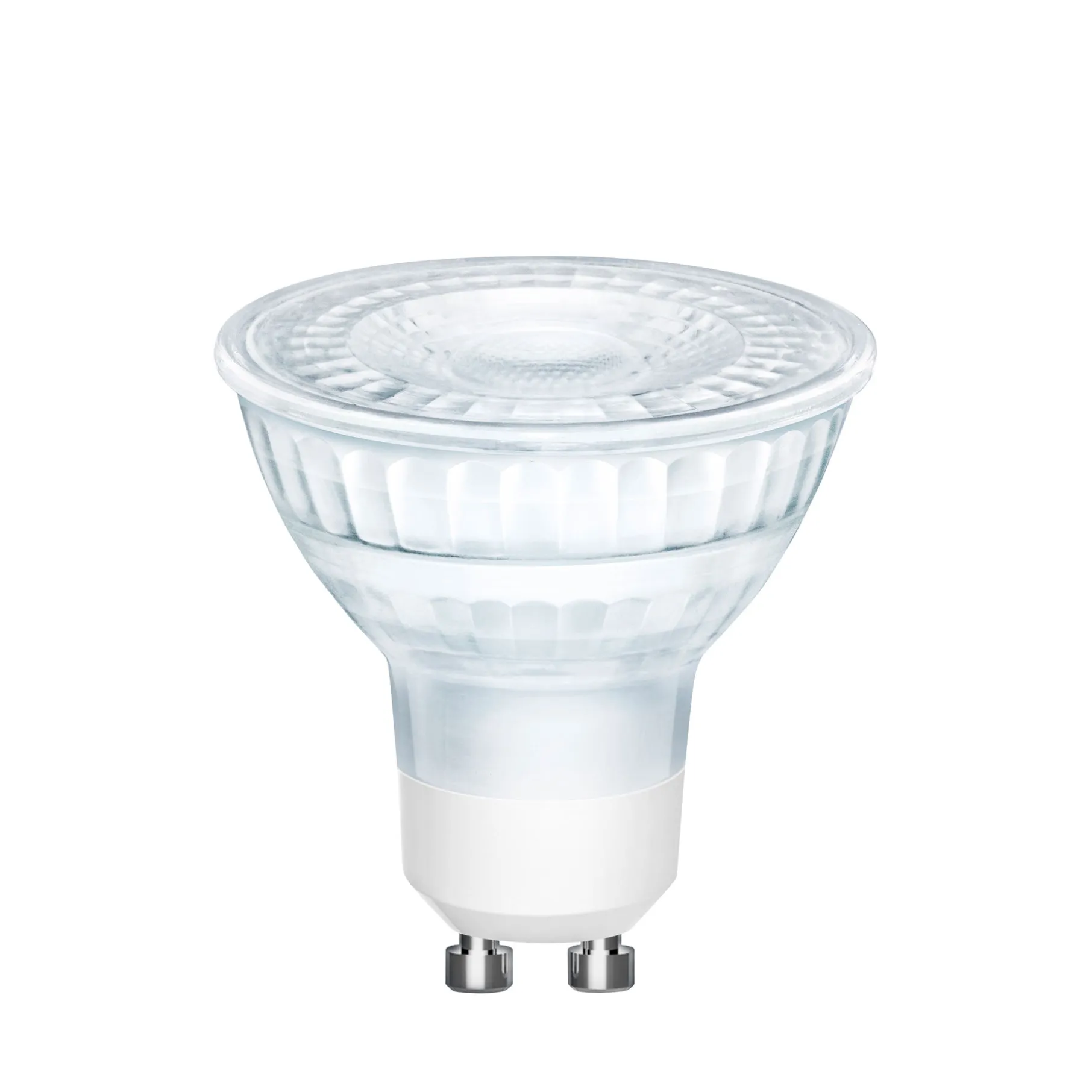 GU10 pære med varmt hvidt lys.