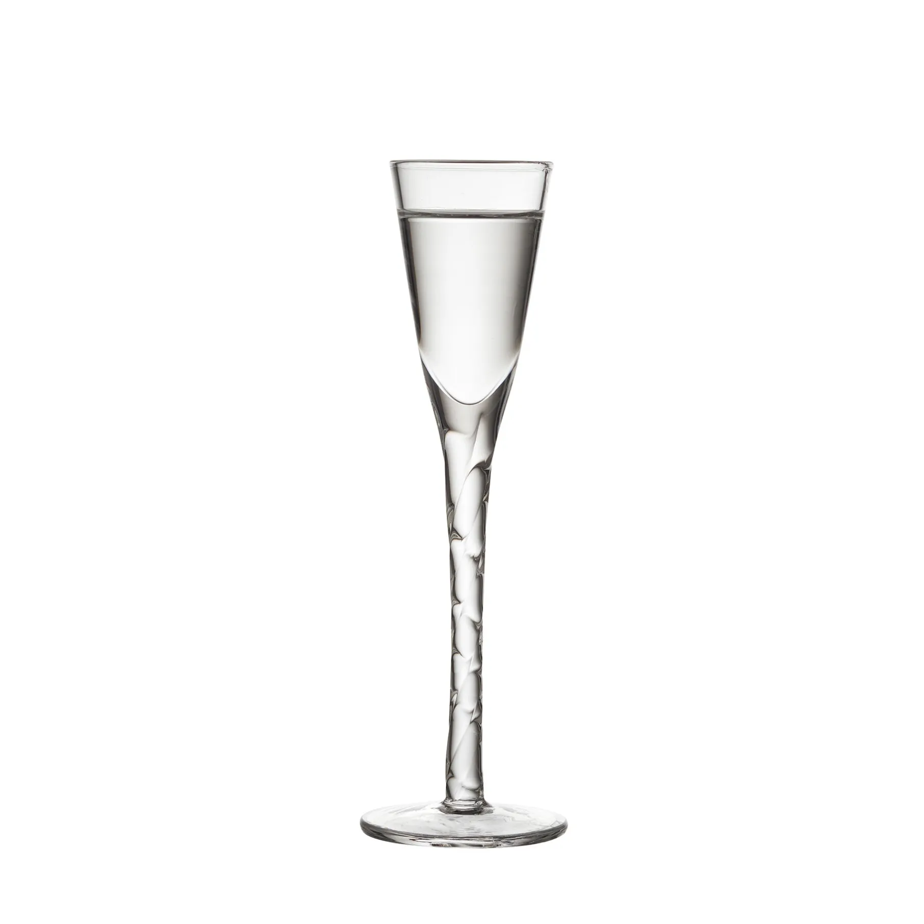 Lyngby Glas’ snapsesæt består af seks unikke, håndlavede snapseglas, der er mundblæst og udsmykket med en hånddrejet, snoet stilk. Snapseglassene er udført i klart glas og præsenterer sig med et smukt og tidløst design, der udstråler klassisk elegance.