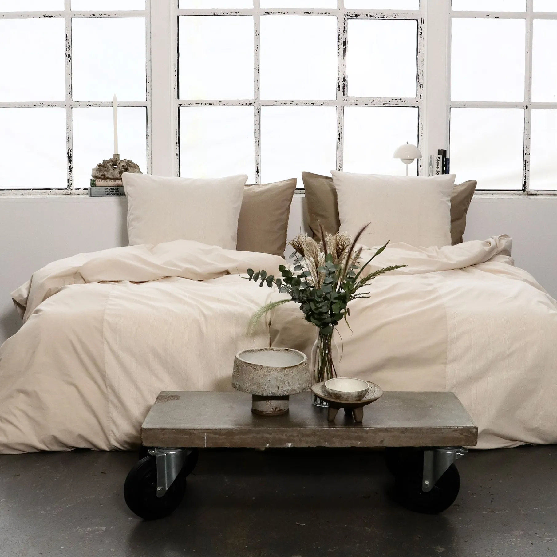 Omhu præsenterer sengetøj fremstillet i 100% økologisk bomuld, vævet i en luksuriøs renforcé lærredsvævning. Denne vævning resulterer i en glat overflade, der får farverne til at træde smukt frem.