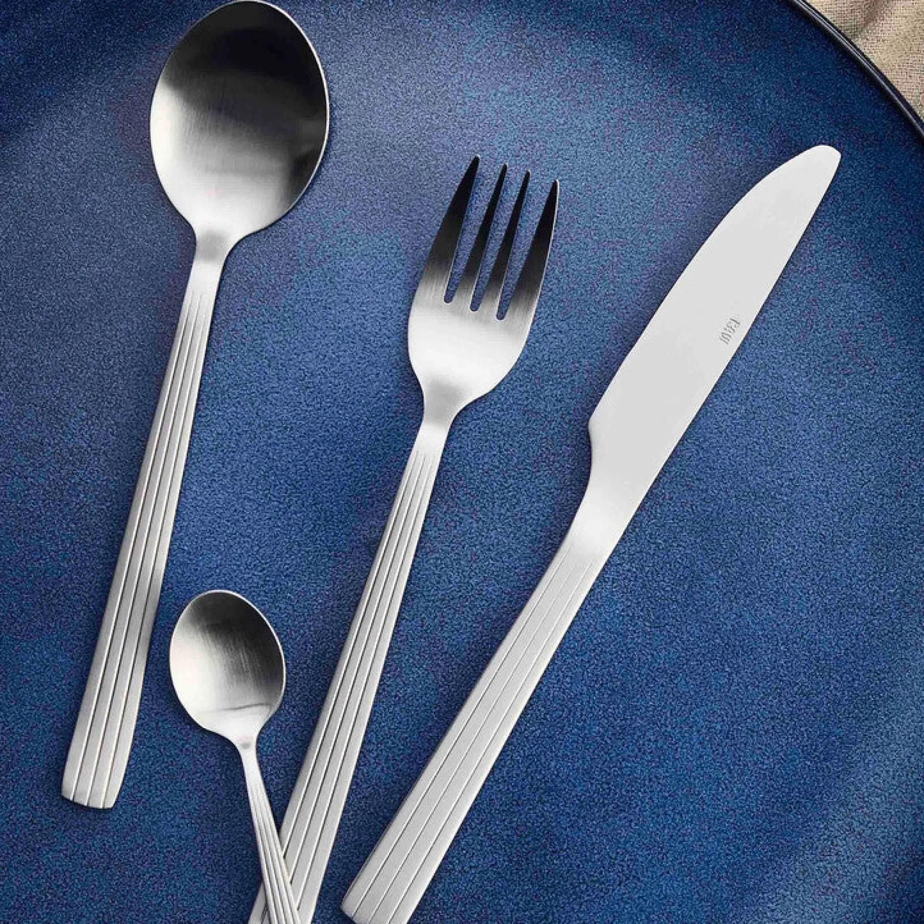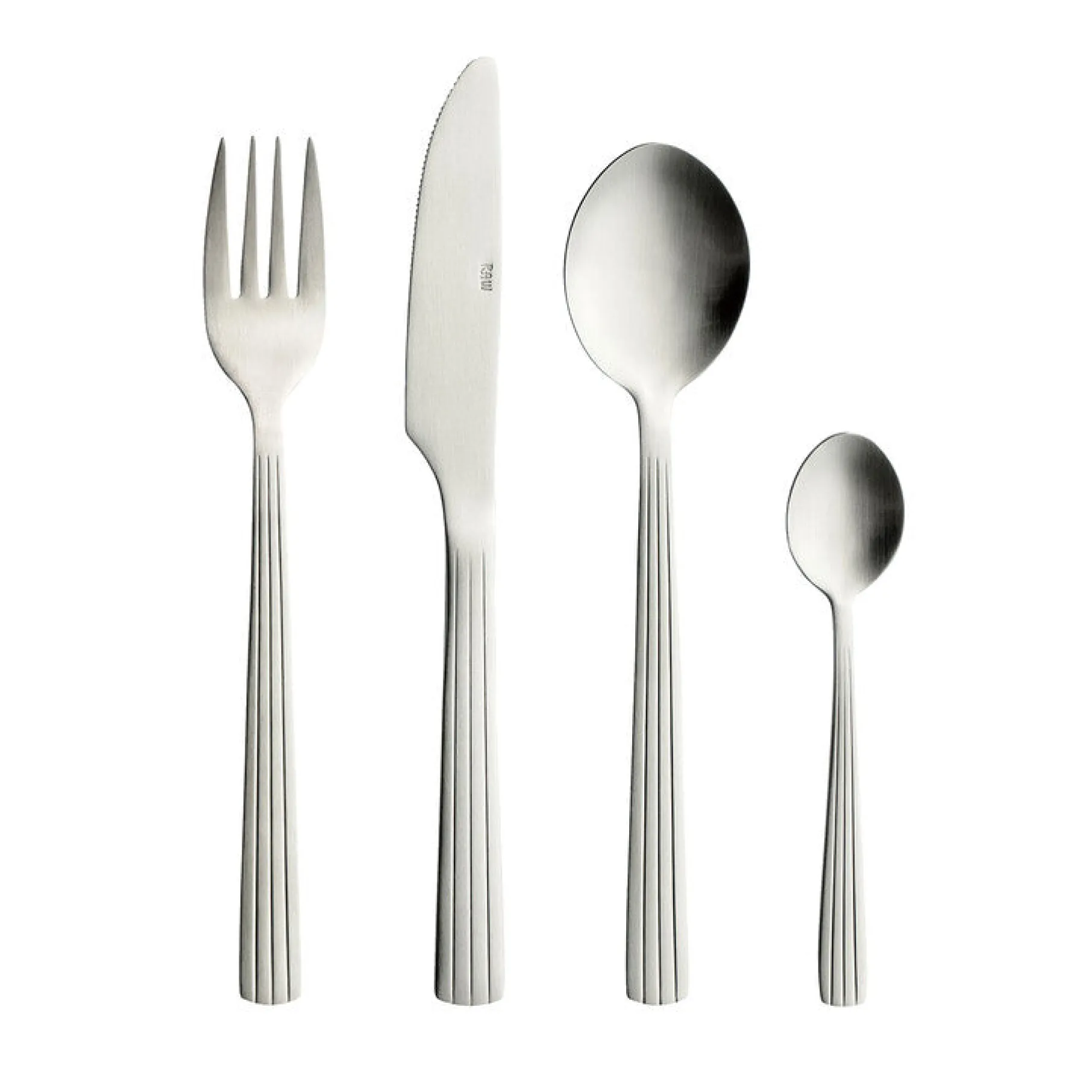 Opdag det subtile rå udtryk i AIDA RAW bestiksættet i mat stål. Skab en elegant og nordisk inspireret borddækning med dette holdbare og smukt designede sæt. Uanset lejligheden vil dette bestiksæt tilføje en stilfuld detalje til dine måltider og give dig en fornemmelse af kvalitet ved hvert spisebord.