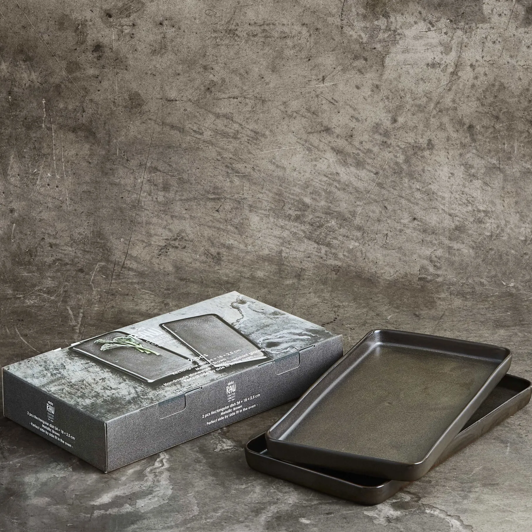Flot fadsæt med dobbeltbrændt stentøj i højeste kvalitet. Fadene er håndlavet, så hvert produkt er unikt. Fadene er med ridsefri glasur.