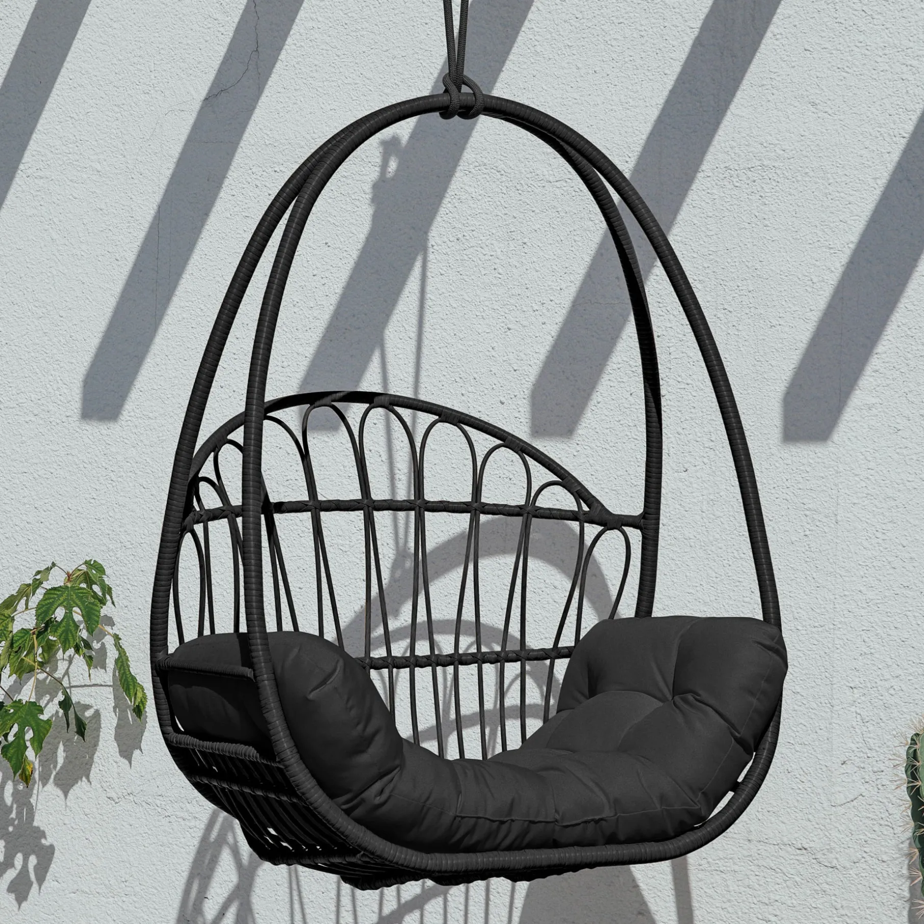 Hængestolen er lavet i det populære genanvendelige materiale PE Rattan. Det syntetiske materiale er karakteriseret med et realistisk udseende af naturlig rattan, men med bedre holdbarhed. PE rattan kan nemlig holde til alt slags vejr.