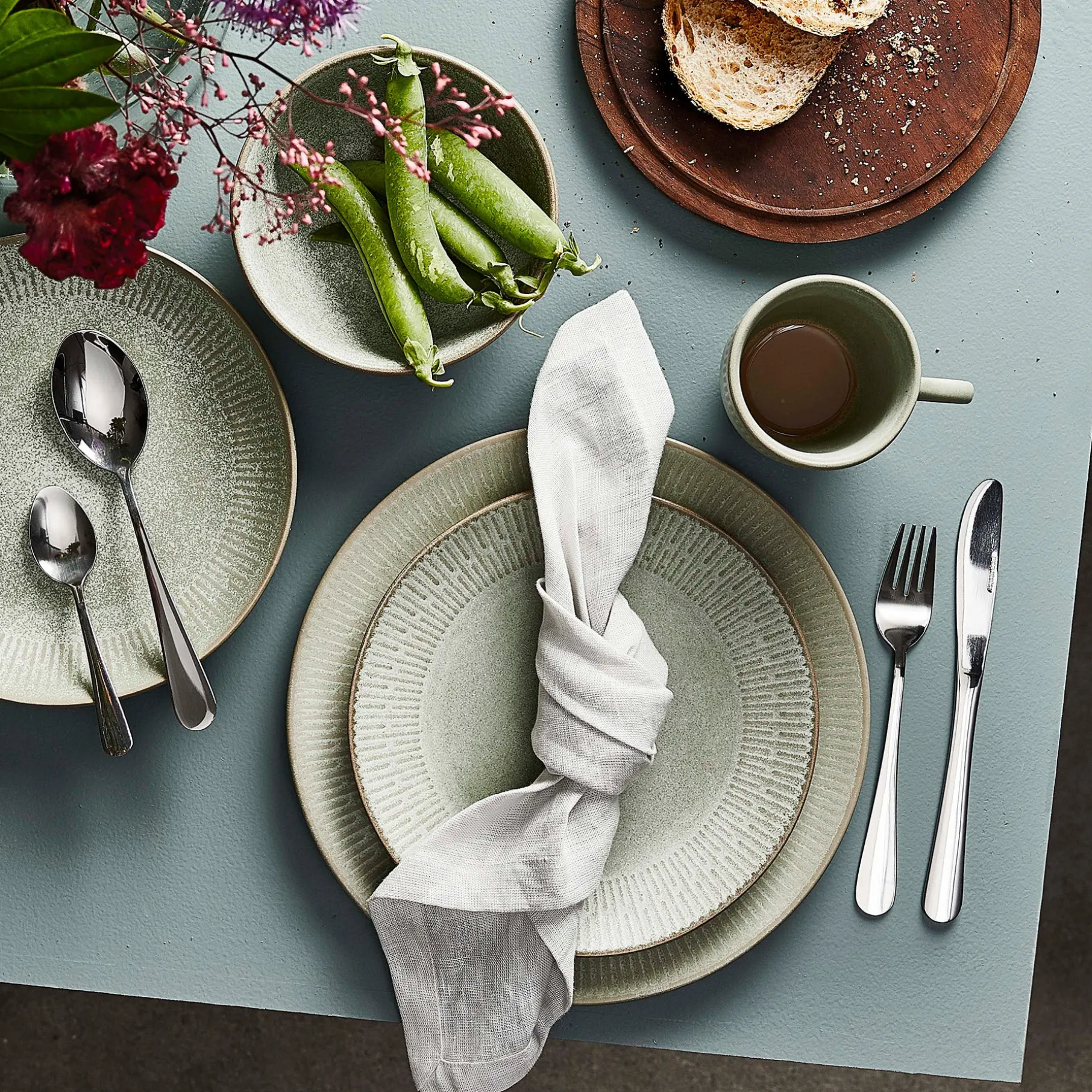 Det robuste stentøj sikrer holdbarhed, og det enkle, men moderne design gør tallerkenen velegnet til både hverdagsbrug og festlige lejligheder.