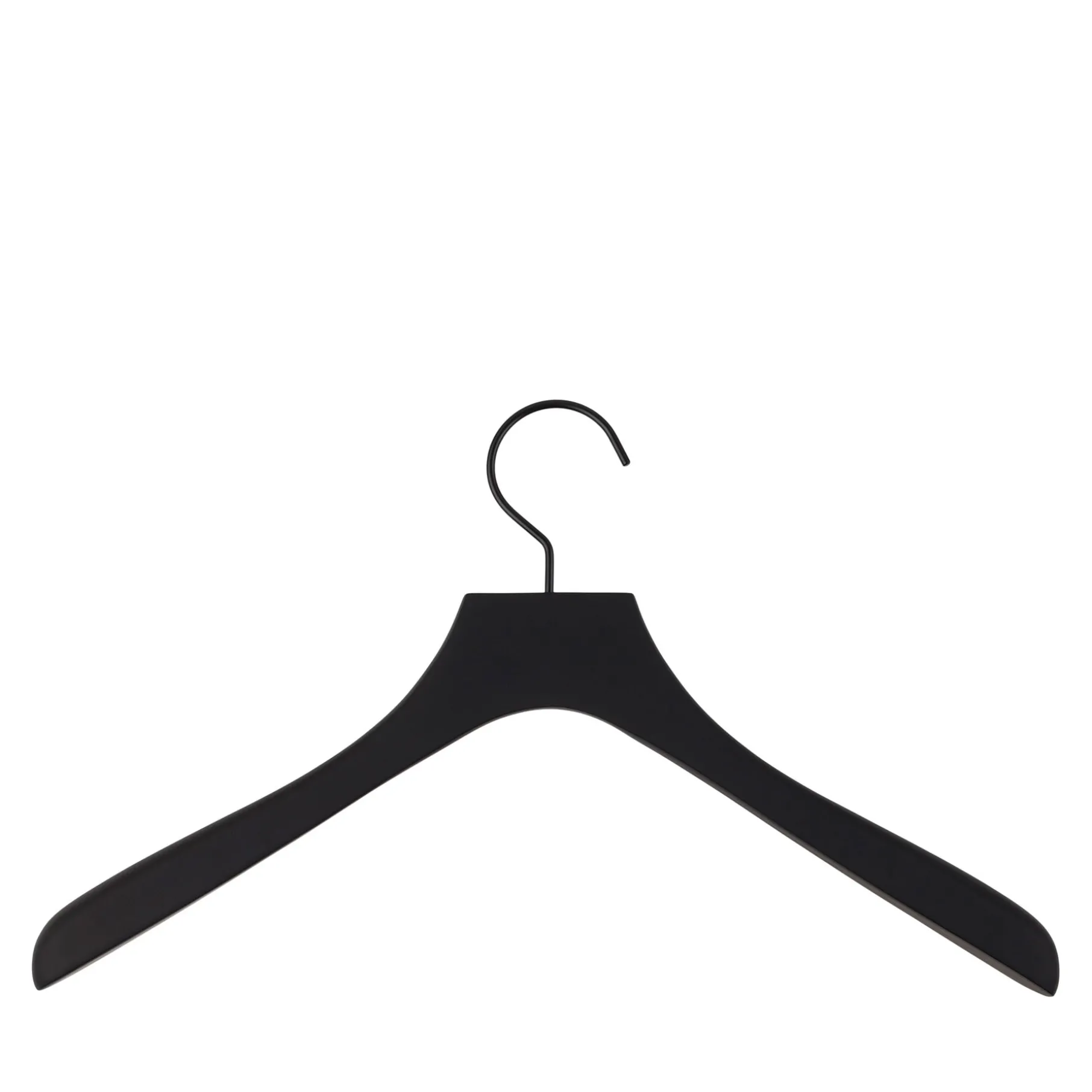 Træbøjle med en mat rubber belægning, som gør at tøjet hænger godt på bøjlen.