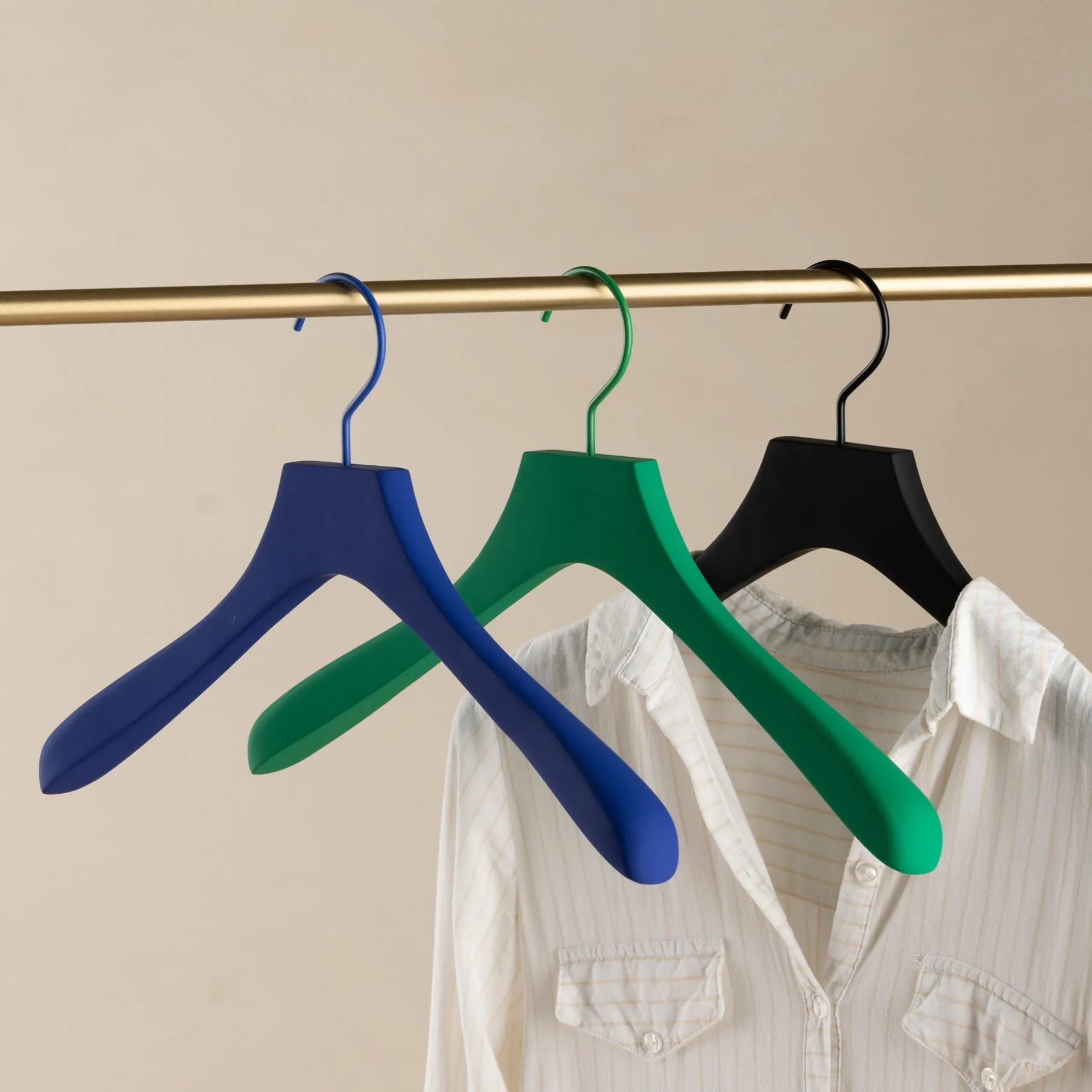 Bøjlen har en buet form og bøjlens arme er brede, dette gør at tøjet ikke mister sin facon og holdes i sin rette form.