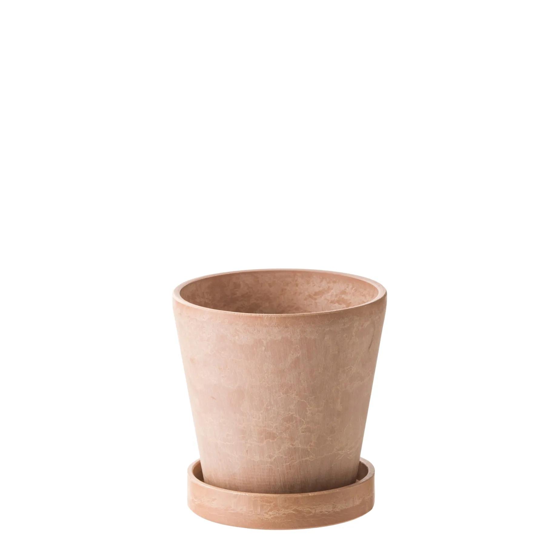 Enkel lille urtepotteskjuler med underskål, i plastik. Den kan både stå inde og ude.