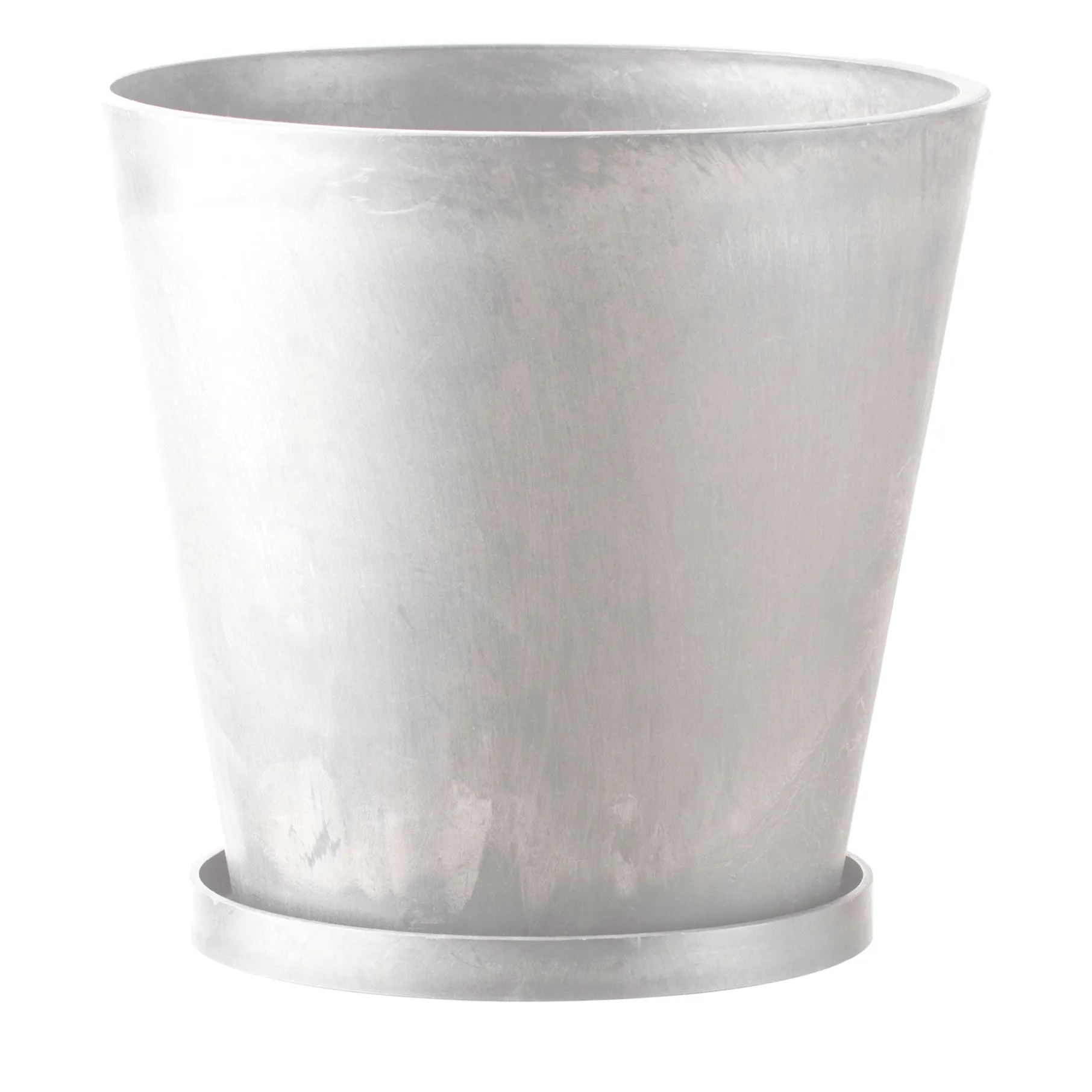 Enkel urtepotteskjuler med underskål, i plastik. Den kan både stå inde og ude.
