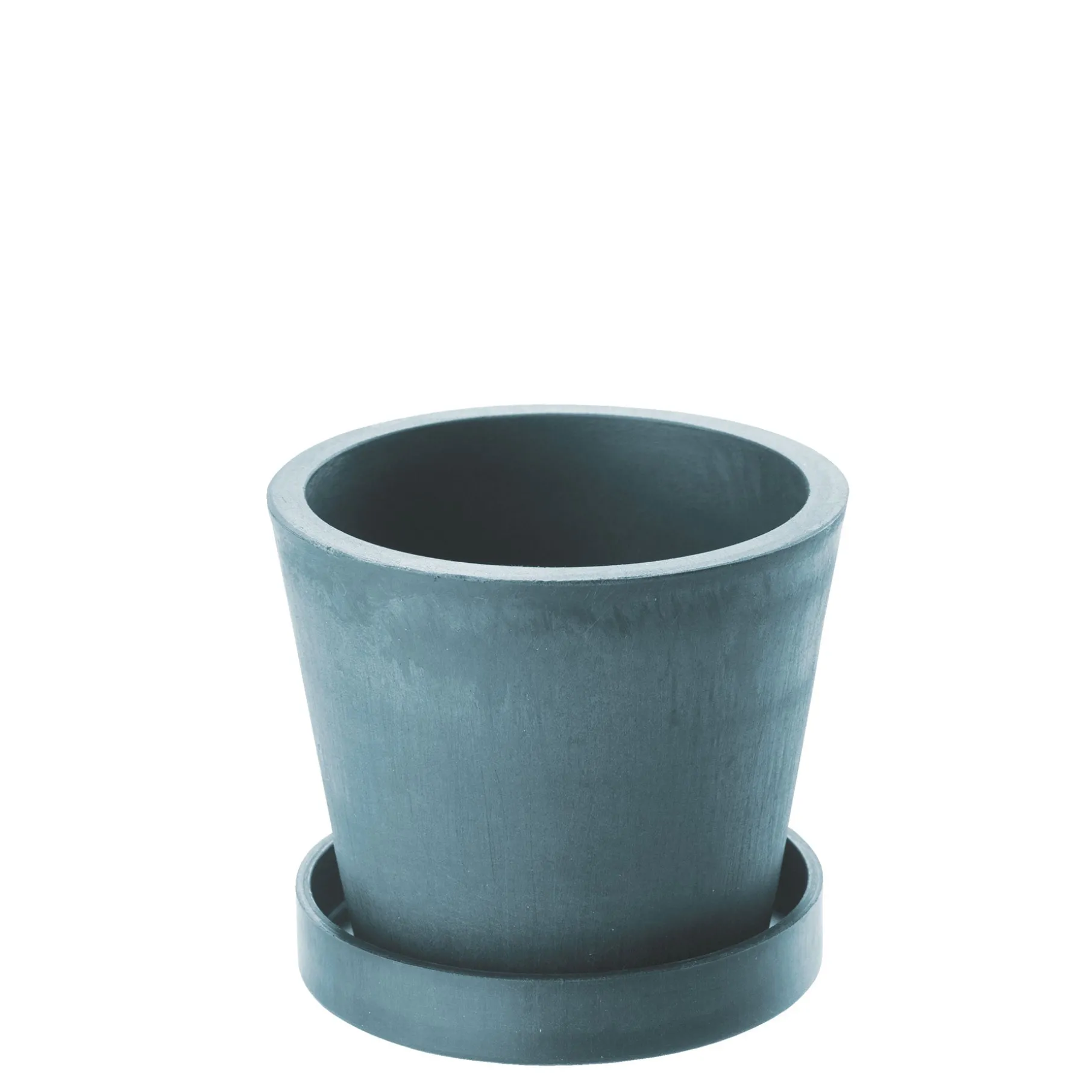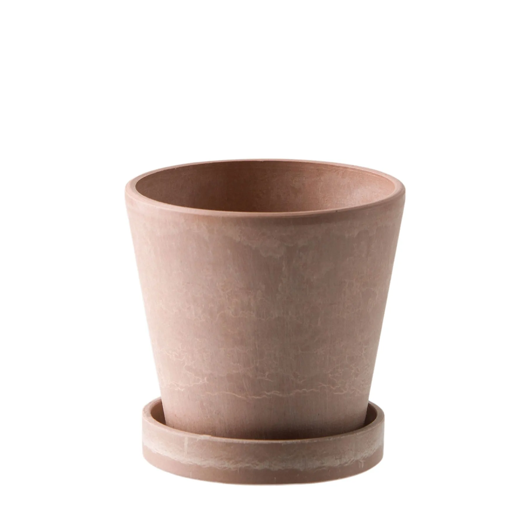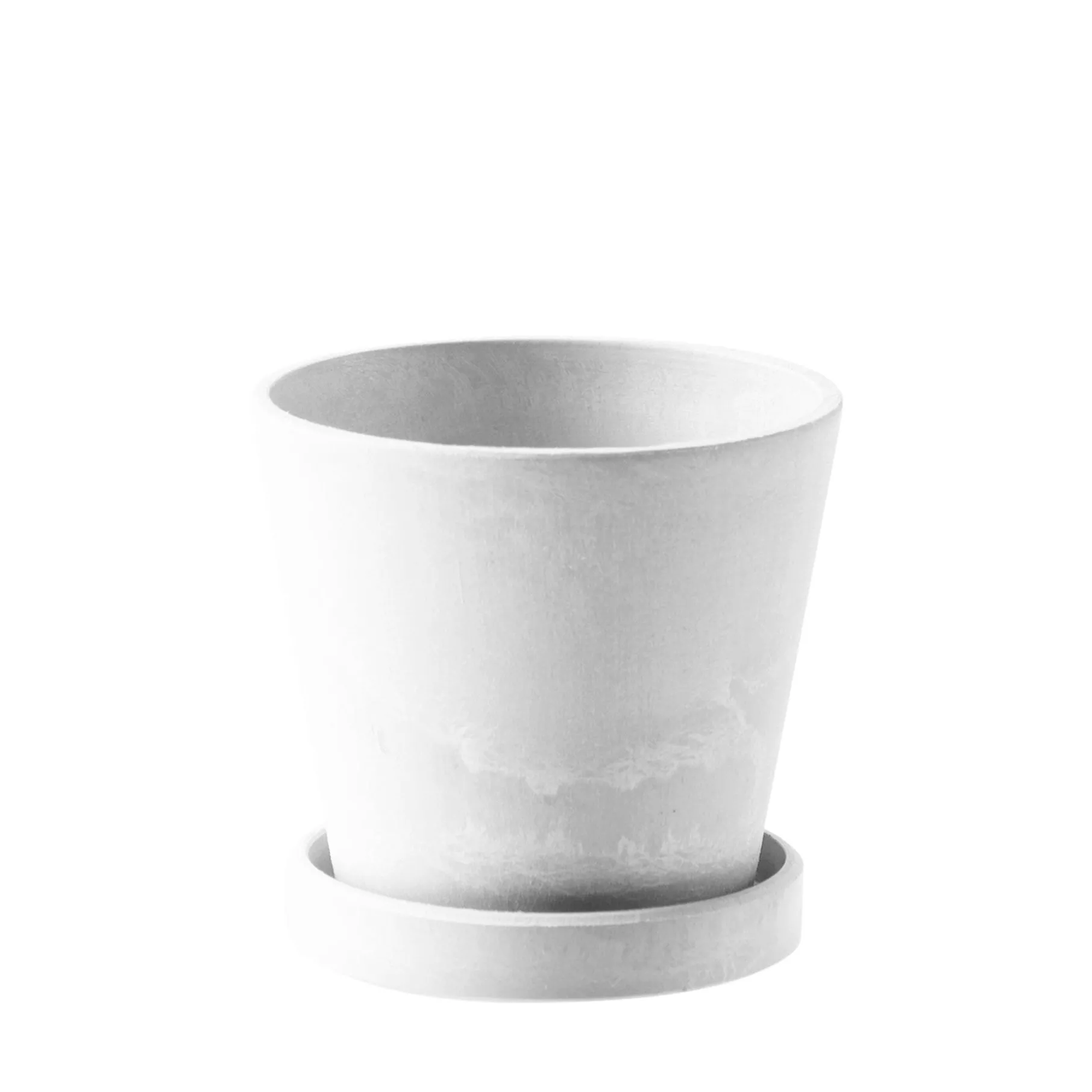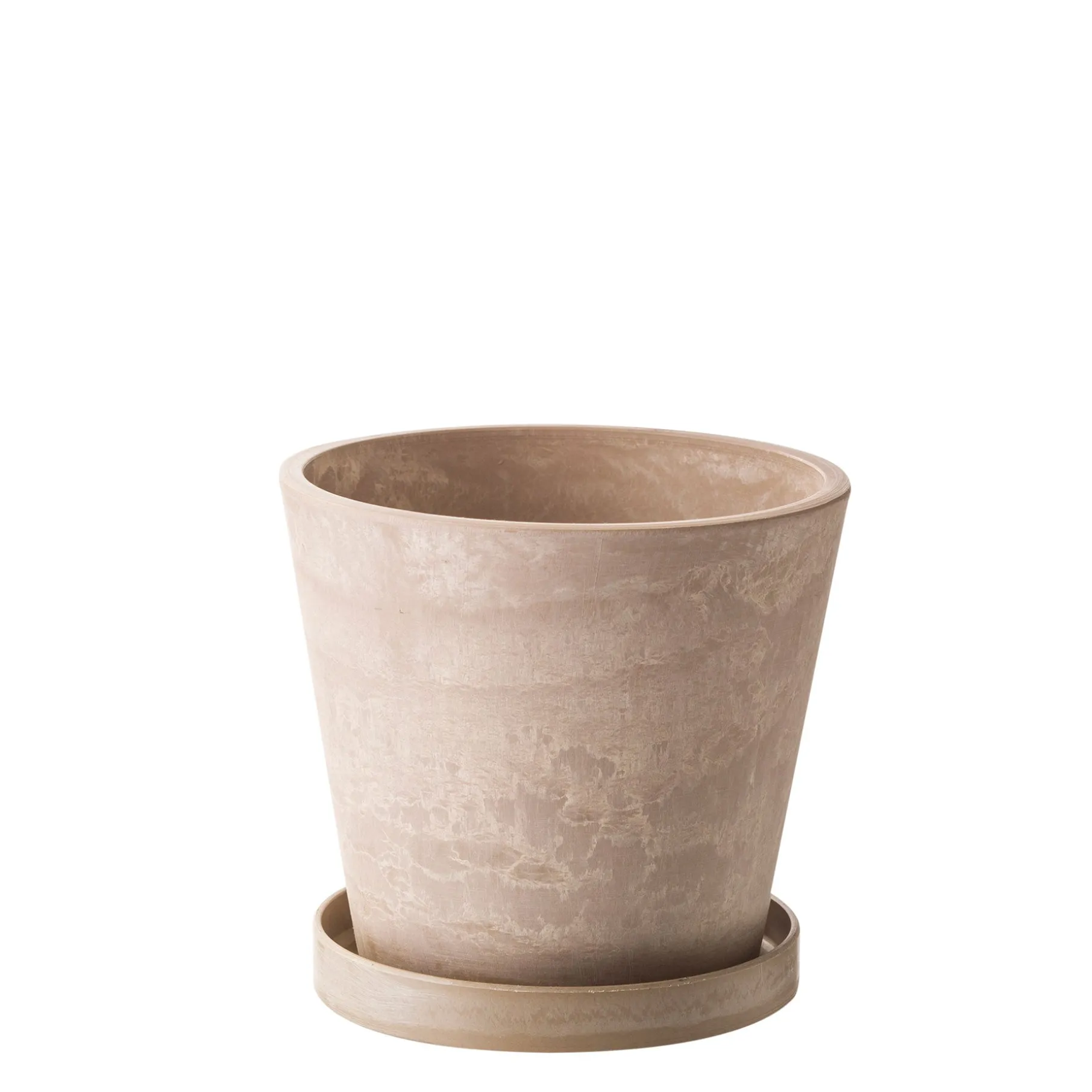 Enkel urtepotteskjuler med underskål, i plastik. Den kan både stå inde og ude.