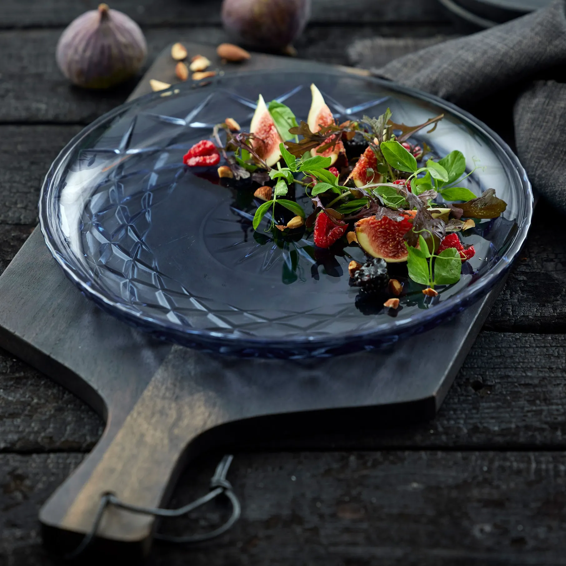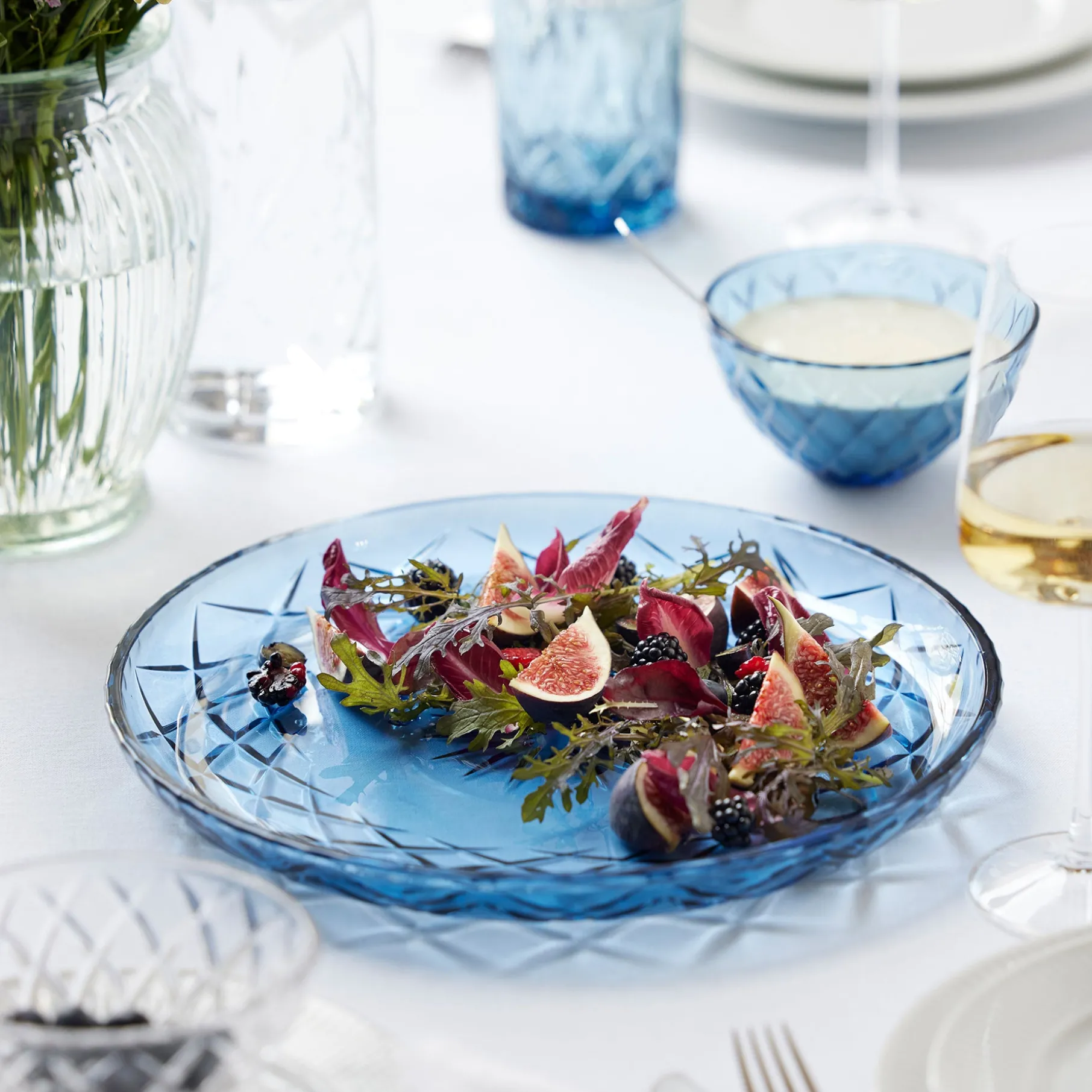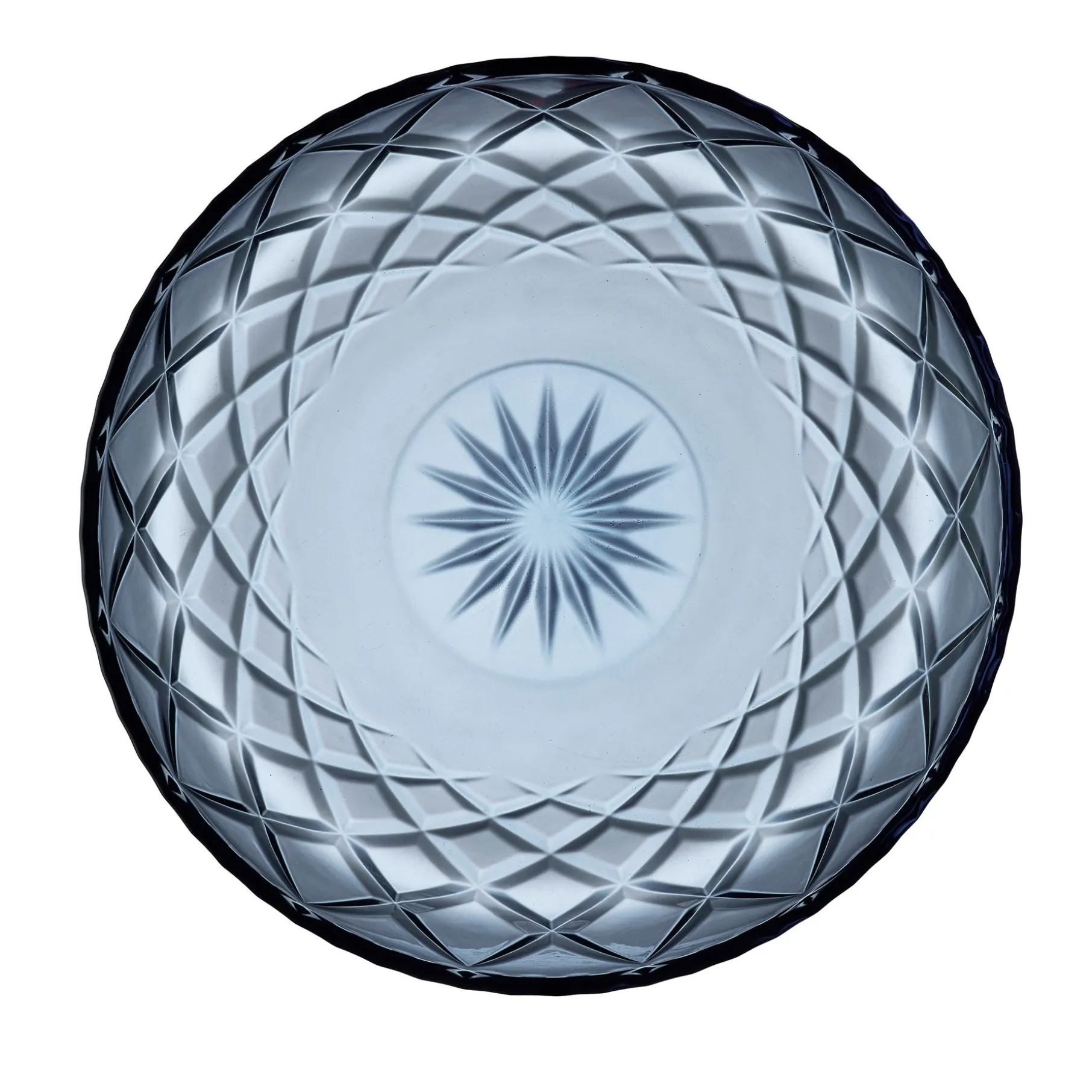 Dette skønne Sorrento fad i blå er en smuk og elegant tilføjelse til ethvert bord. Fadet har en diameter på 30 cm og er lavet af gennemfarvet glas, som er skåret i flotte facetter, der giver fadet et unikt og stilfuldt udseende.