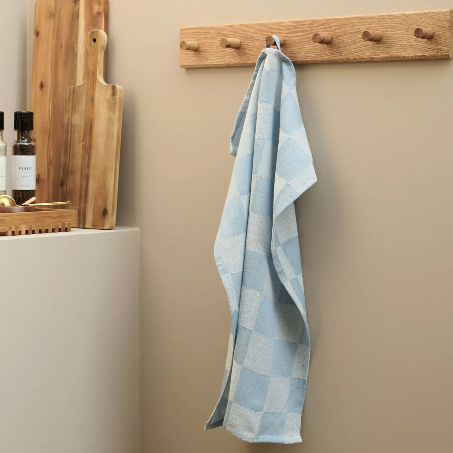 Vælg mellem to klassiske farver – en varm brun eller en frisk lys blå – der passer perfekt til enhver køkkenindretning. Uanset om du ønsker et mere dæmpet og jordnært look eller et lyst og livligt udtryk, har Square viskestykket en variant til dig.
