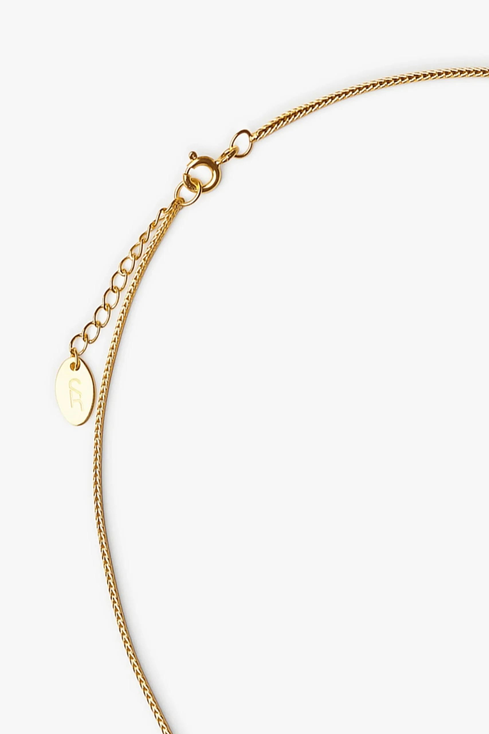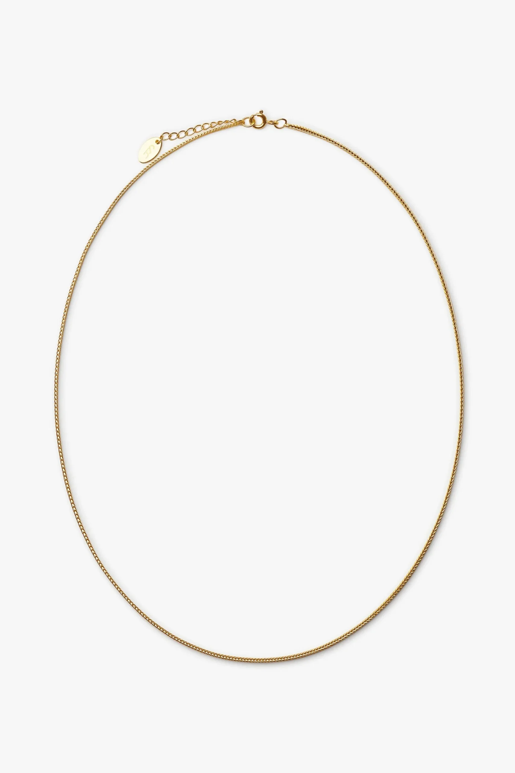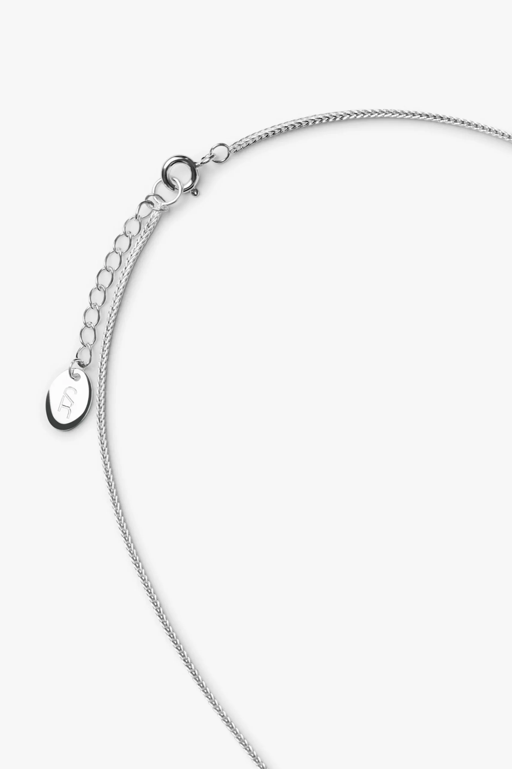 Halskæde med en braided kæde. Kæden er tæt flettet og med sin flotte struktur, tilføjer det en elegant finesse. Halskæden har et forlængerled med et lille logo vedhæng i enden, som tilføjer et ekstra visuelt element. Lås: Fjederlås