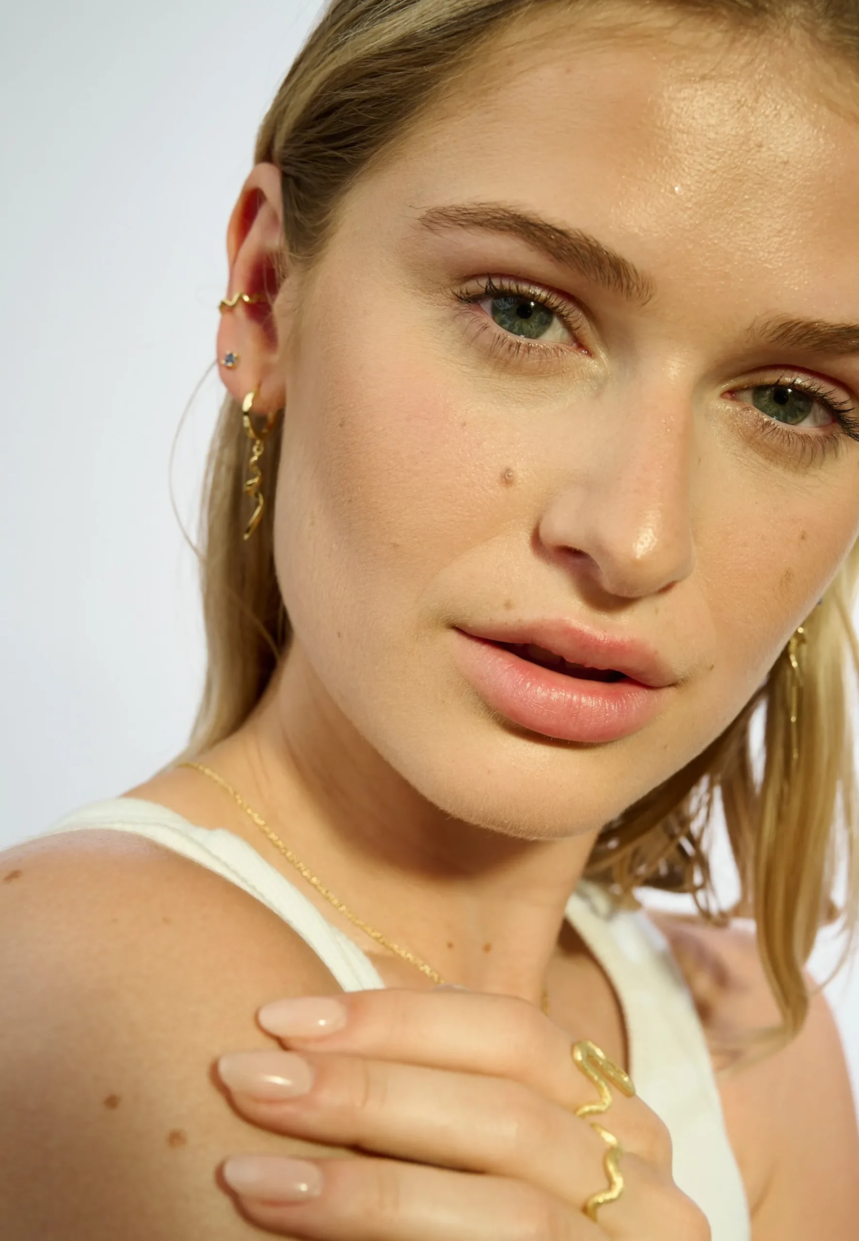 Smuk ørering med spiralpendant fra serien ‘Serenity’. Øreringen har et elegant vedhæng i blankt marierale. Designet gør den ideel at kombinere med andre Silke Renée smykker.