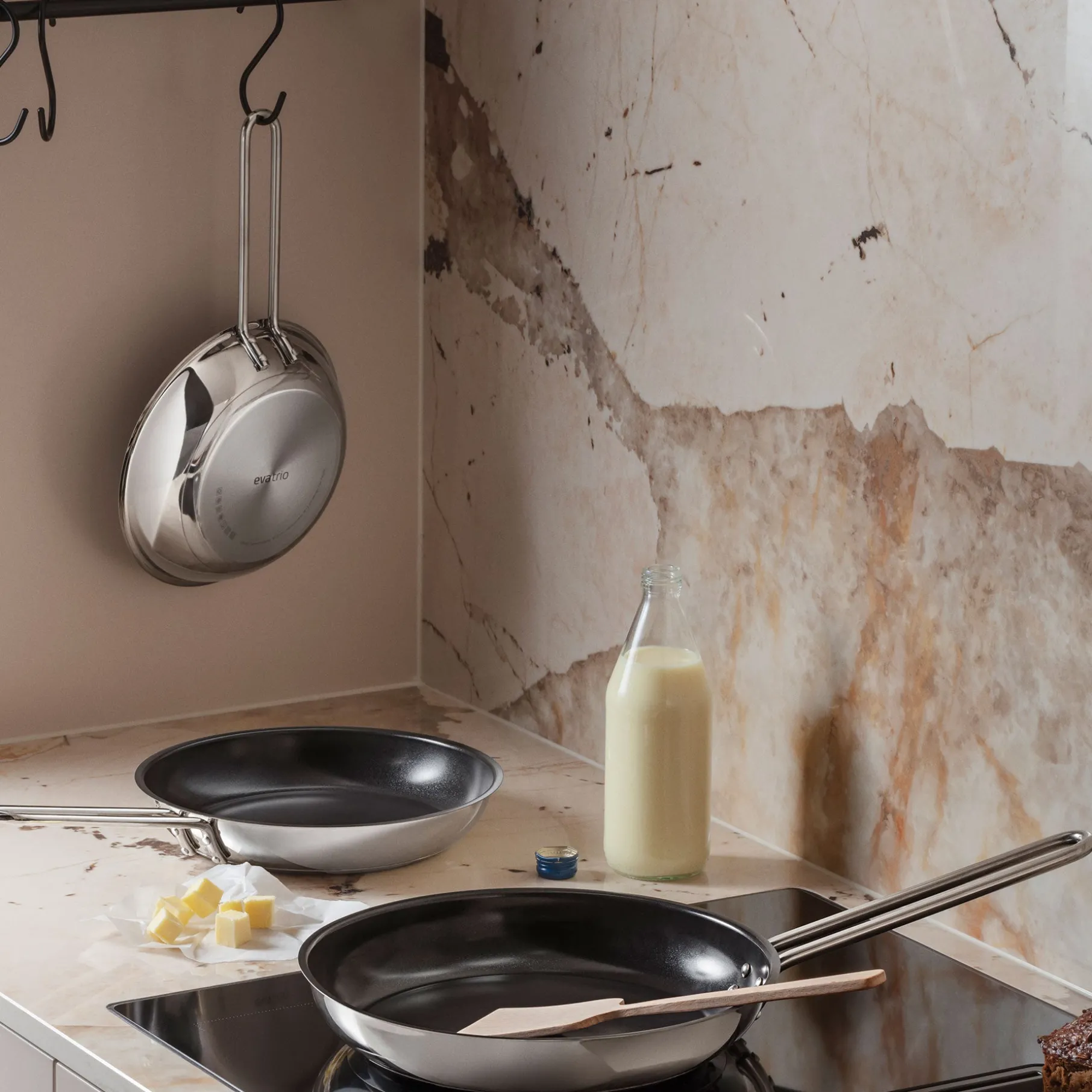 Den er lavet af genanvendt rustfrit stål, som er både holdbart og nemt at rengøre. Den keramiske Slip-Let® belægning sikrer, at maden ikke klæber, hvilket gør madlavningen og rengøringen enklere.