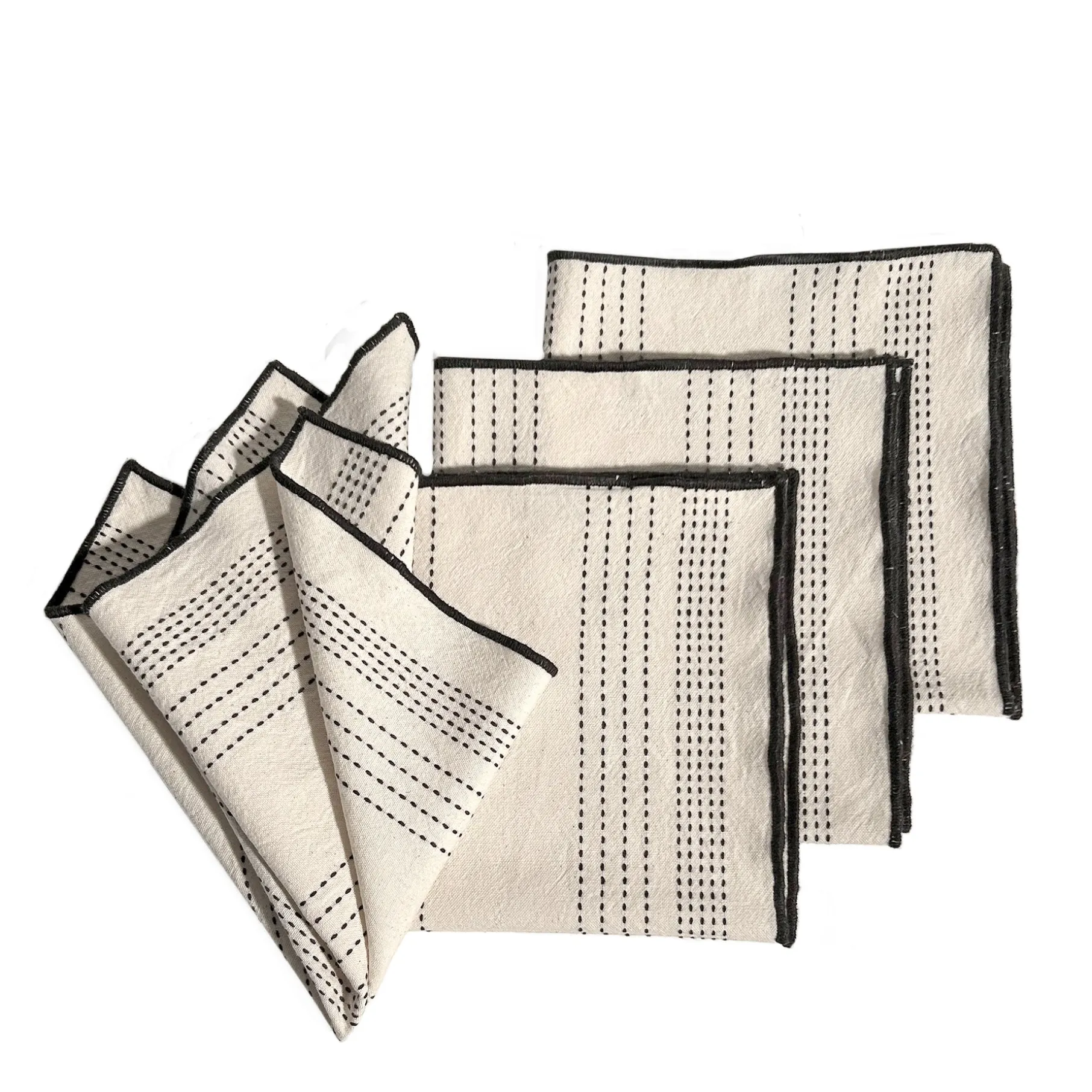Disse mundservietter er fremstillet af 100% bomuld, hvilket sikrer en blød og holdbar kvalitet, der kan bruges igen og igen. Hver pakke indeholder 4 mundservietter, perfekt til både hverdagsbrug og særlige anledninger, hvor borddækningen skal være lidt ekstra.