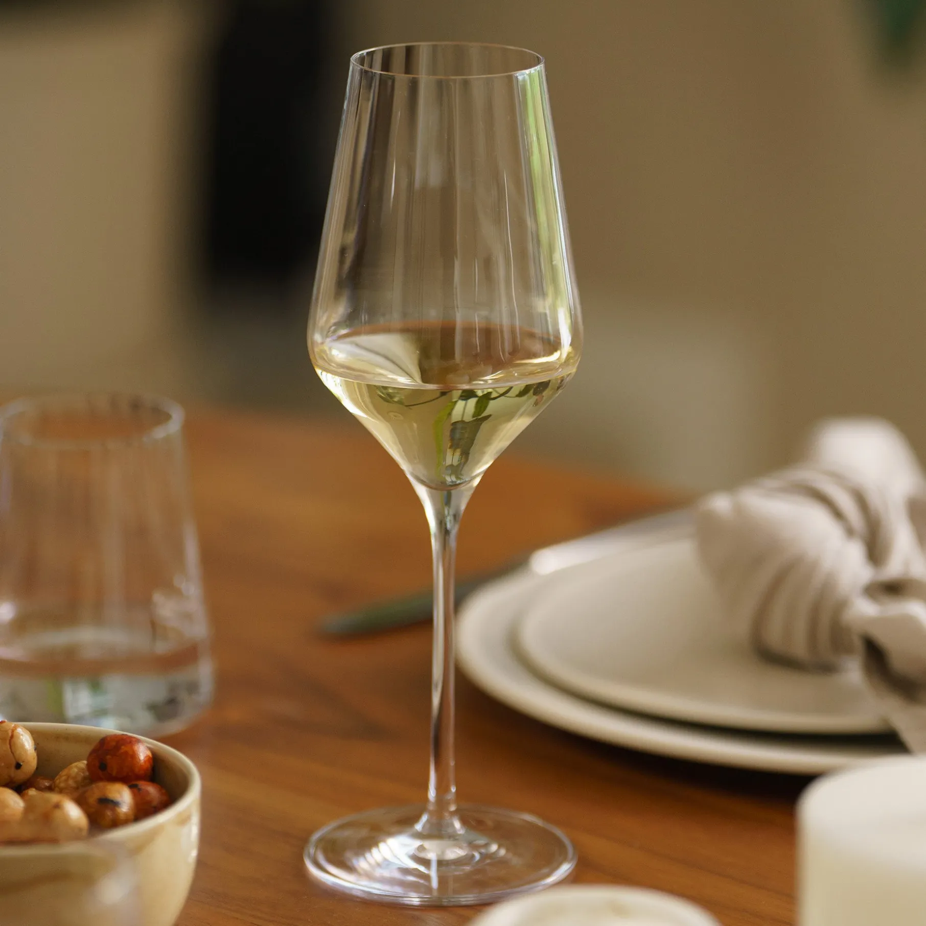 Et let og elegant glas, der fremhæver friskheden i både hvidvine og roséer. Den let buede top samler aromaen og leder duften mod næsen, så vinens karakter opleves fuldt ud – med både finesse og balance. Perfekt til Sauvignon Blanc og Riesling.