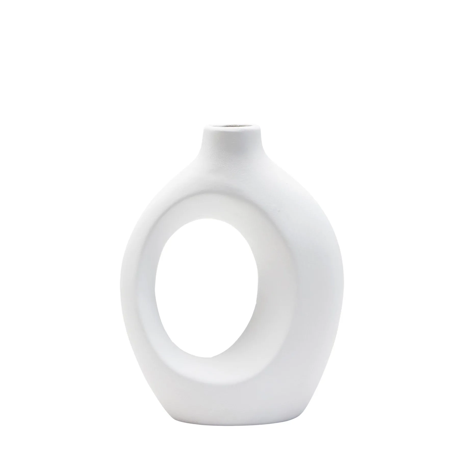 Synergy I vasen forener moderne design og organisk form i ét enkelt udtryk. Med sit karakteristiske hul i midten og bløde linjer fungerer den både som vase og som et skulpturelt element i indretningen.