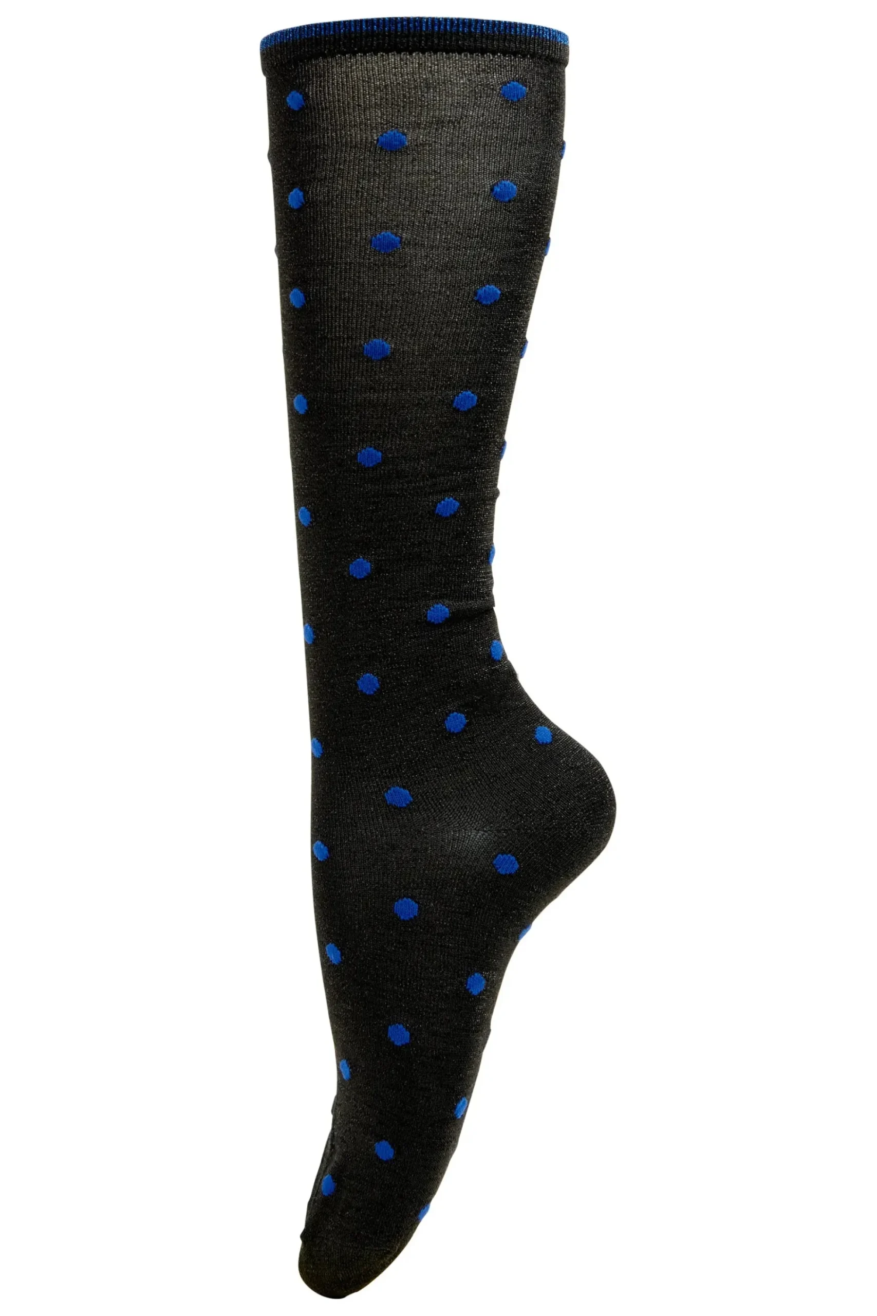 Onesize knæstrømper med glimmer og blå prikker. De er nemme at style sammen med efterårets garderobe