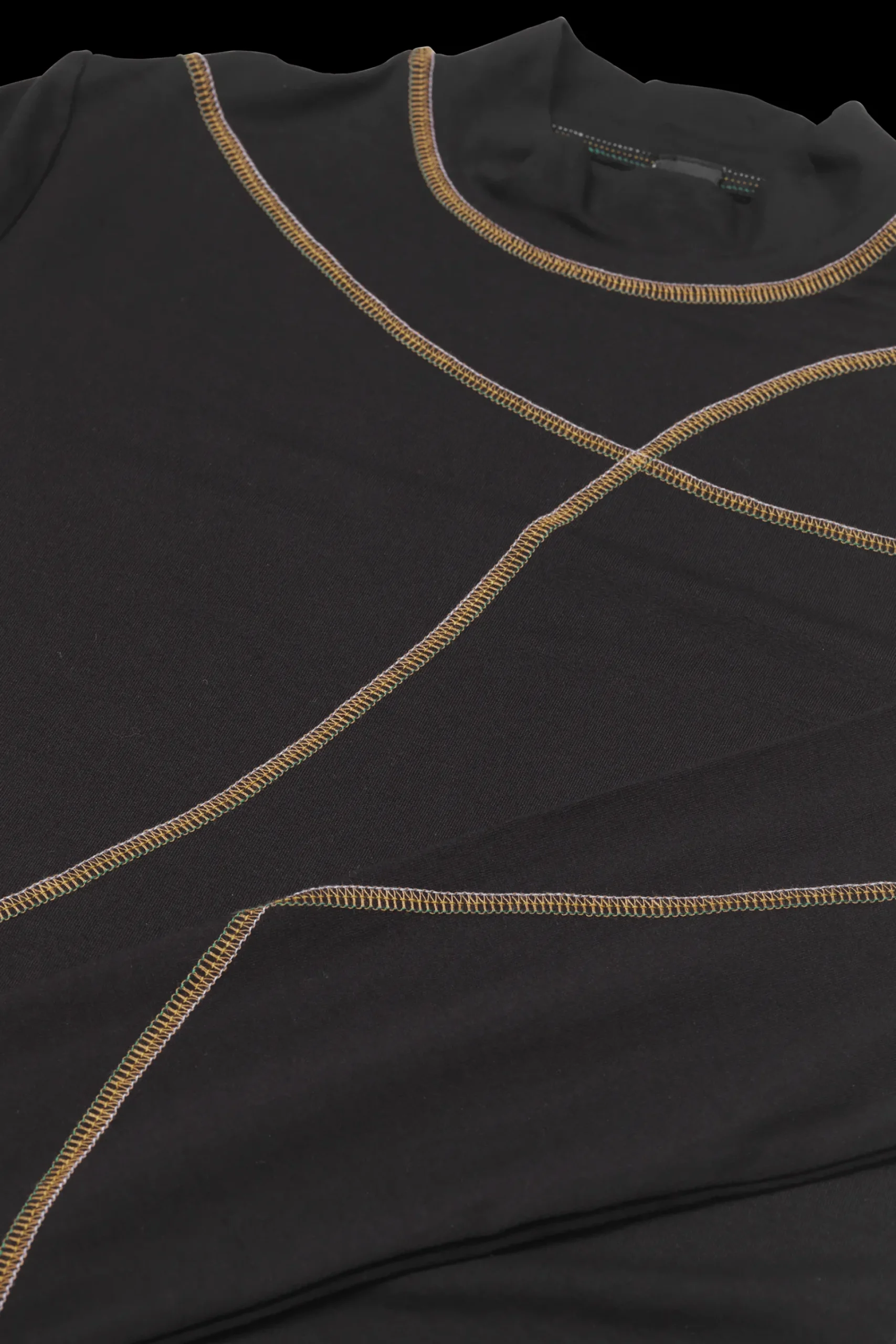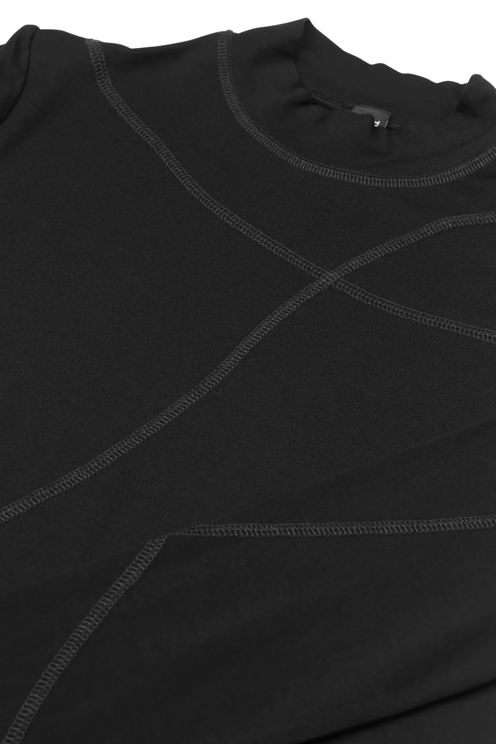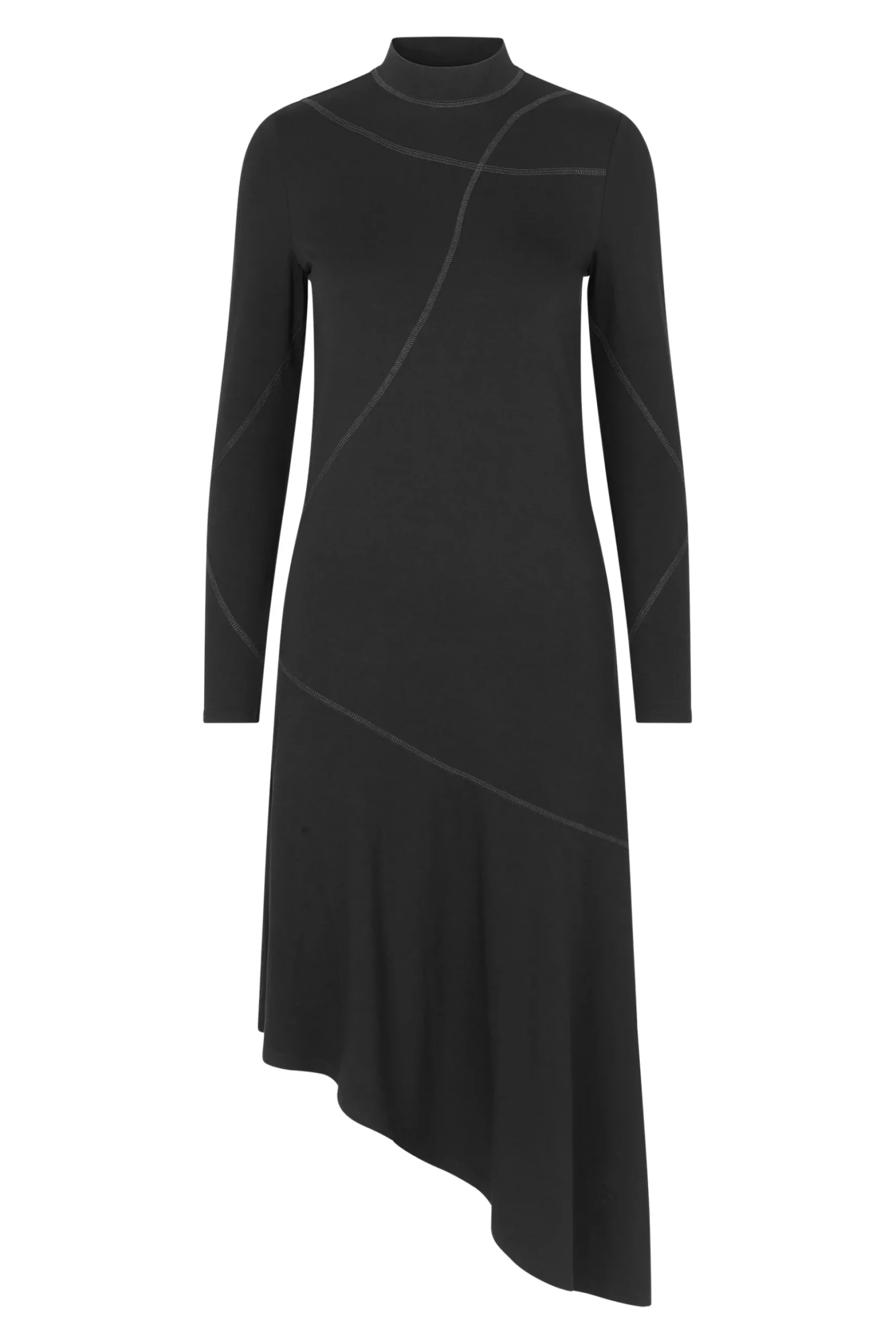 Kjolen har smukke detaljer i form af sine organiske syninger og asymmetriske snit. Den har desuden lange ærmer, høj hals og en stram pasform.