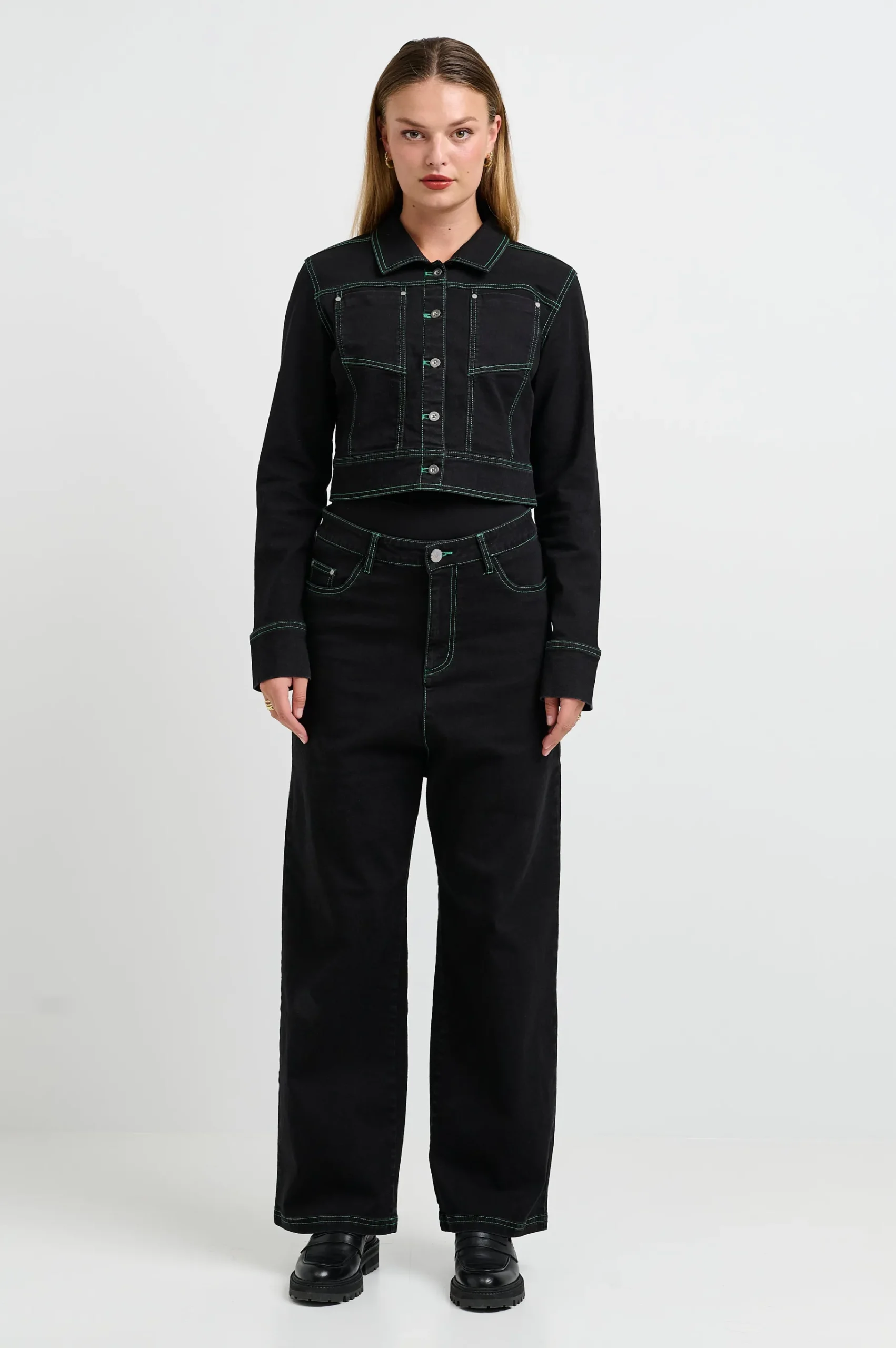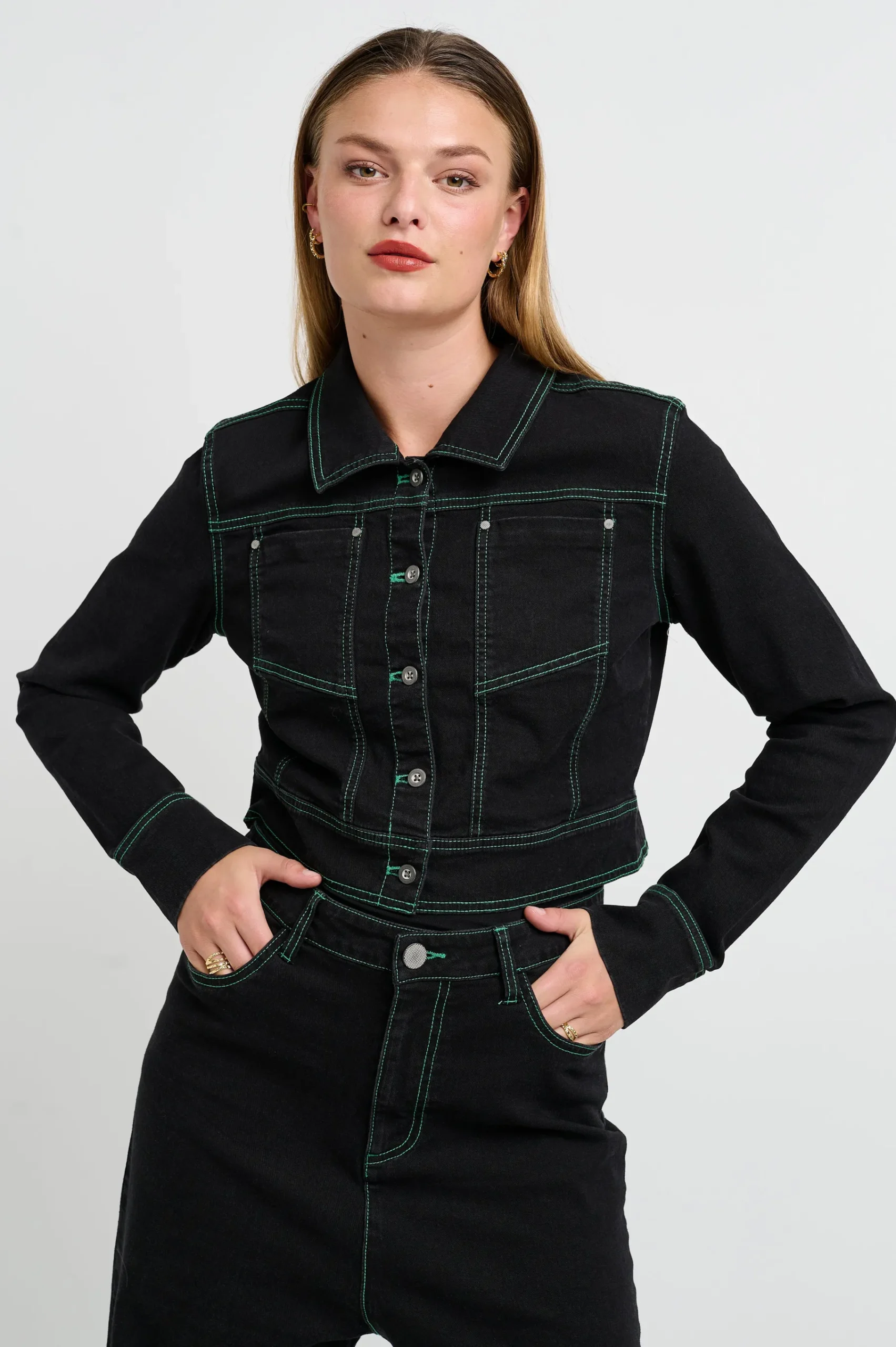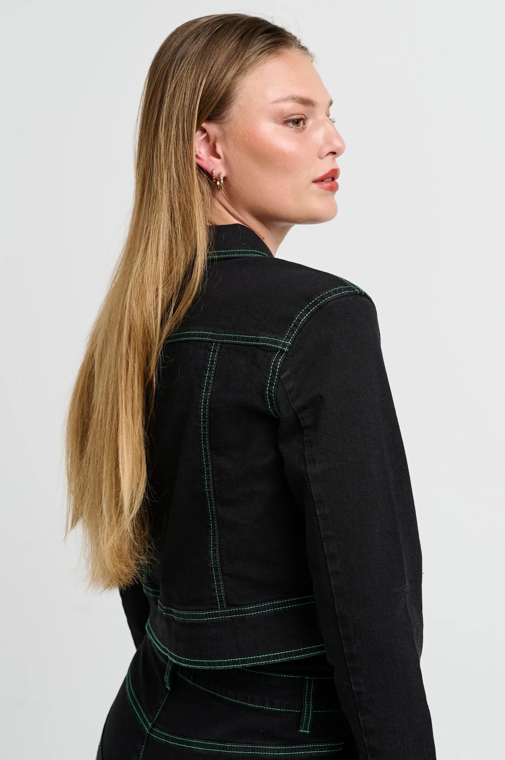 Denim jakken kan styles med de matchende bukser TGNanny/TG-093-4597, som er lavet i samme materiale og farve. Jakken kan styles lukket med en stram top under, eller åbent med fx en t-shirt eller skjorte under.