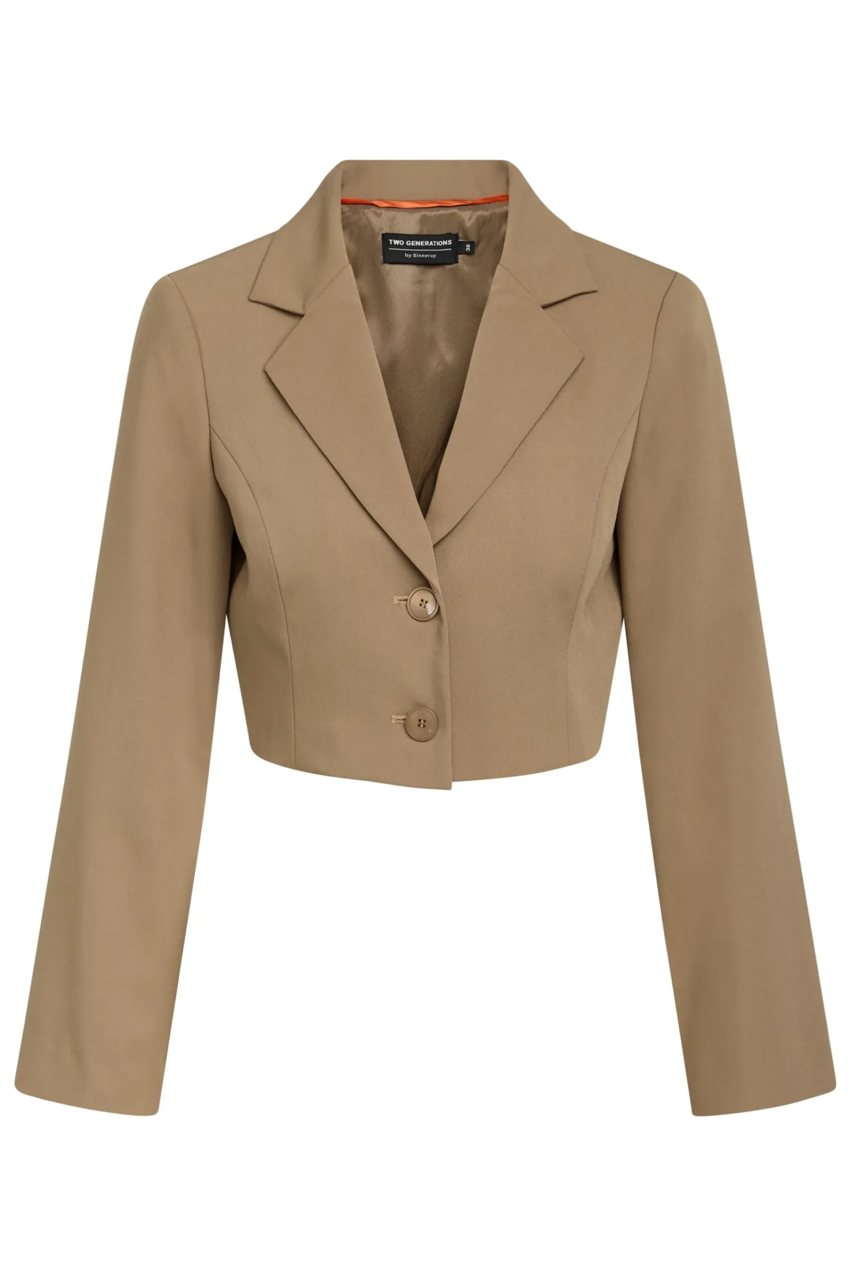 Kort figursyet blazer i et sofistikeret design, med brede ærmer, reverskrave og knaplukning. Blazeren er lavet med et tone i tone foer og kontrast piping indeni som giver en fin detalje.