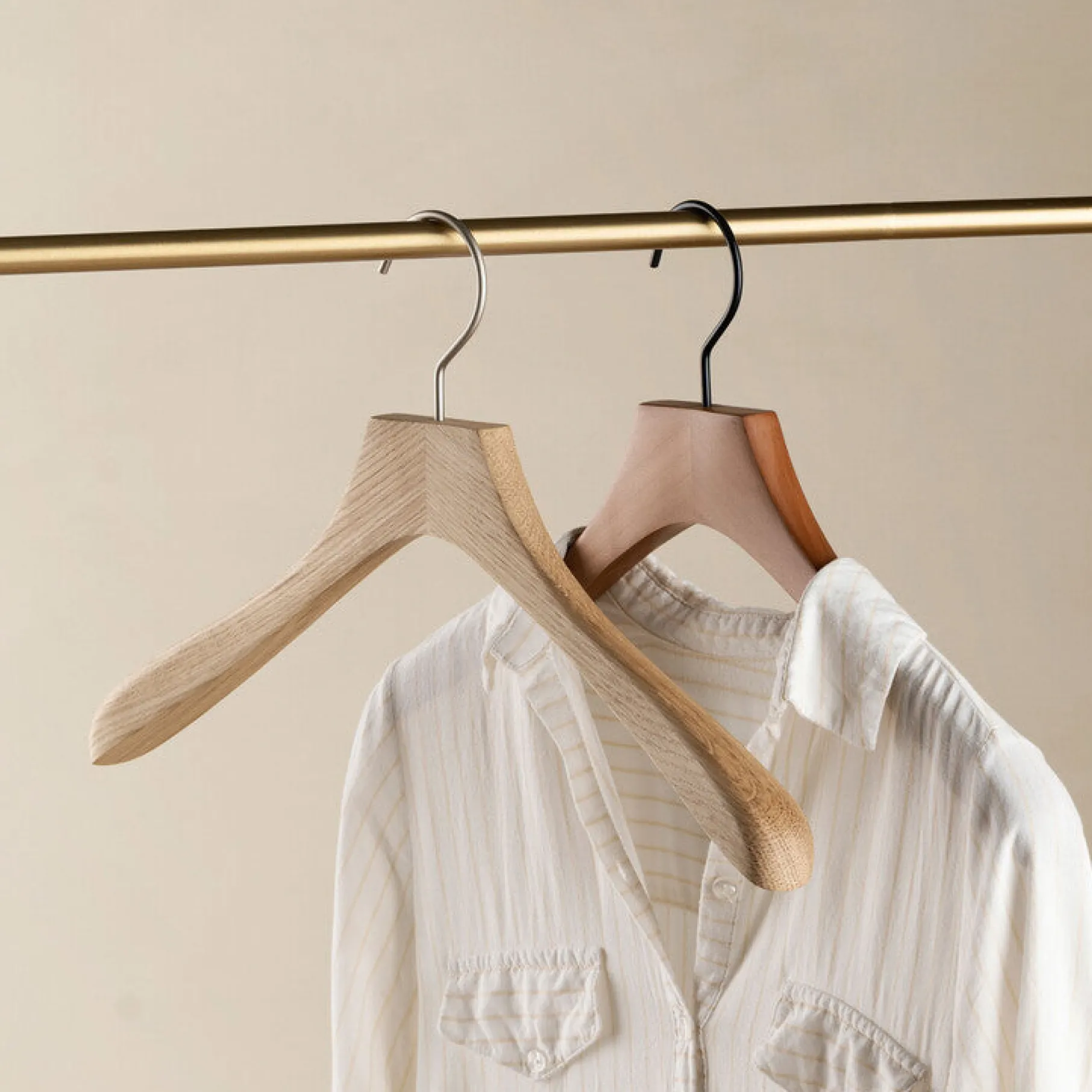 Denne træbøjle er et stilfuldt og praktisk valg til organisering og opbevaring af tøj, både i klædeskabet og i entreen.